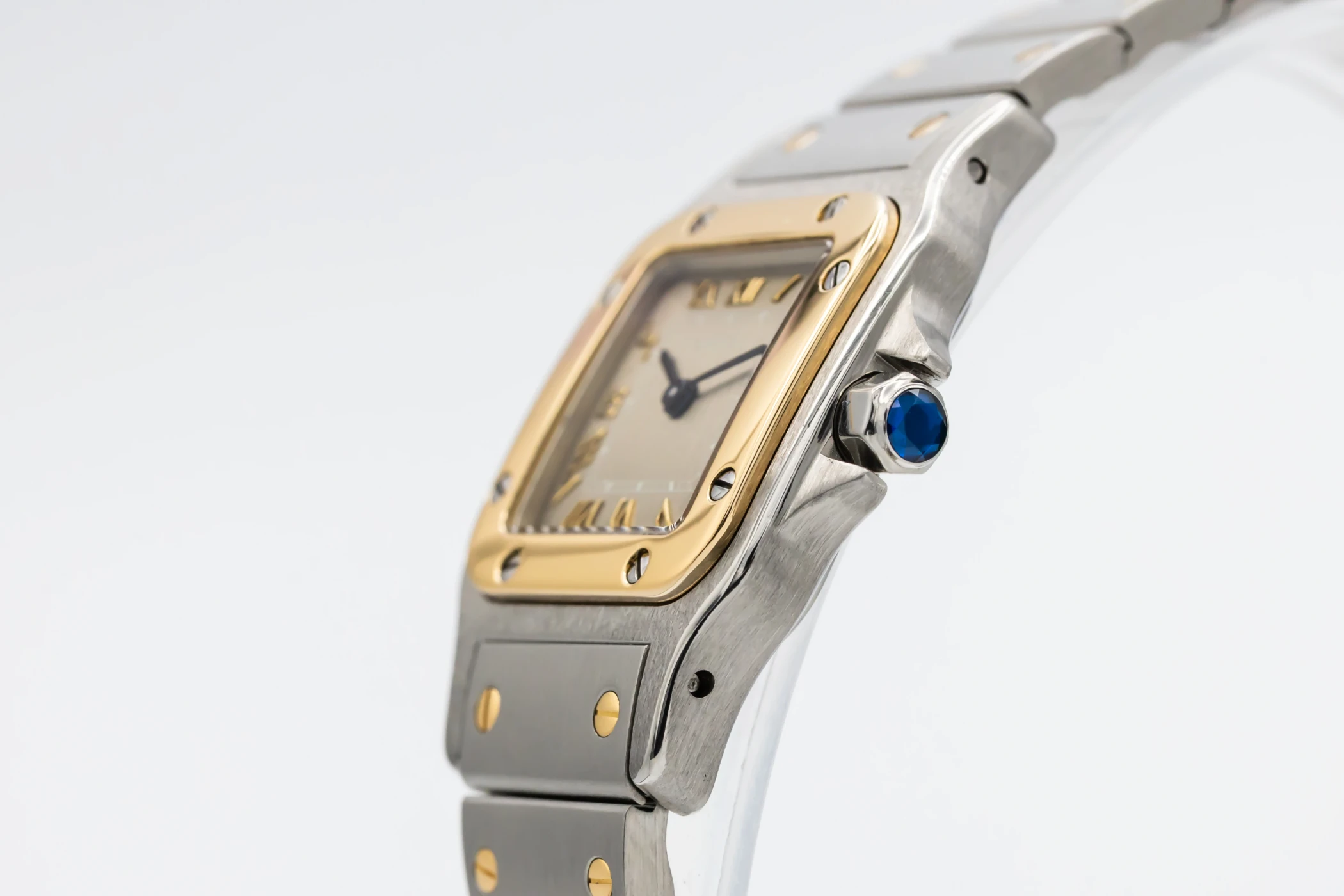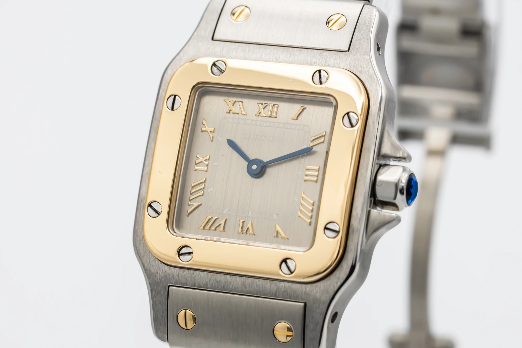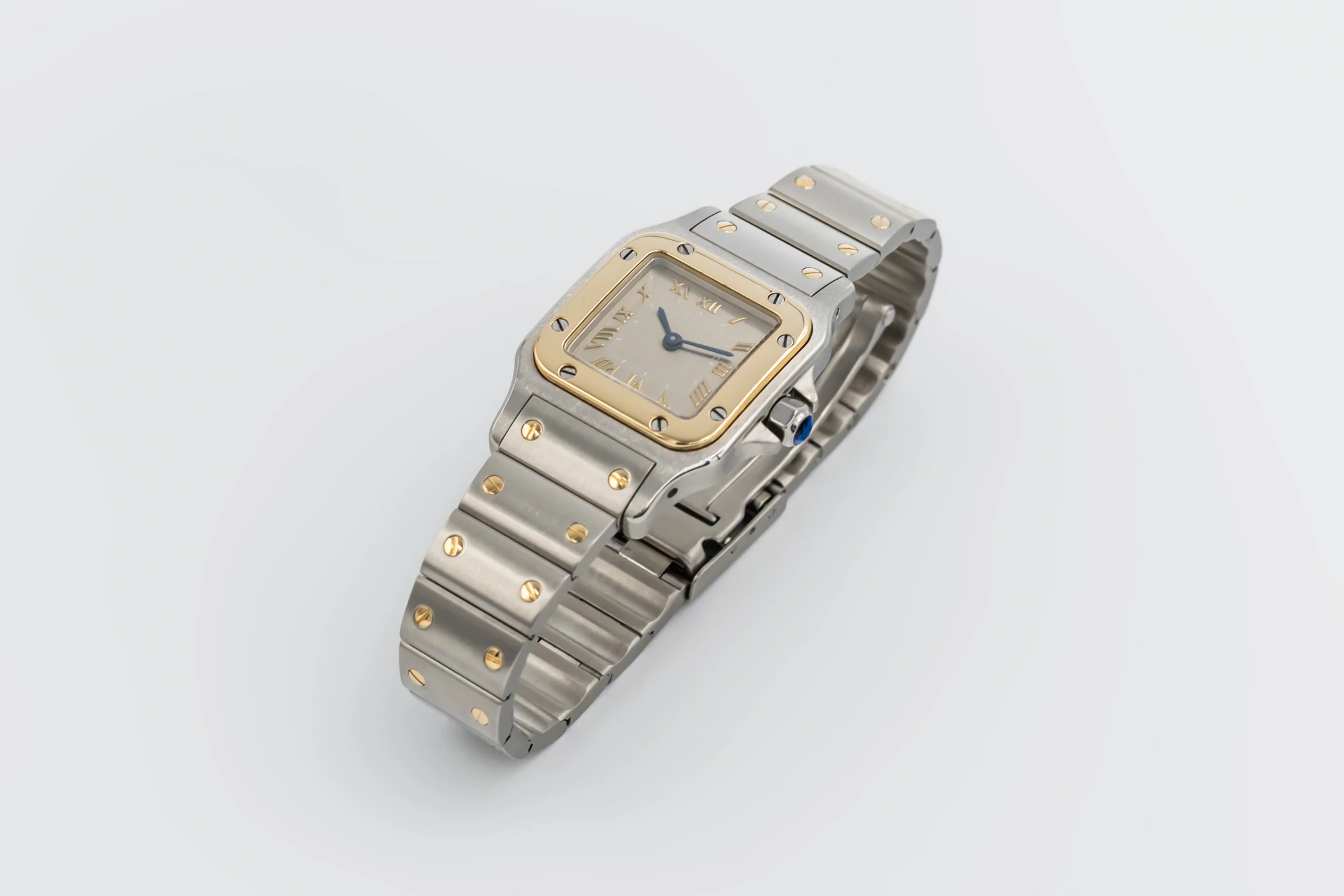 finance this from £54.66 p/m call the shop Read about our Limited Lifetime WarrantyThis circa 2000s Cartier Galbee 24mm features a silver dial with roman numerals and a stainless steel and 18ct yellow gold bracelet. It also features a 18ct yellow gold smooth bezel.