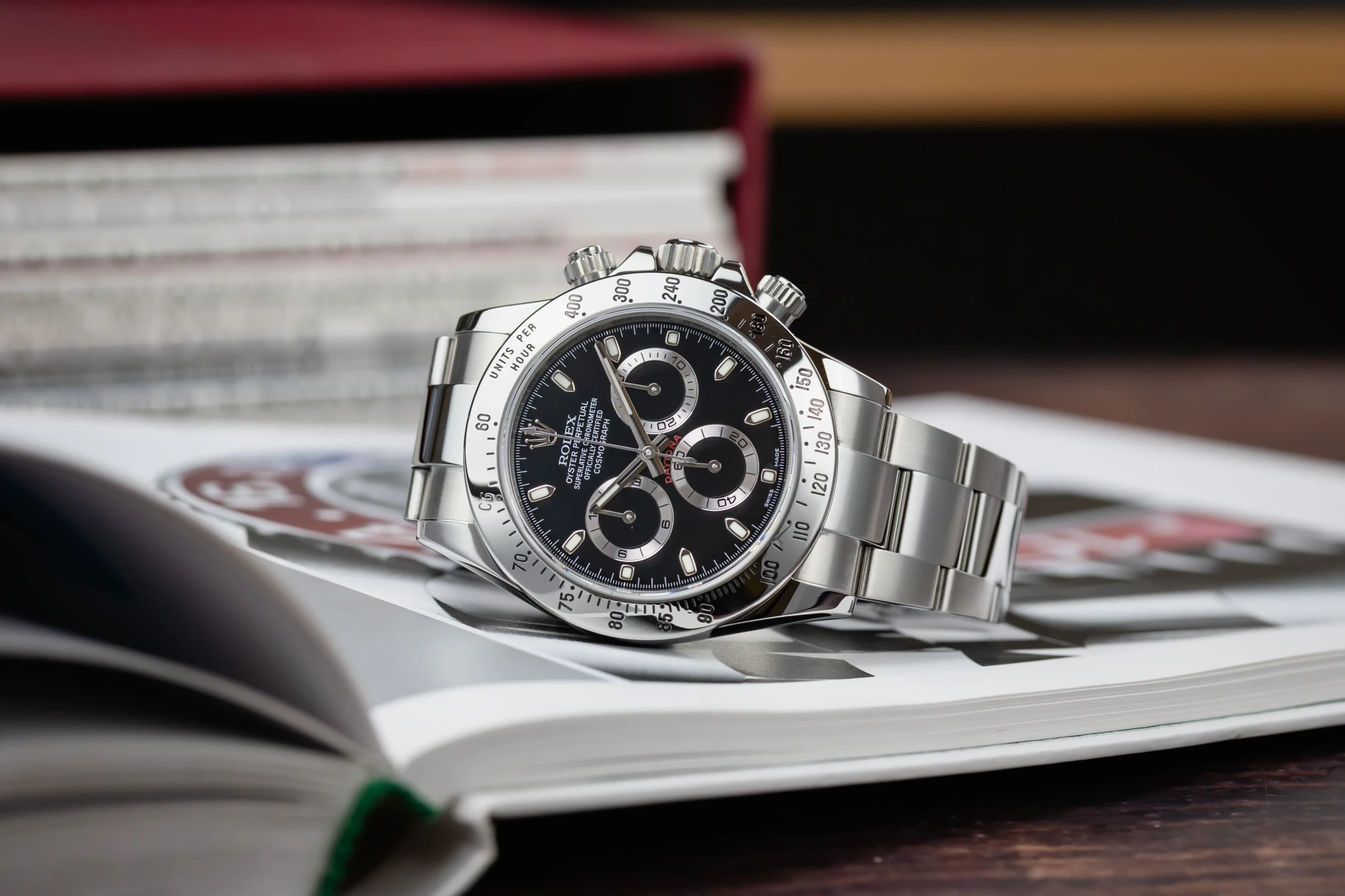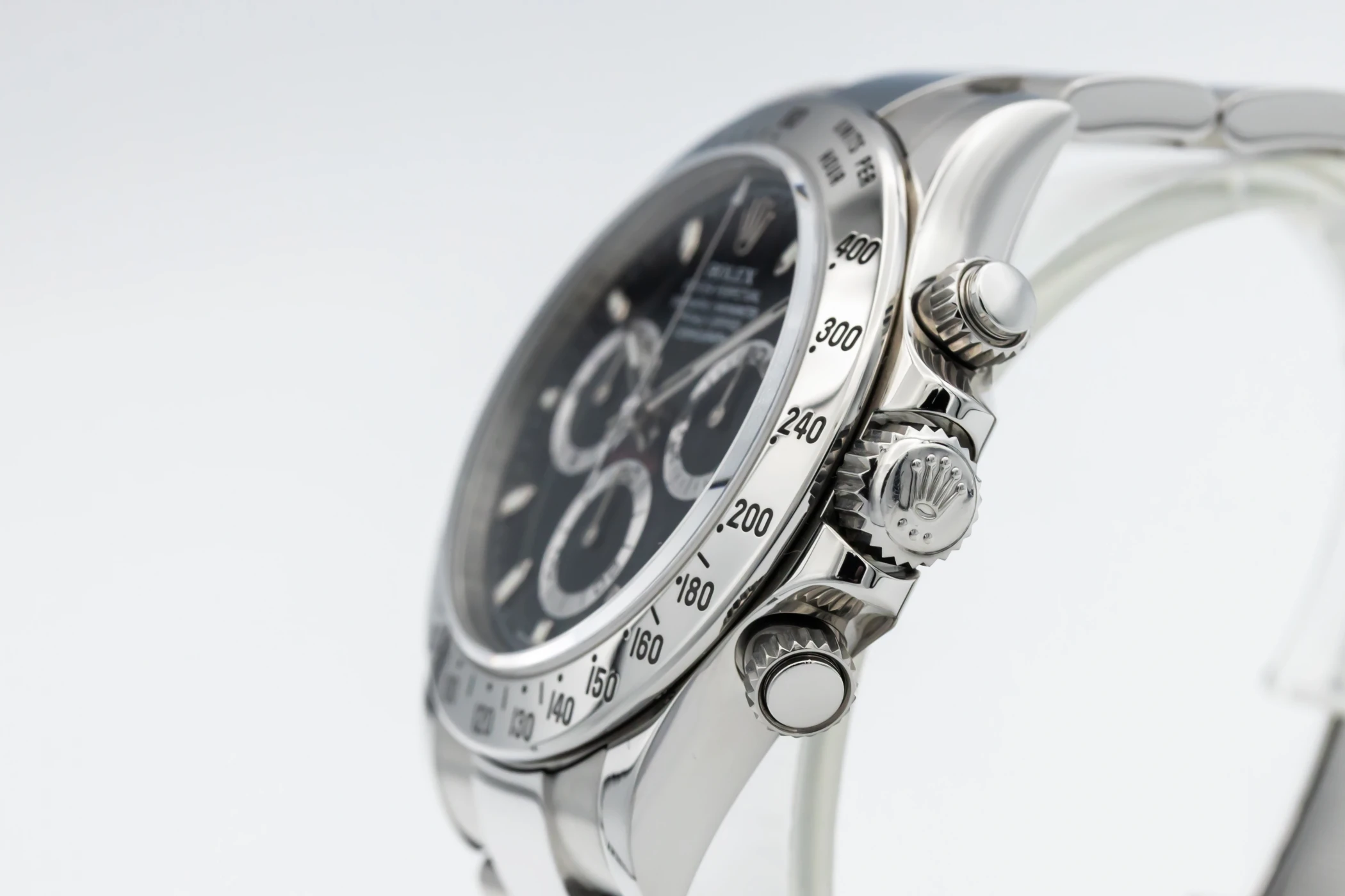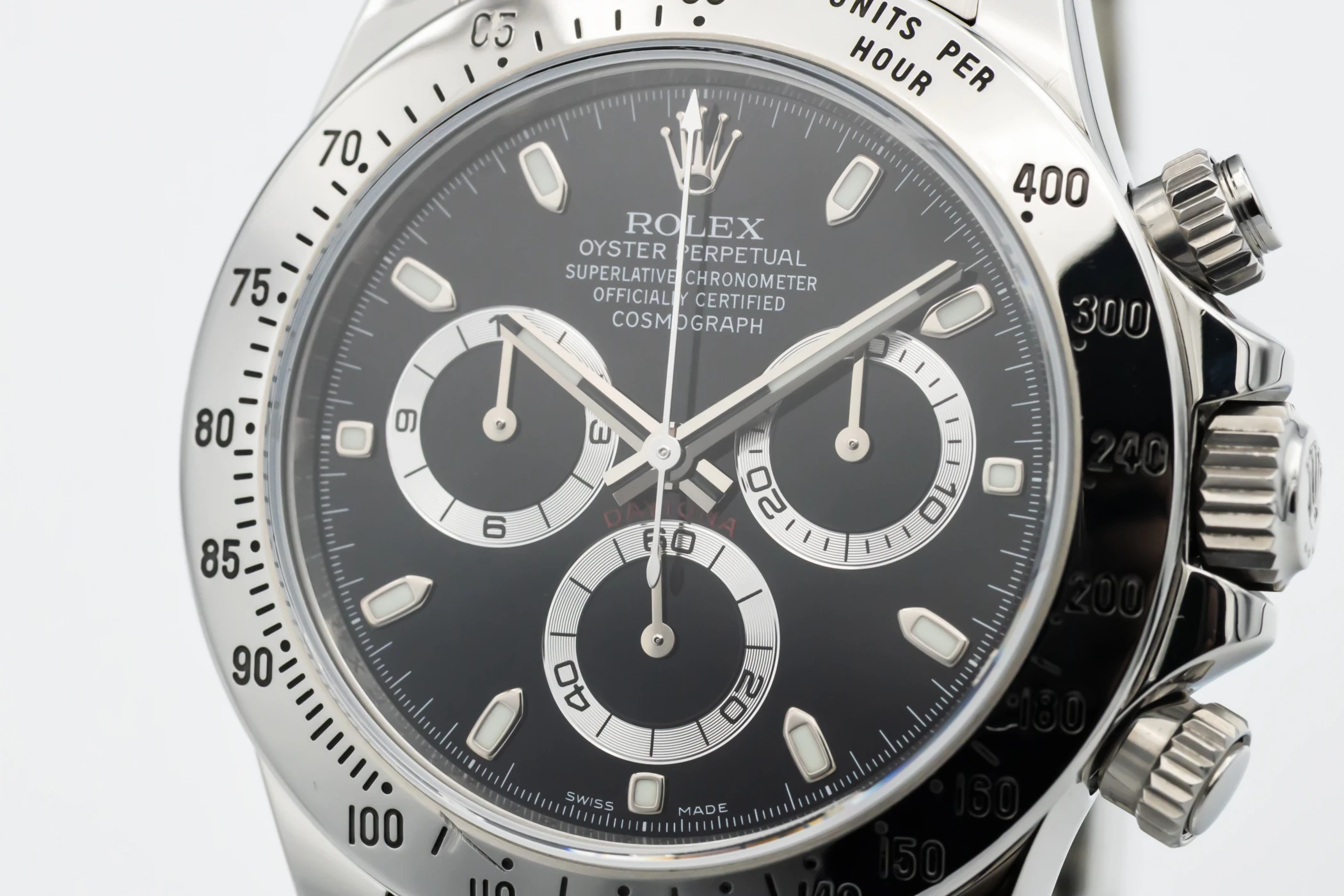Introduced around 2000, the Reference 116520 was the first in the Daytona series to house Rolex’s in-house automatic chronograph movement, Calibre 4130. By 2014 it had become highly sought after, marking the end of the steel-bezel era before later models shifted to Cerachrom ceramic bezels.