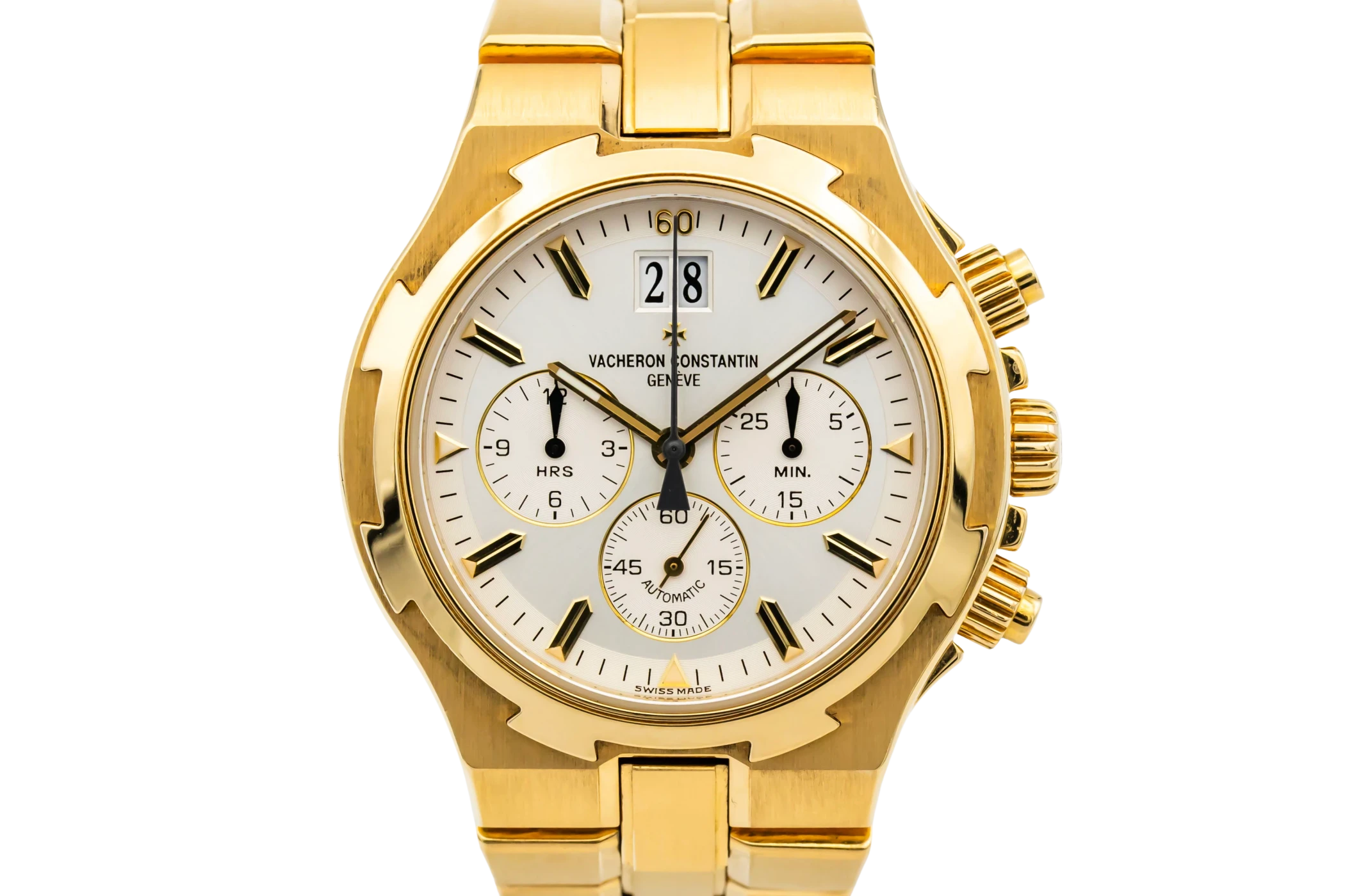 The Overseas line was introduced by Vacheron Constantin in 1996, designed as a luxury sports watch offering high-end finishing and robustness. The Chronograph variant made its debut around 1999-2000, featuring the automatic calibre 1137. This yellow-gold version elegantly bridges the sporty integrated bracelet aesthetic with full precious-metal luxury—making it a sophisticated choice within the “luxury sports chronograph” genre.