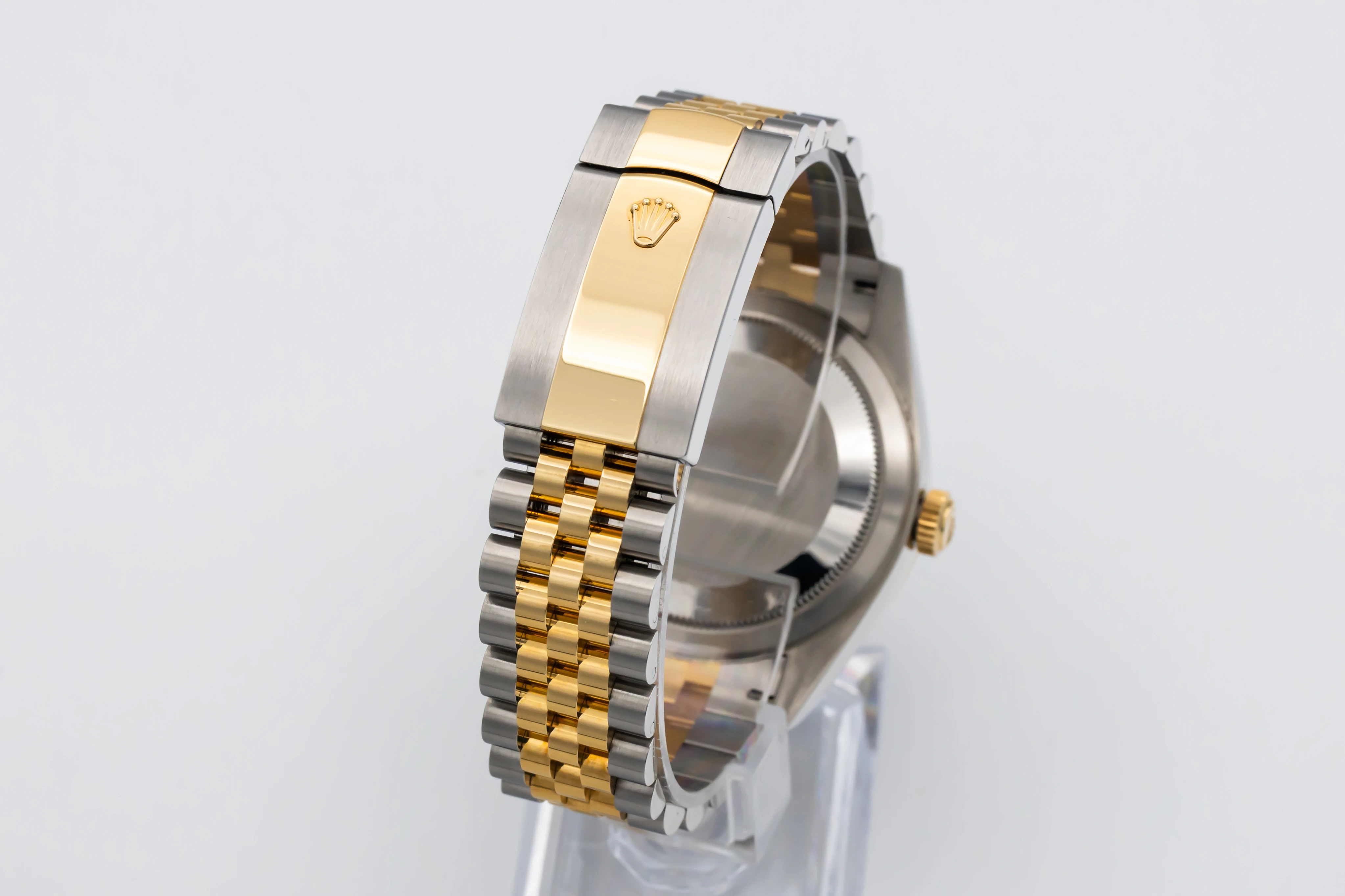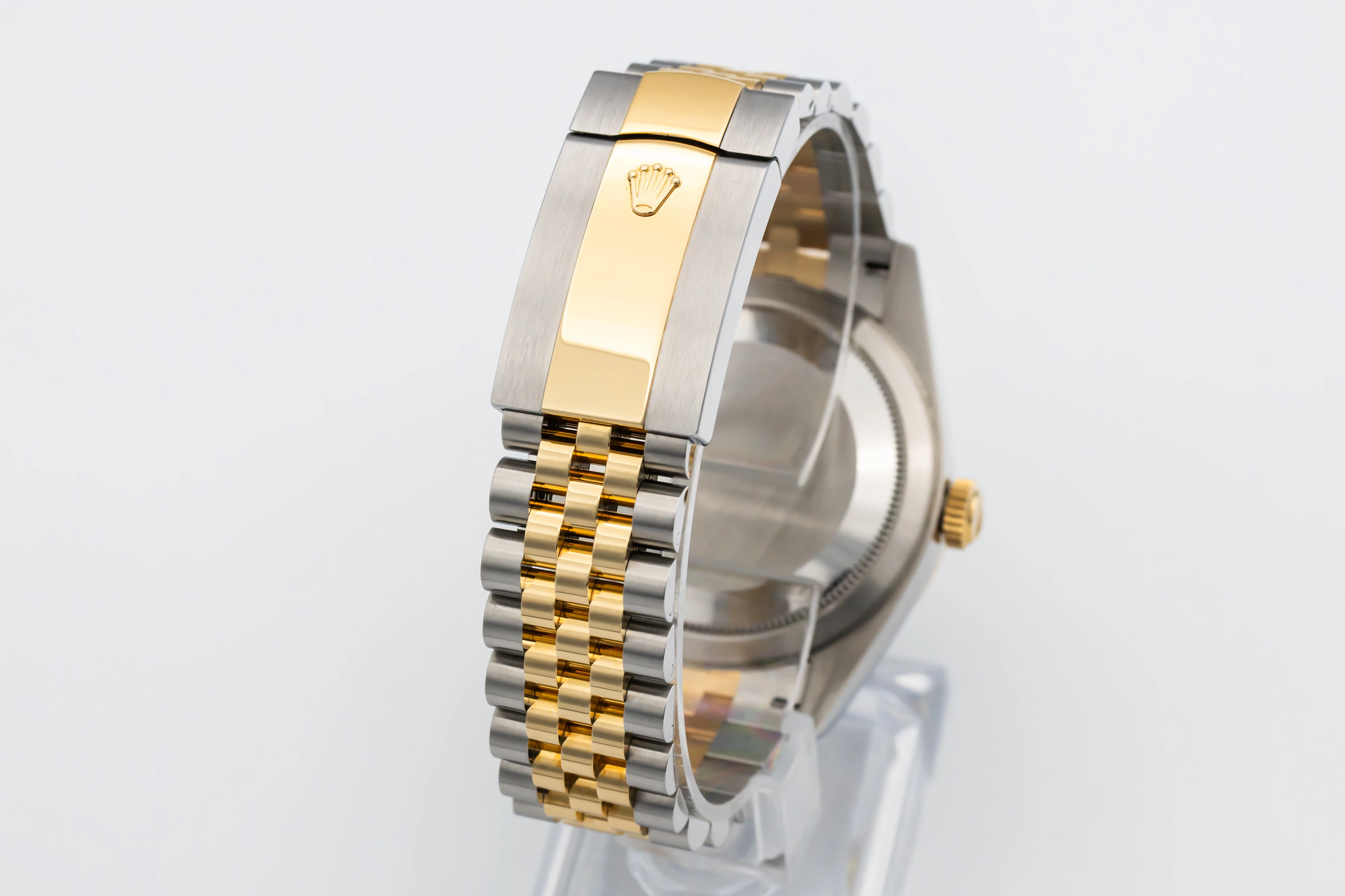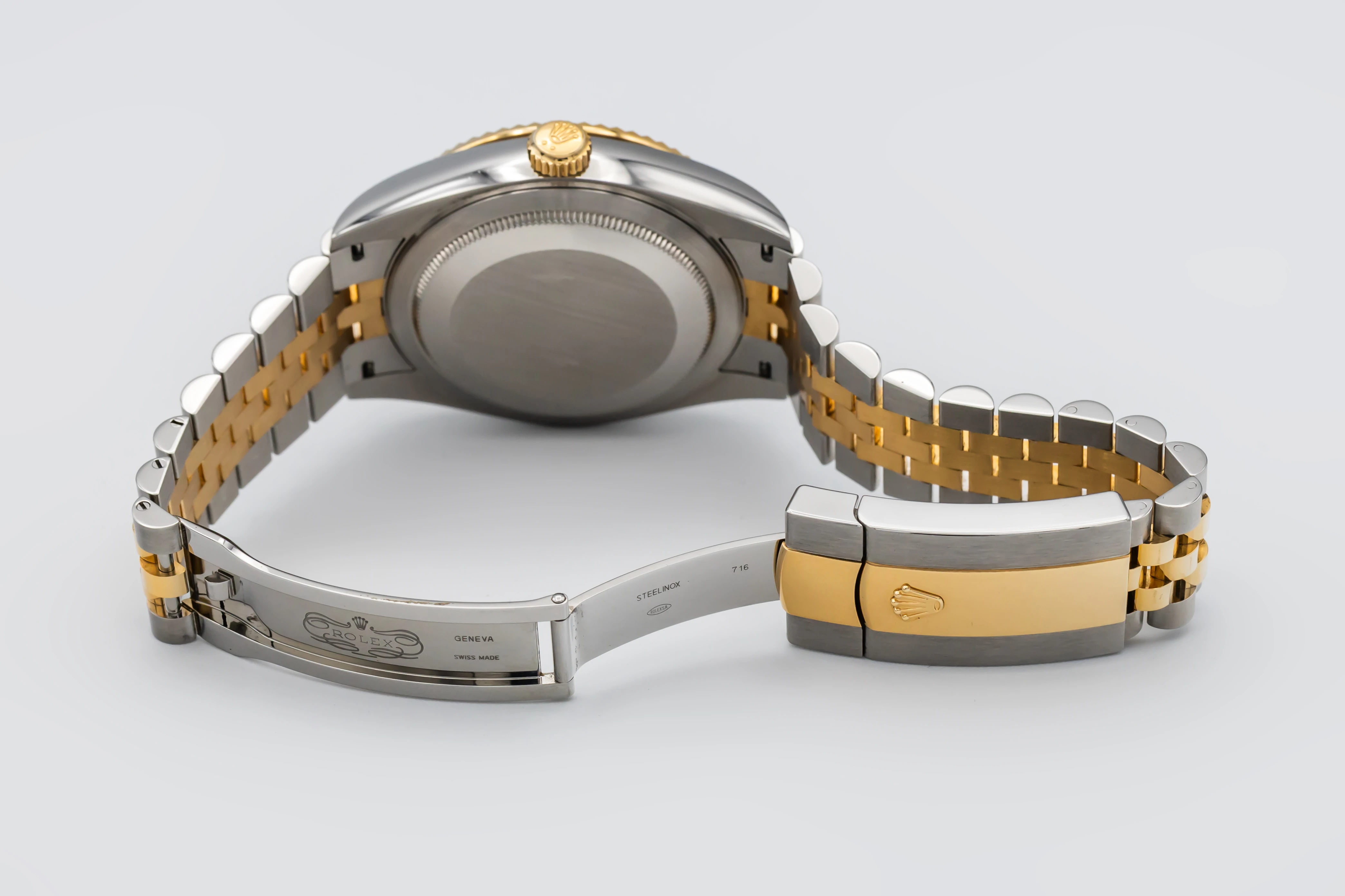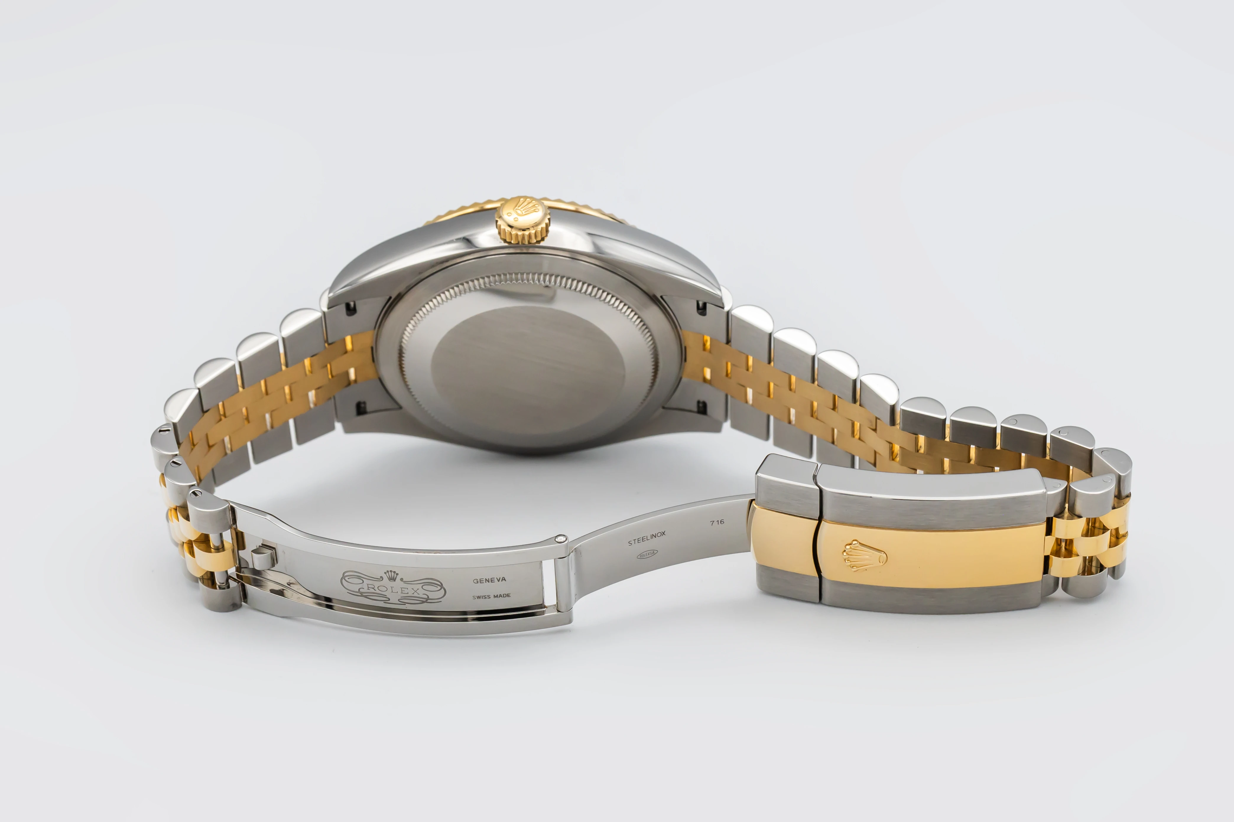 This 2023 Rolex Sky-Dweller 42mm features a black dial with luminous baton hour markers, an off-centre 24-hour disc for dual time zones, and an elegant framed date window beneath the iconic Cyclops lens. Paired with the distinguished Jubilee bracelet—crafted in steel and yellow gold and fitted with a concealed Crownclasp—this Sky-Dweller balances powerful presence with graceful refinement, ideal for world travellers and connoisseurs alike.