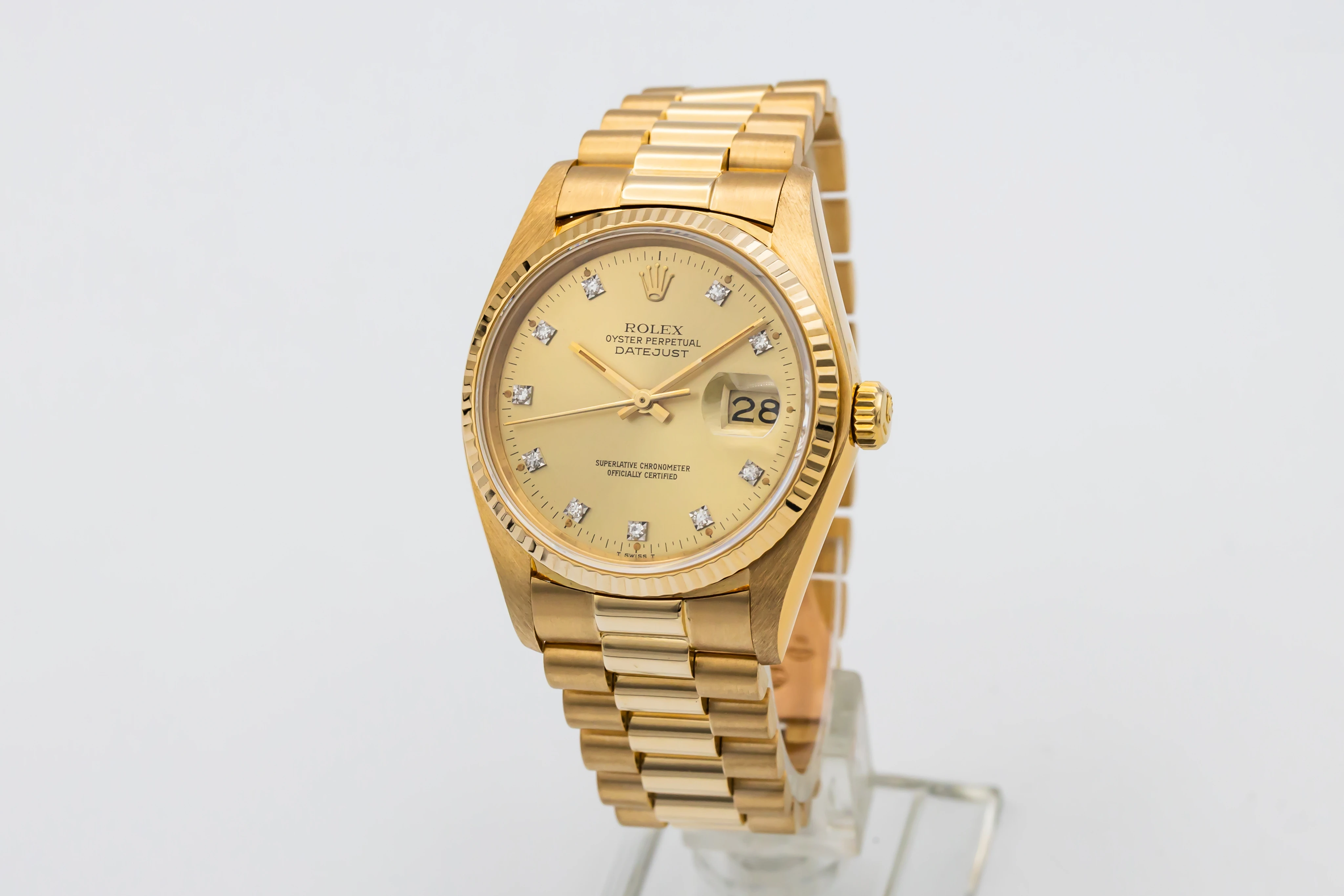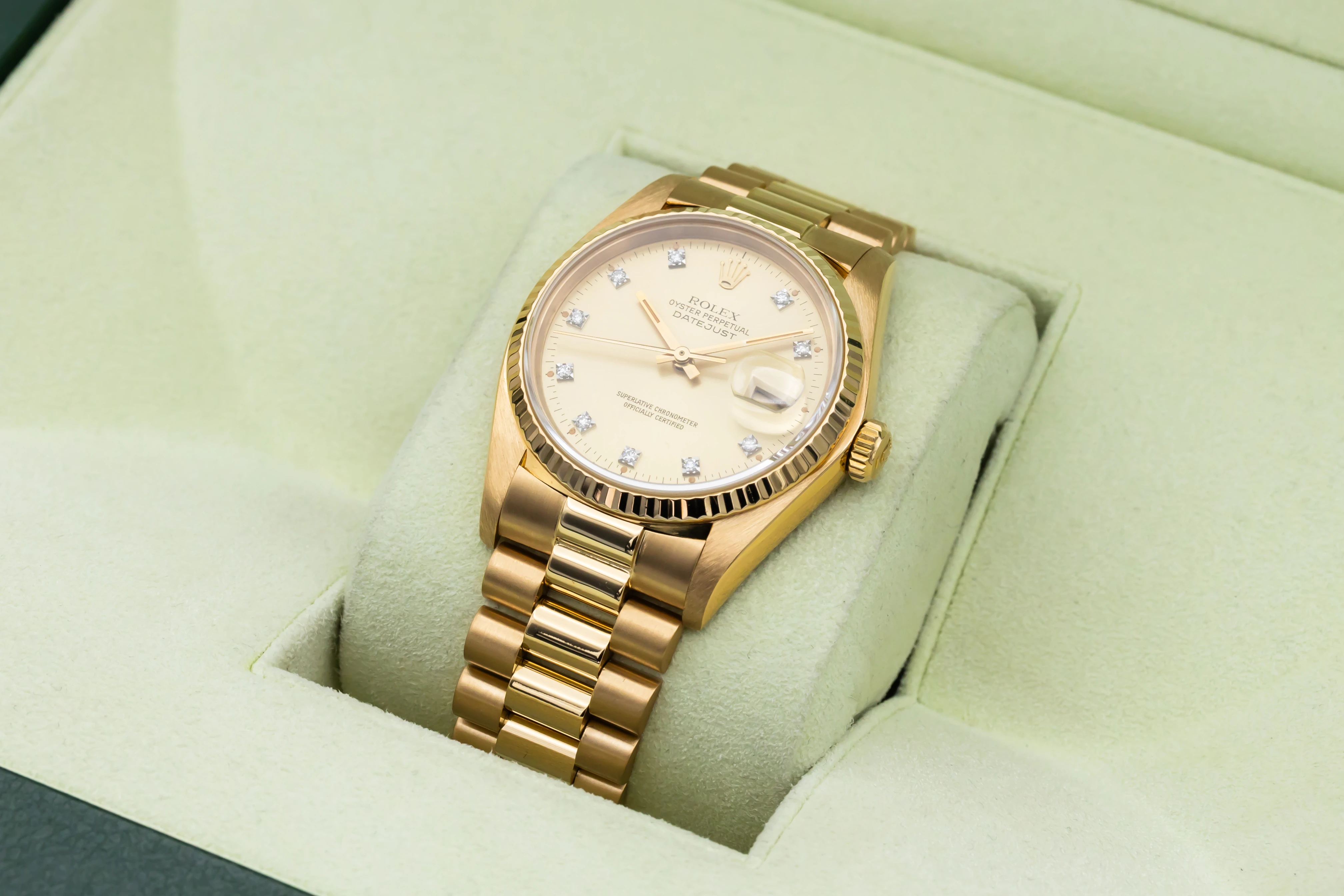 Introduced in 1945 to celebrate Rolex’s 40th anniversary, the DateJust is one of the brand’s most enduring and historically significant collections. The reference 16018, produced throughout the late 1970s and 1980s, represents a premium solid-gold variant within the line, positioned just below the flagship Day-Date.