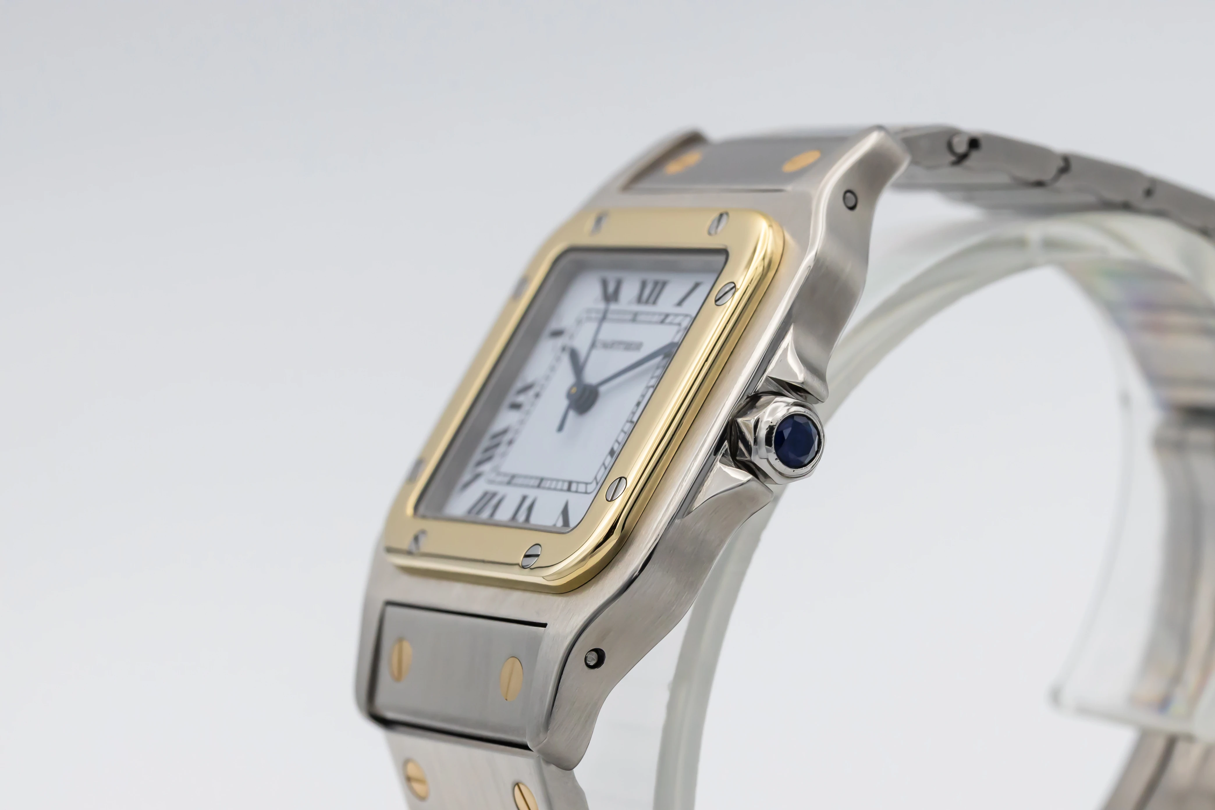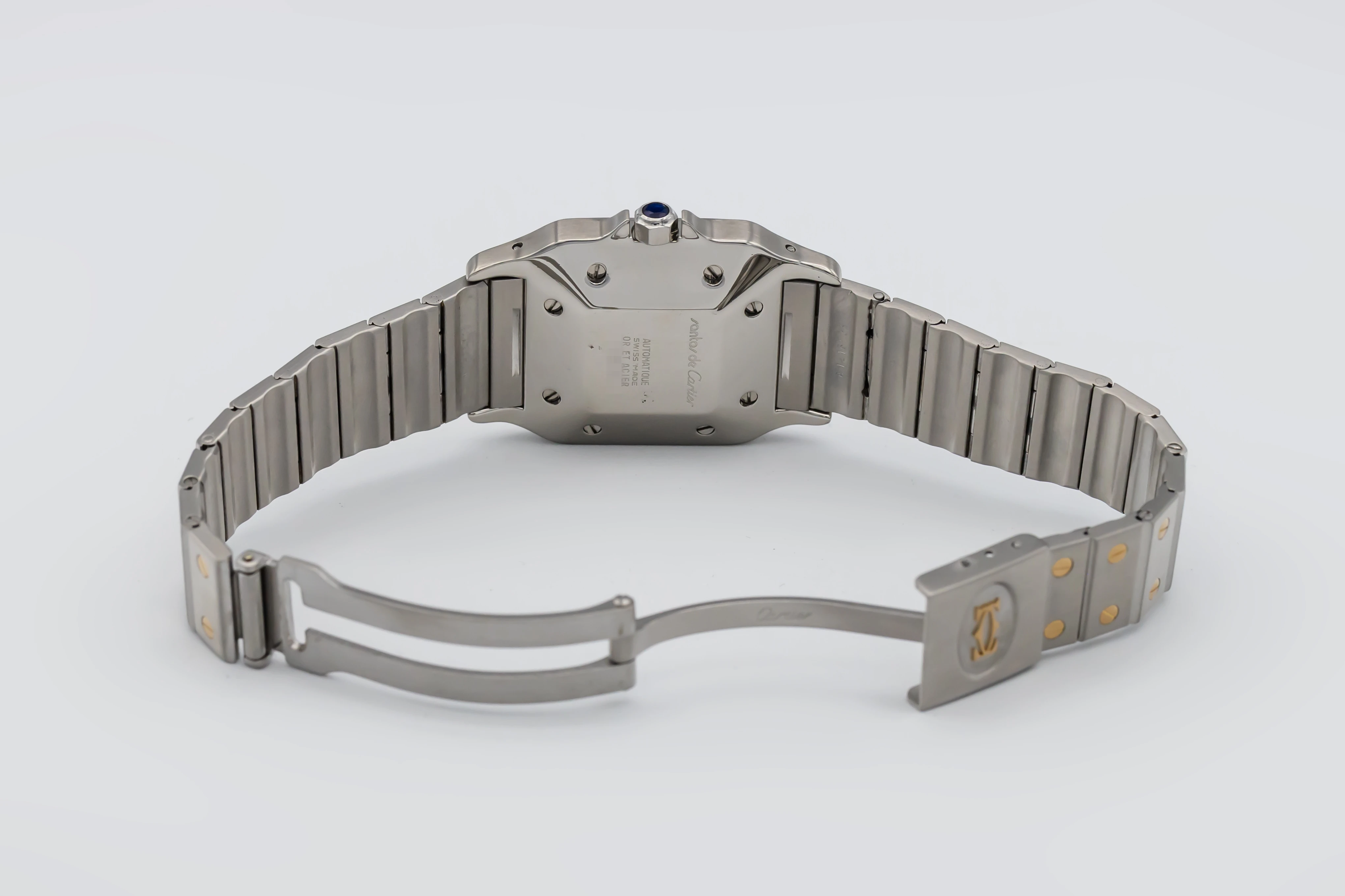 First introduced in 1978 as one of Cartier’s earliest stainless steel and gold sports watches, the Santos Carrée helped define modern luxury with its integrated bracelet and industrial-inspired screw detailing.