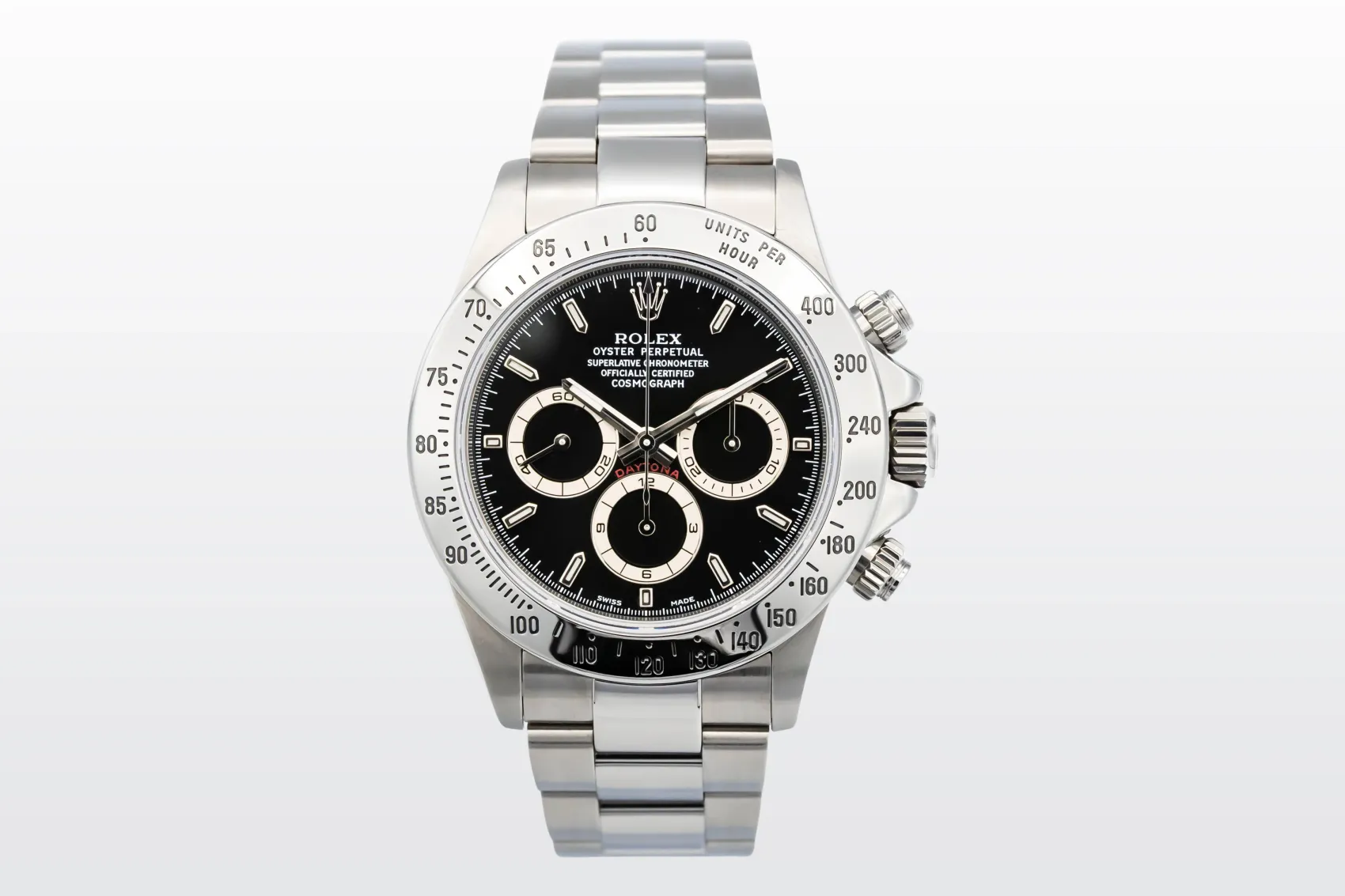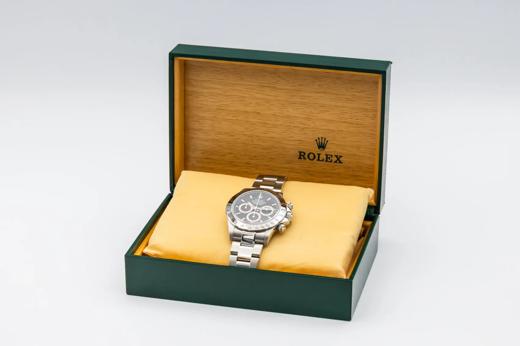Originally launched in 1963 to meet the demands of professional racing drivers, the Cosmograph Daytona became a legendary symbol of speed and precision. The reference 16520, introduced in 1988, marked an important evolution — it was the first Daytona to feature Rolex’s then-new automatic chronograph movement, the calibre 4030 (based on the Zenith El Primero movement).