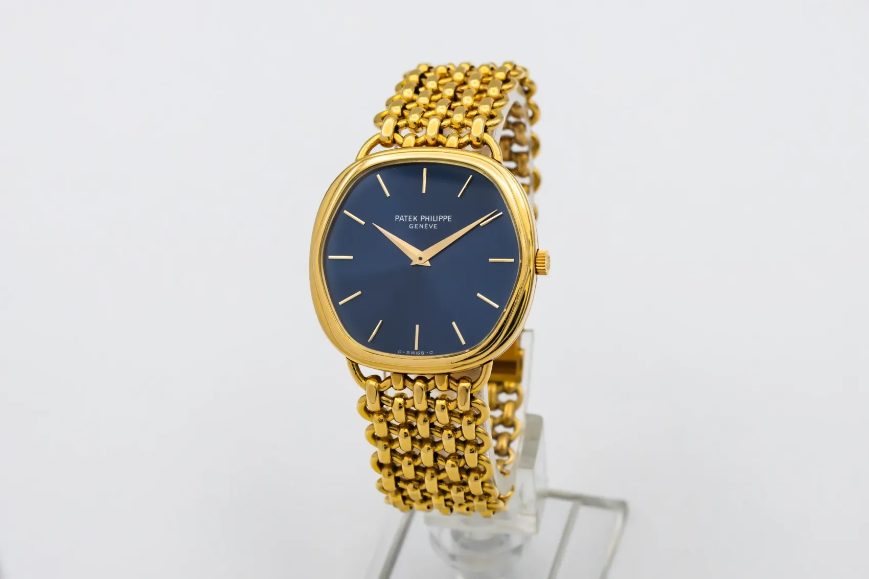 finance this from £321.62 p/m call the shop Read about our Limited Lifetime WarrantyThis 1985 Patek Philippe Golden Ellipse features the collection’s iconic elliptical 33mm case, crafted from luxurious 18ct yellow gold with elegant polished finishing. The minimalist dial, characteristic of the Golden Ellipse line, presents refined hour markers and slim hands that enhance the watch’s timeless symmetry. Paired with a 18ct yellow gold bracelet.