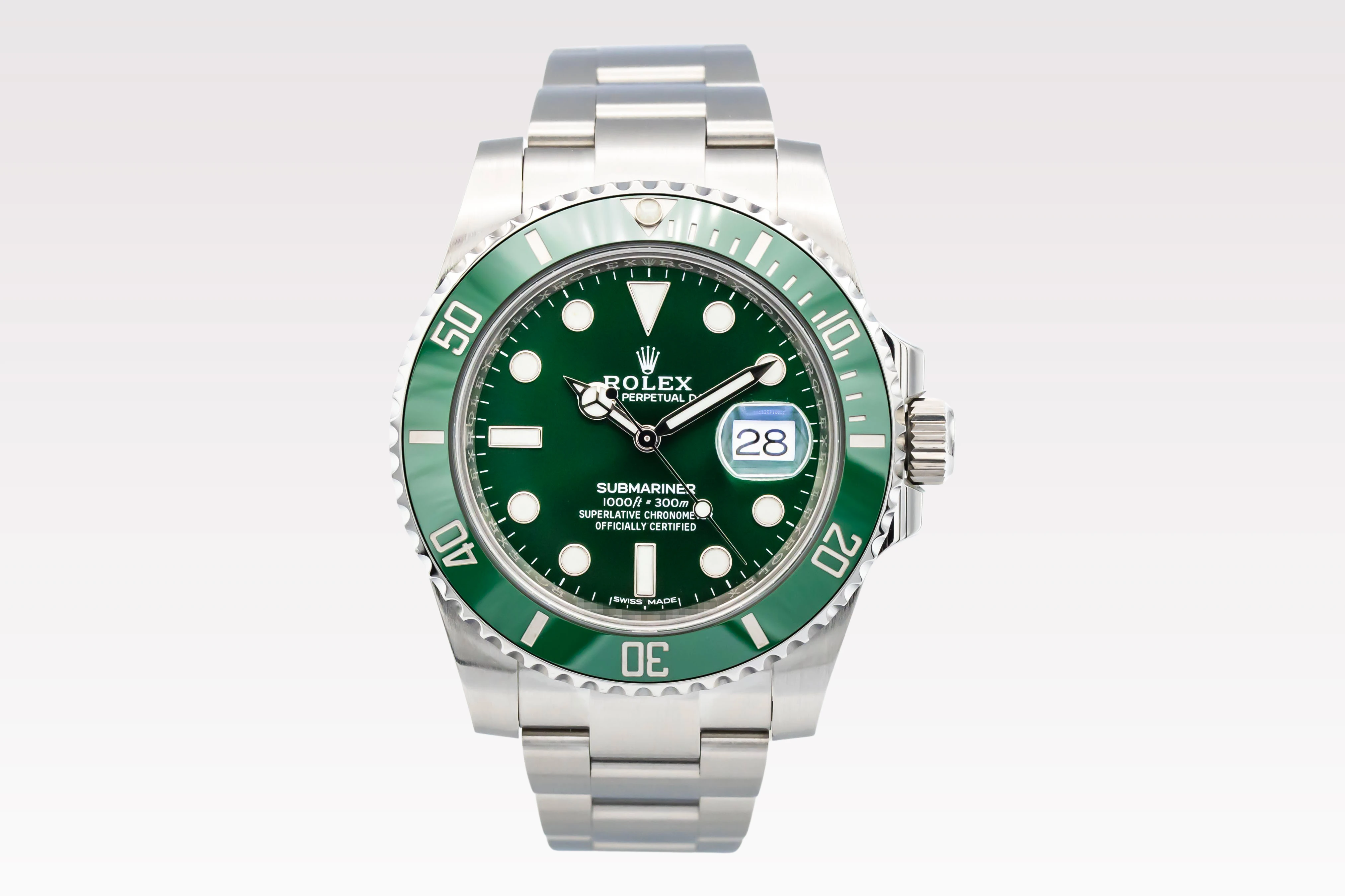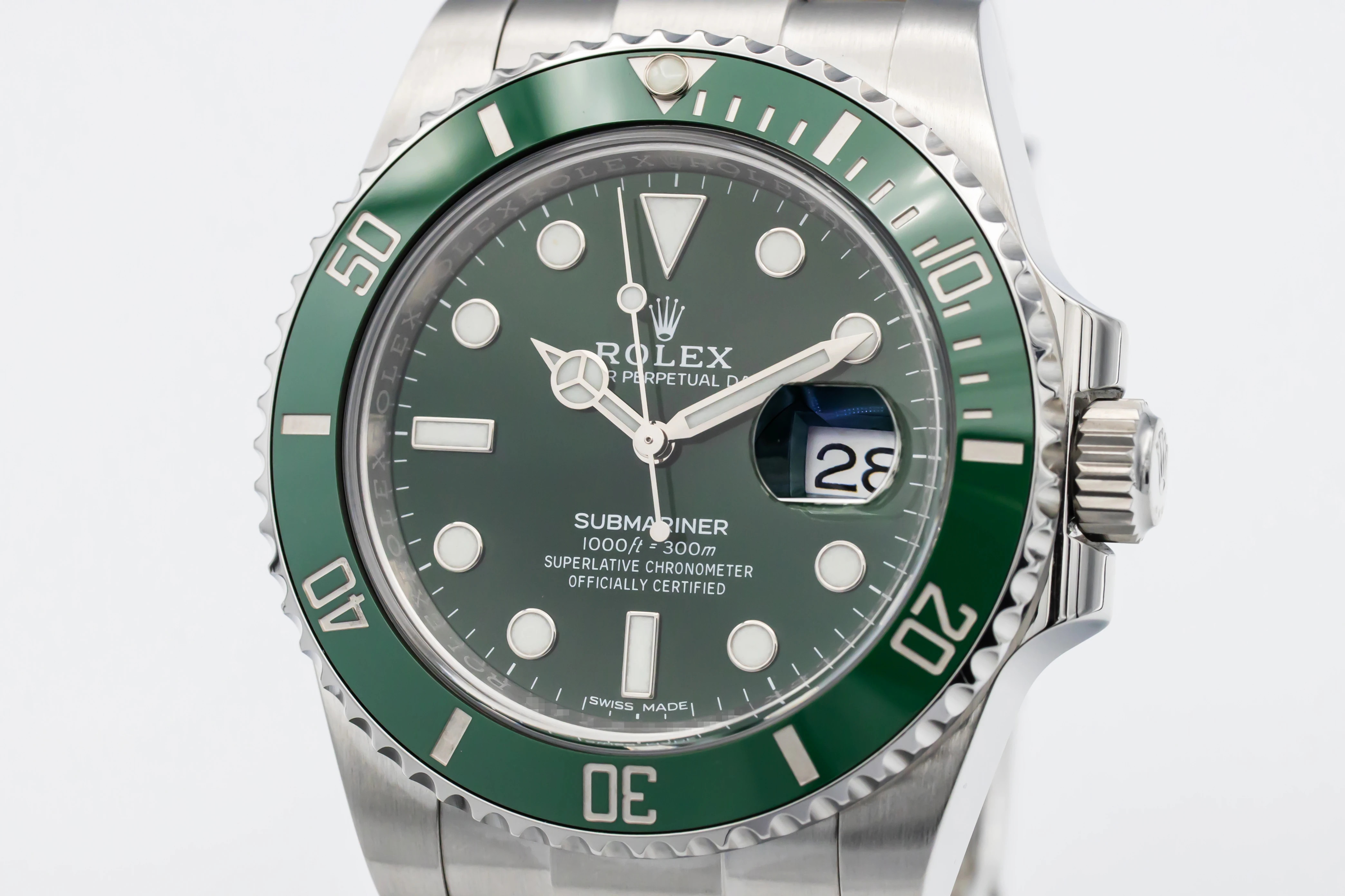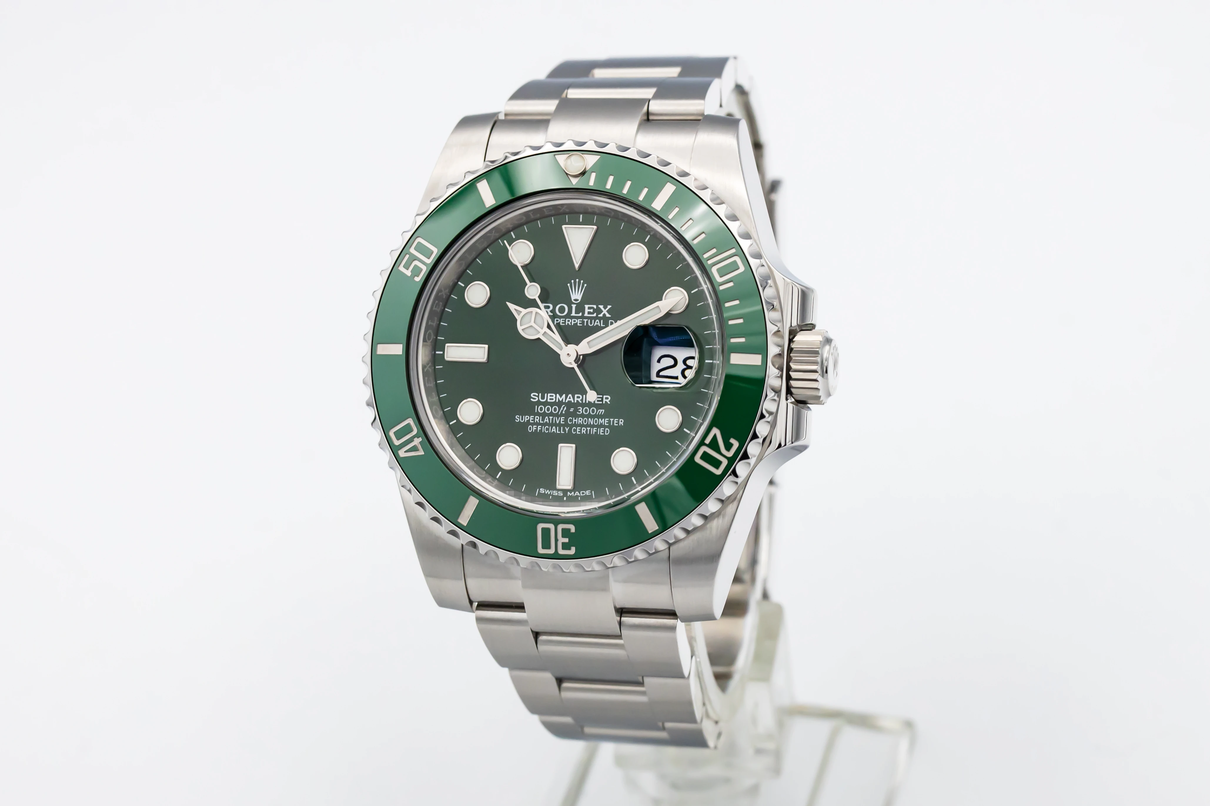 Launched in 2010, the reference 116610LV quickly became one of the most sought-after Submariner models Rolex ever produced. Earning the nickname “Hulk” for its full-green configuration, it represented a bold evolution from the earlier green-bezel-only 16610LV “Kermit.”