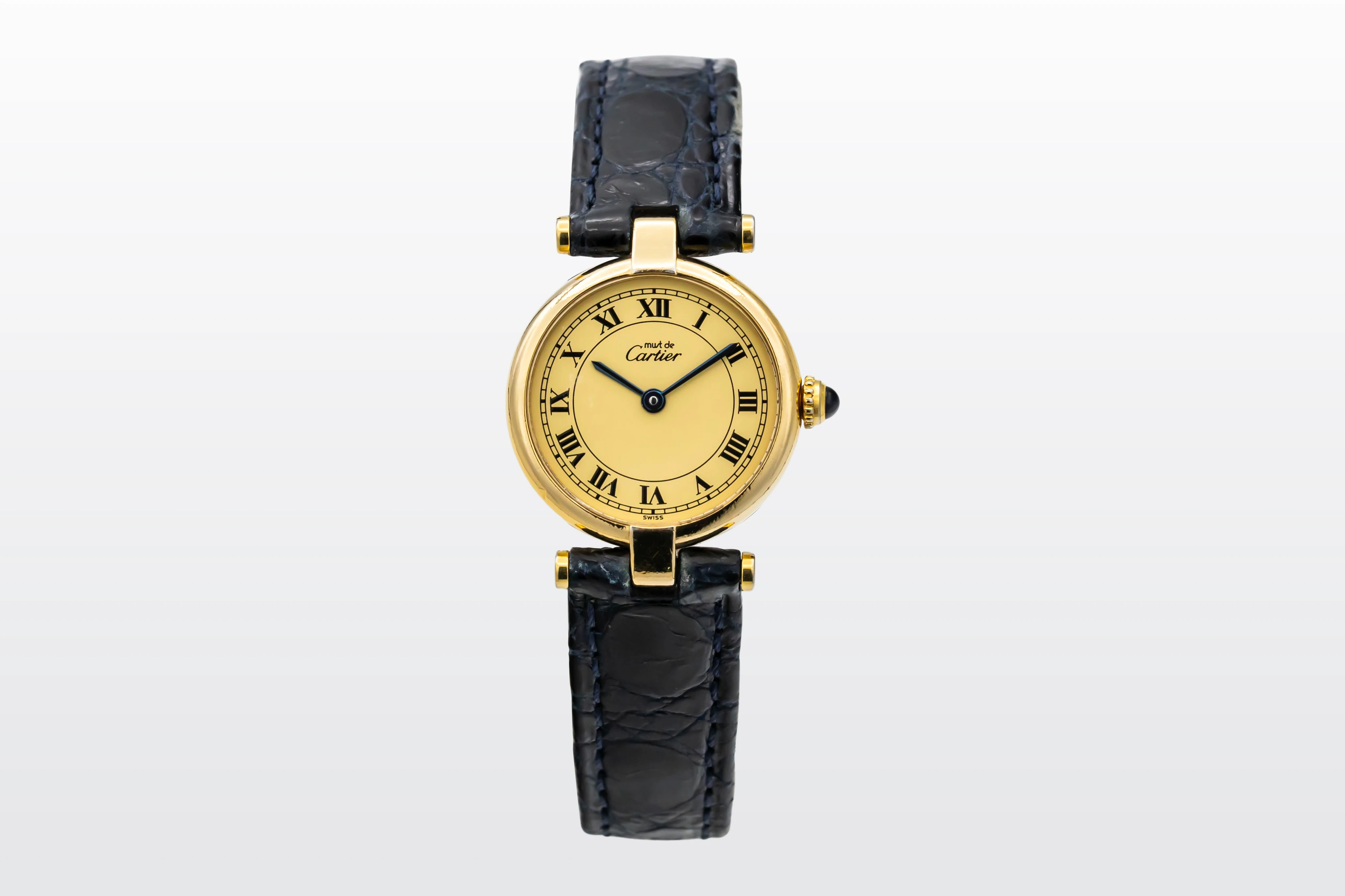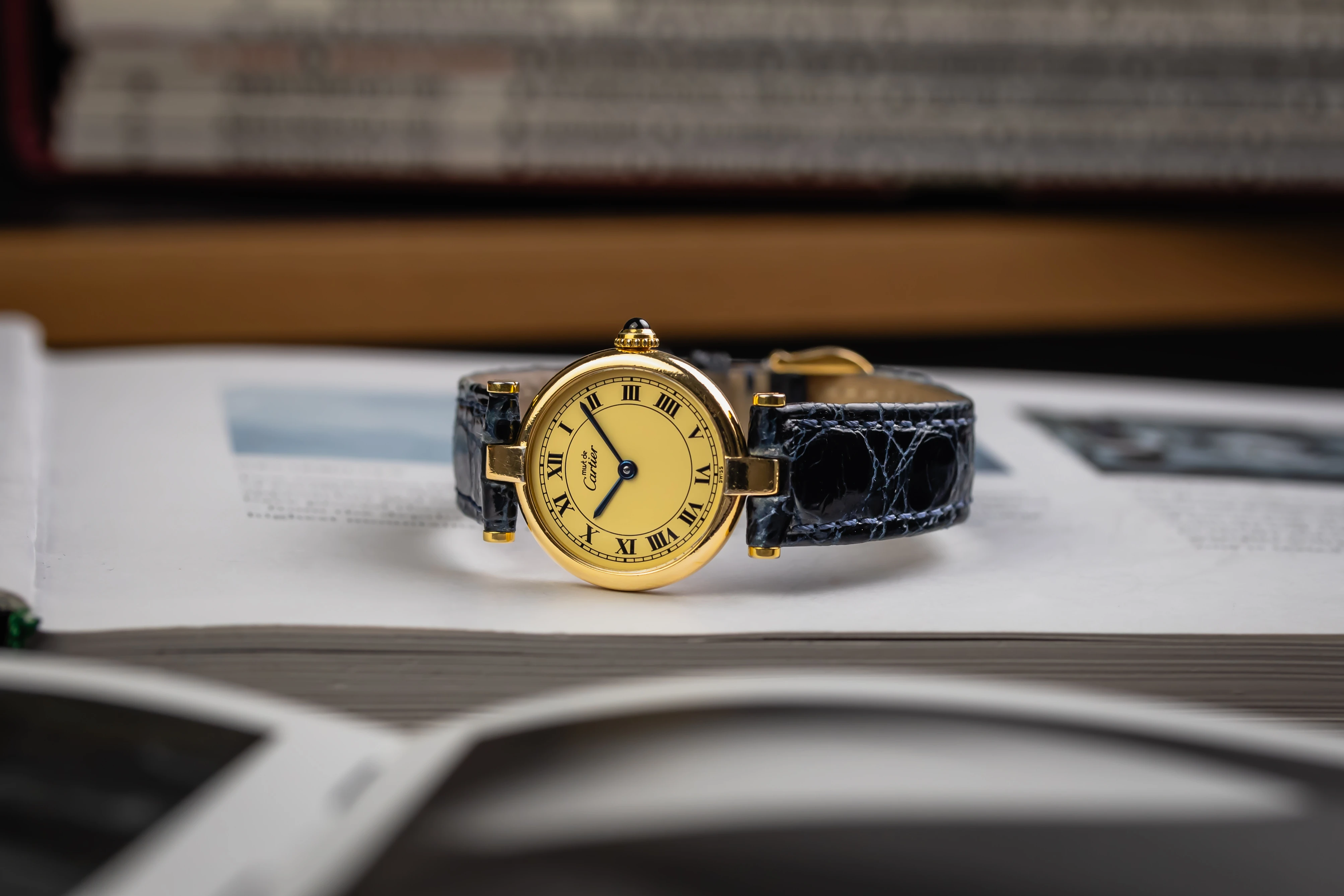 Introduced in the late 1970s, the “Must de Cartier” collection was created to offer luxury design with accessible materials, while still representing the heritage of the Cartier Maison. The Vendôme line, named after the famous Place Vendôme in Paris, embraced a round case and elegant bar-style lugs, departing from Cartier’s more geometric Tank designs.