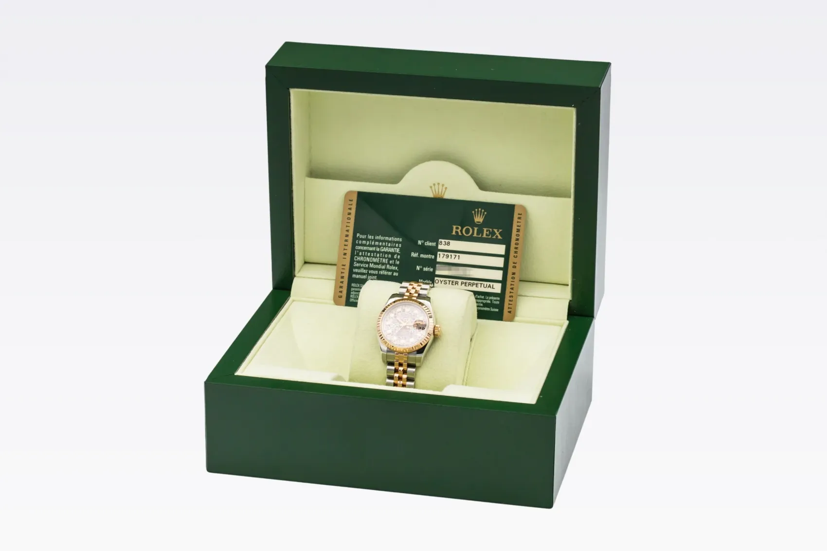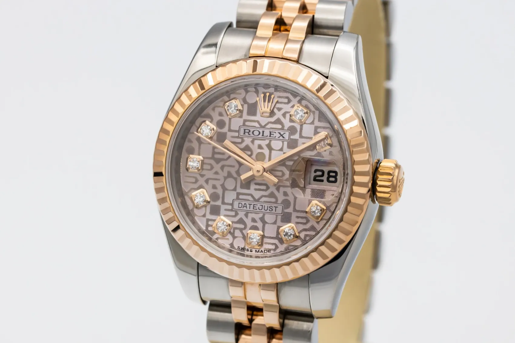 Introduced in 1945, the Rolex DateJust was the first self-winding wristwatch to feature a date window on the dial a revolutionary design at the time. Over decades, it has become a symbol of timeless luxury and precision. The 179171 reference combines modern Rolex craftsmanship with the charm of vintage-inspired aesthetics. Its use of Everose gold, Rolex’s proprietary rose gold alloy, ensures enduring beauty without fading.