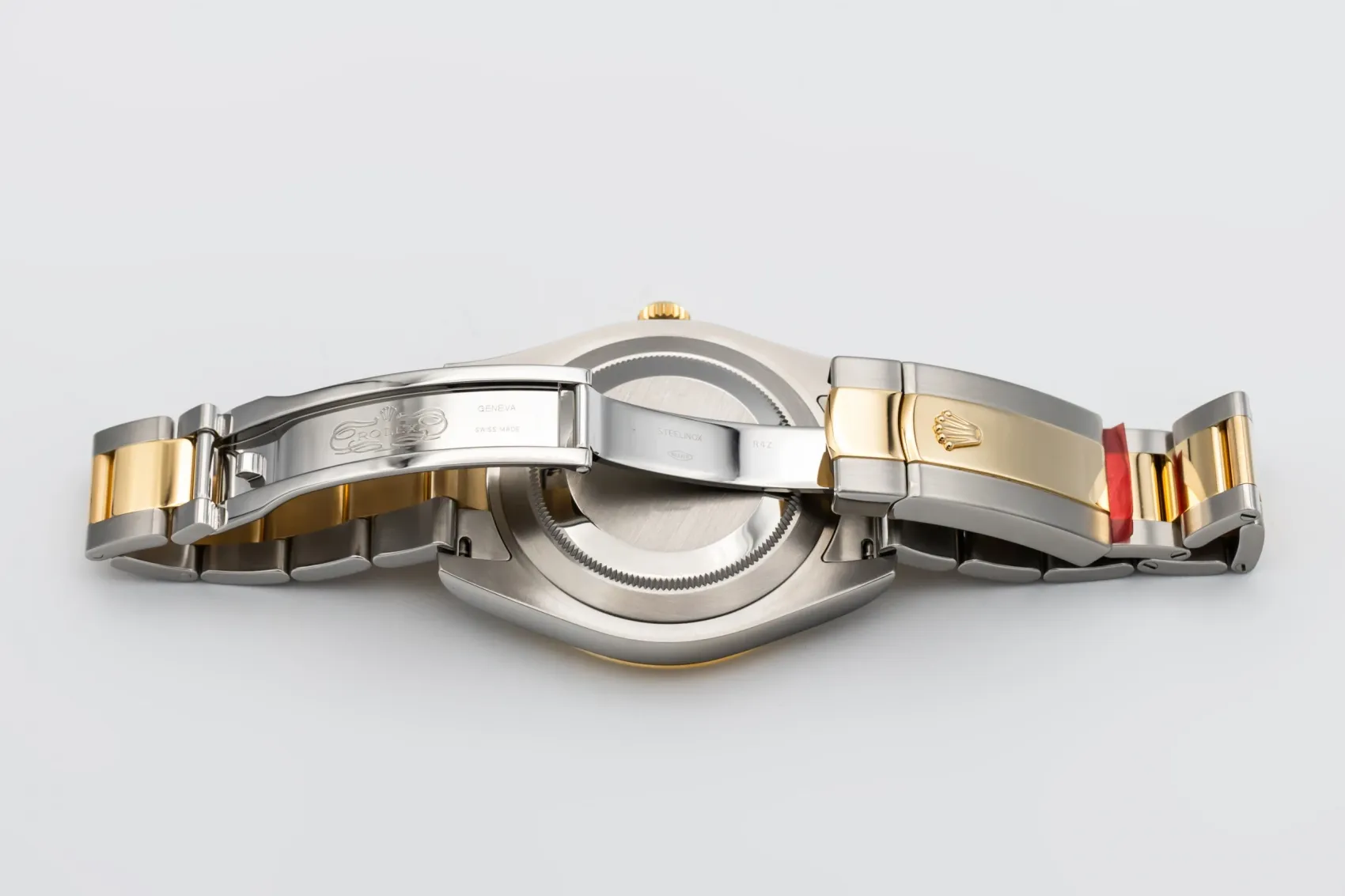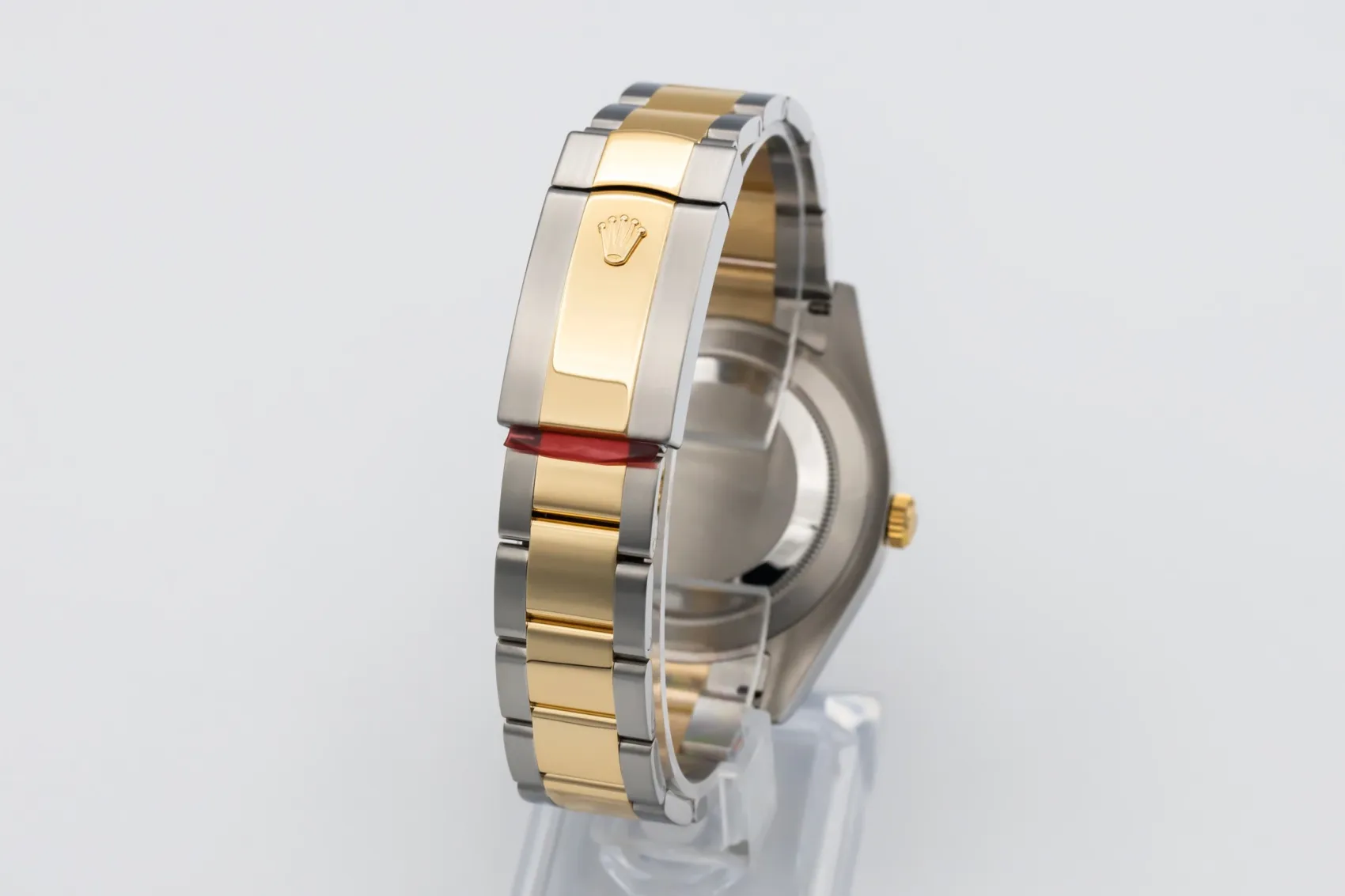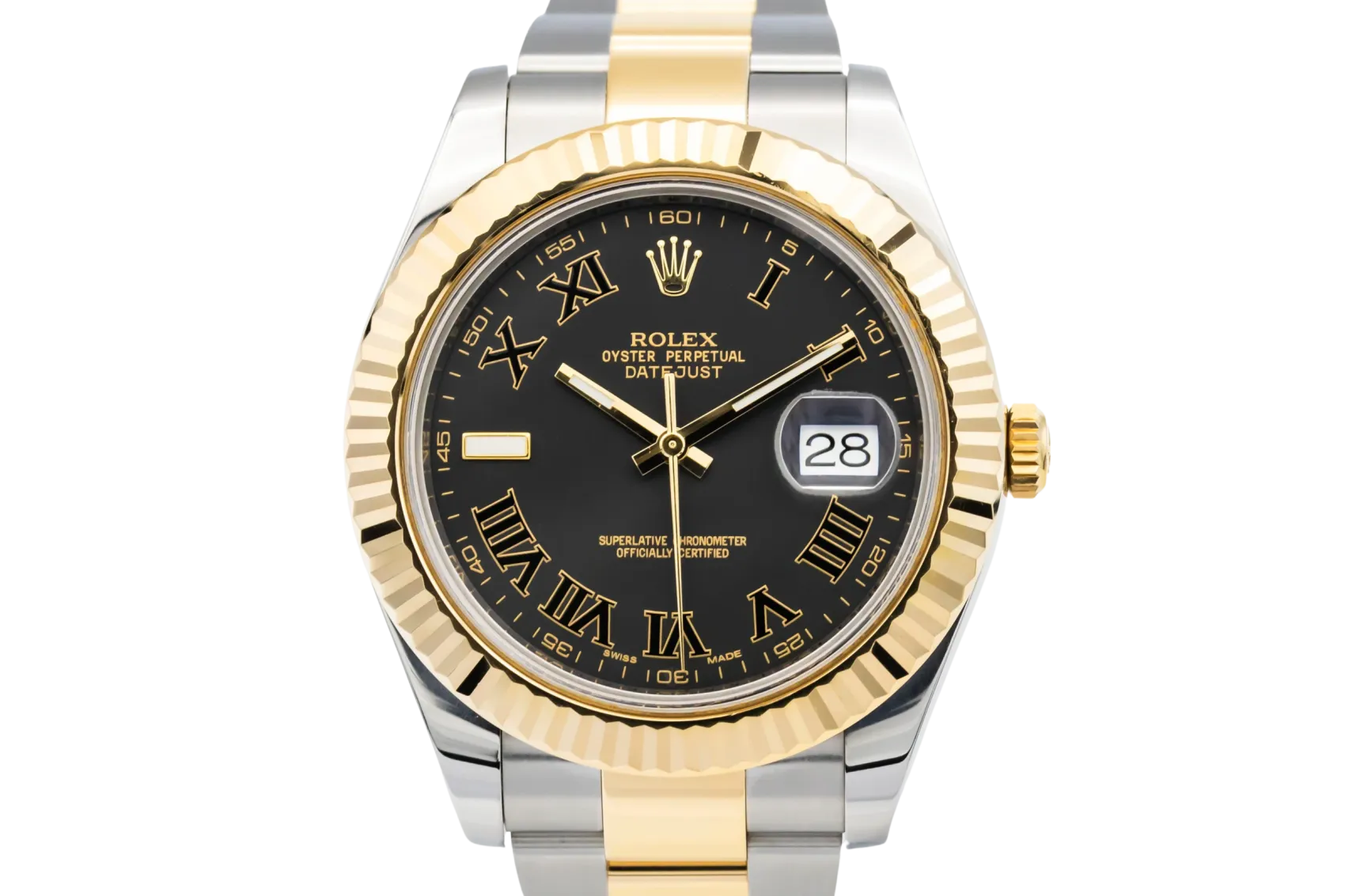 finance this from £200.07 p/m call the shop Read about our Limited Lifetime WarrantyThis 2015 Rolex DateJust II presented in a bold 41mm Oyster case crafted from stainless steel and 18ct yellow gold, paired with the robust Oyster bracelet for a strong yet refined wrist presence. The dial features applied hour markers, polished hands, and the signature date window at 3 o’clock with Cyclops magnification, while the fluted 18ct yellow gold bezel adds classic Rolex elegance.