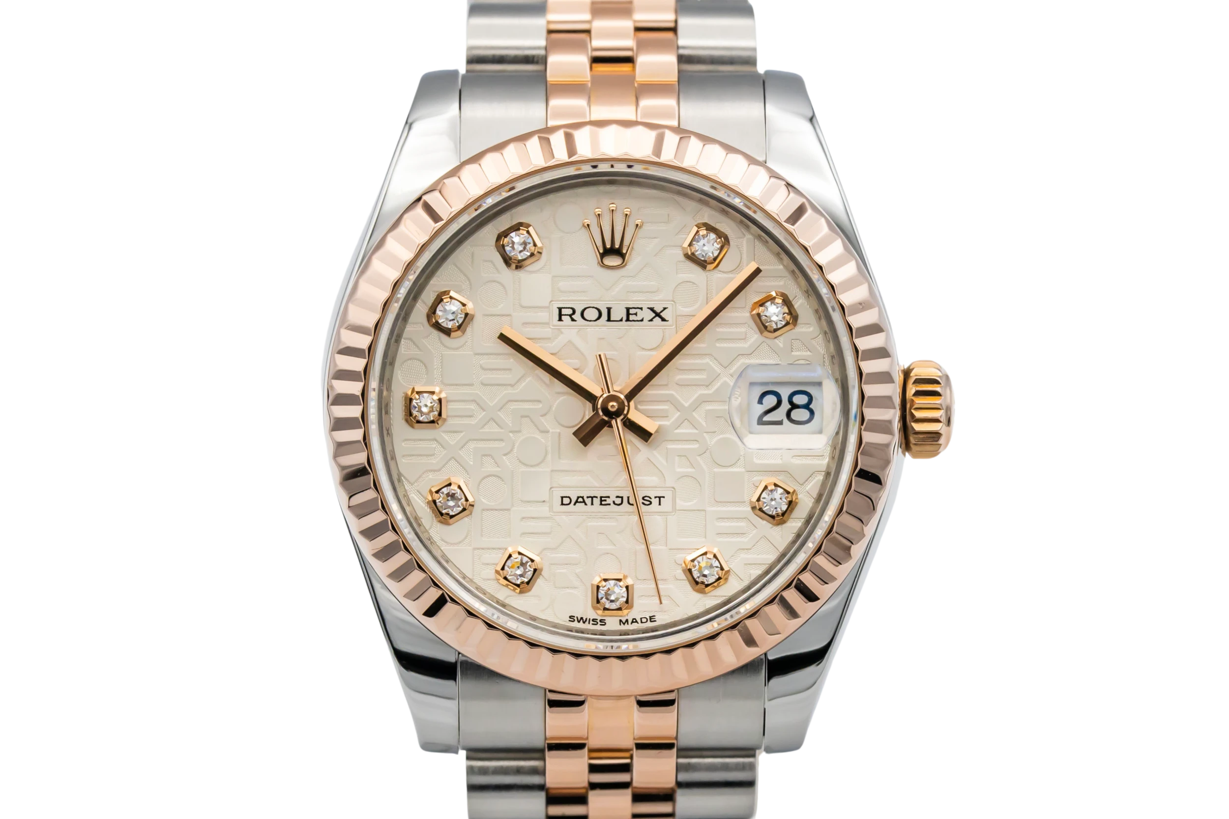 This 2011 Rolex DateJust 31mm features a silver Jubilee dial which is Rolex’s signature repeating motif, adding depth and texture while catching the light beautifully. With diamond markers that enhance legibility, while the fluted Everose gold bezel frames the dial with classic sophistication. Finished with the iconic Jubilee bracelet.