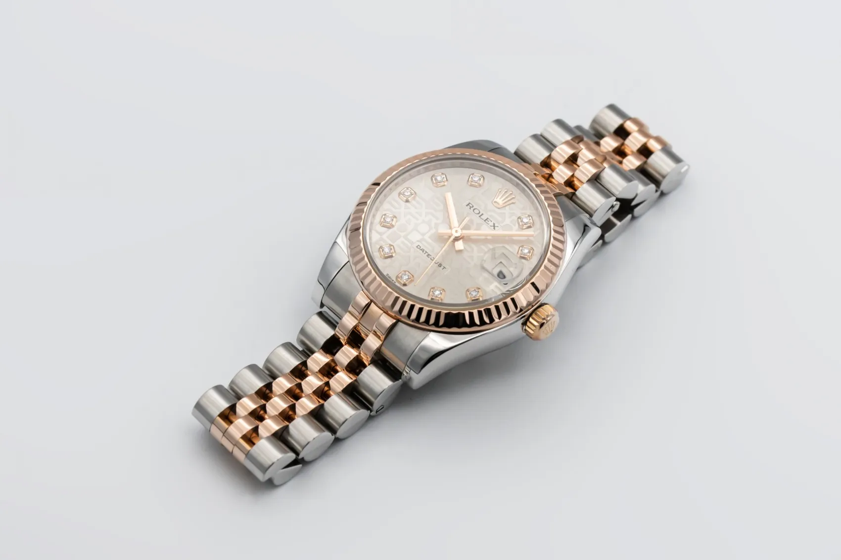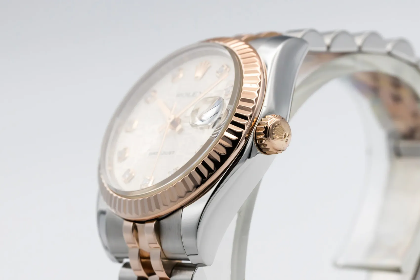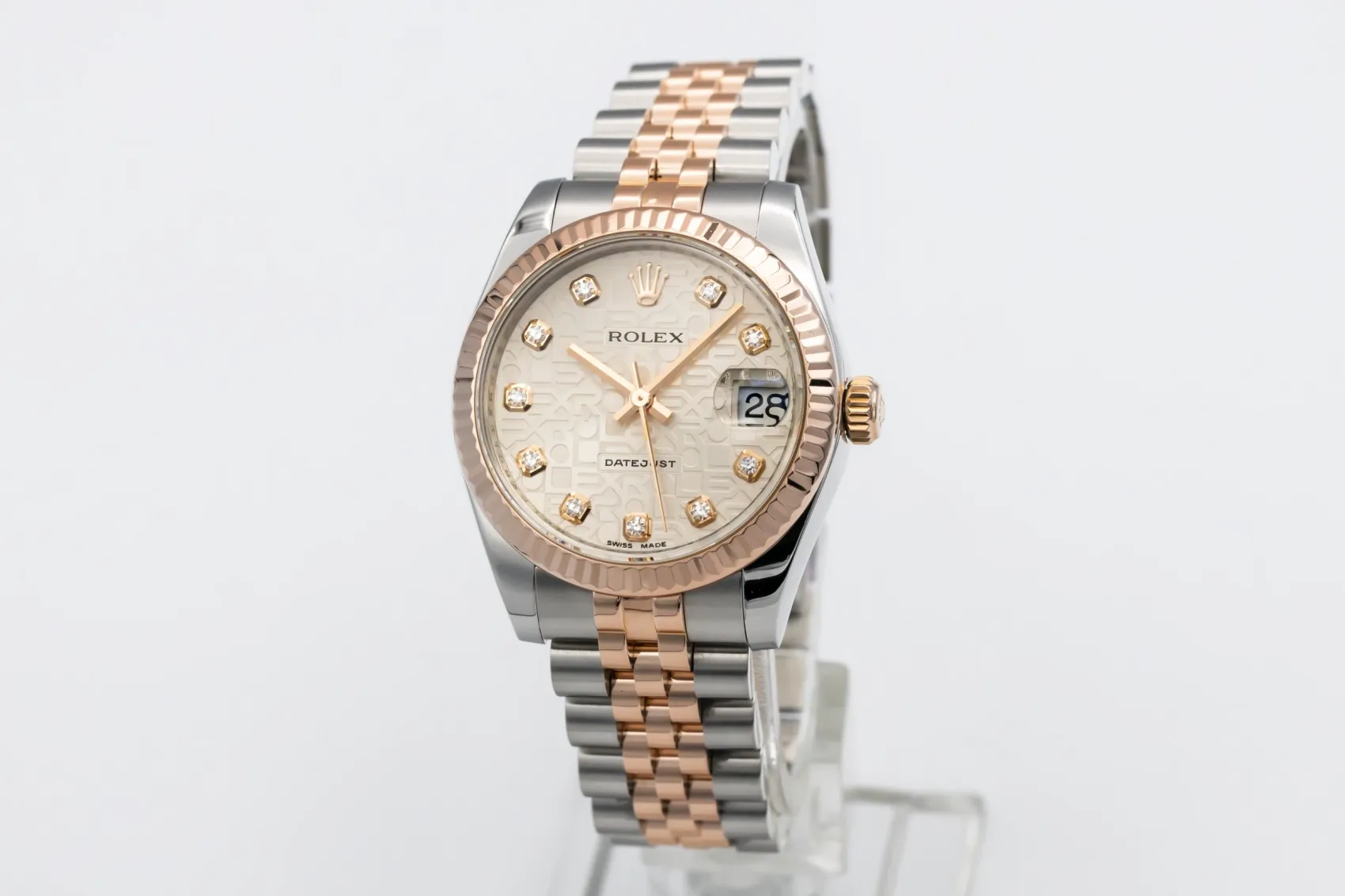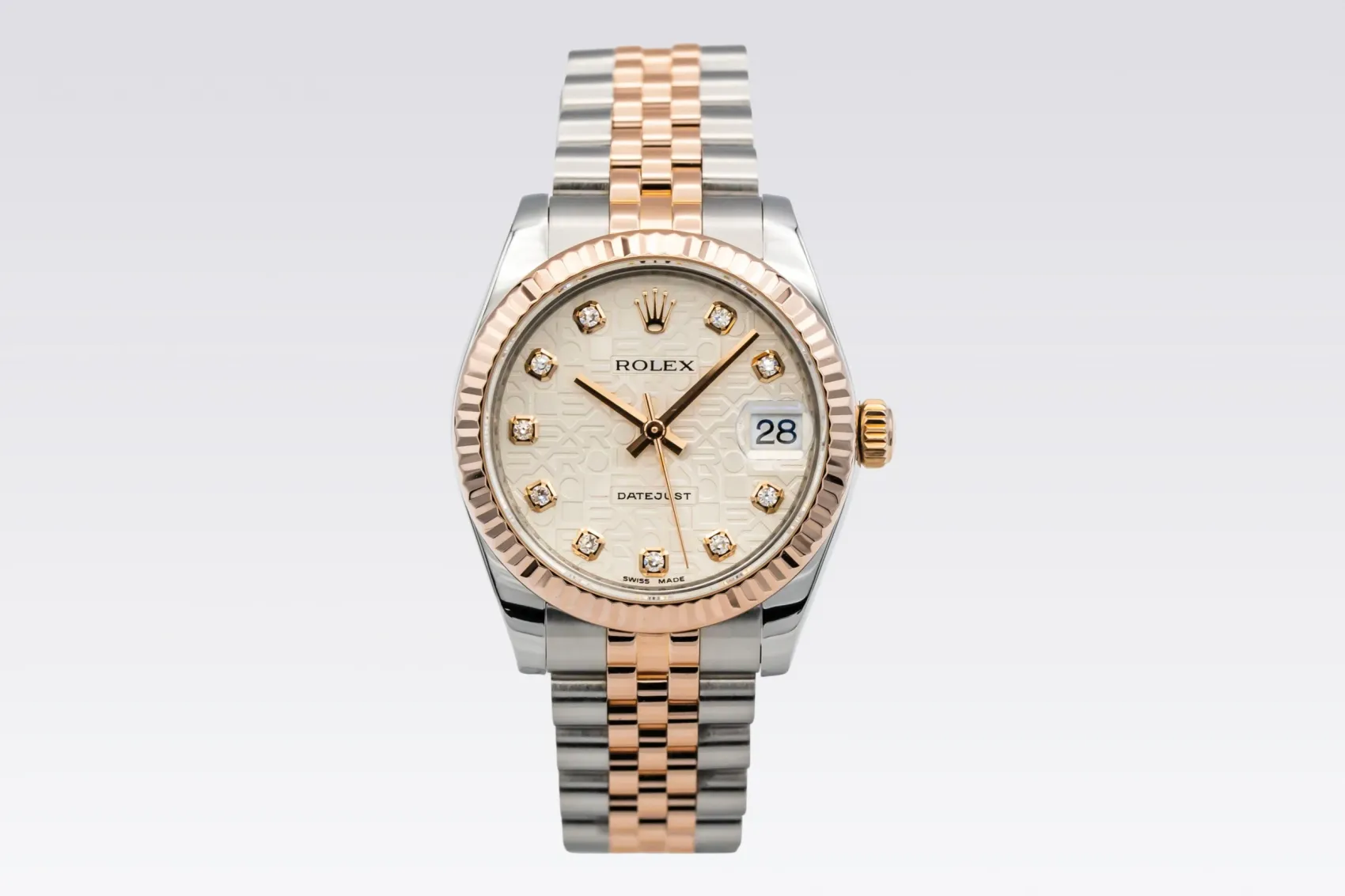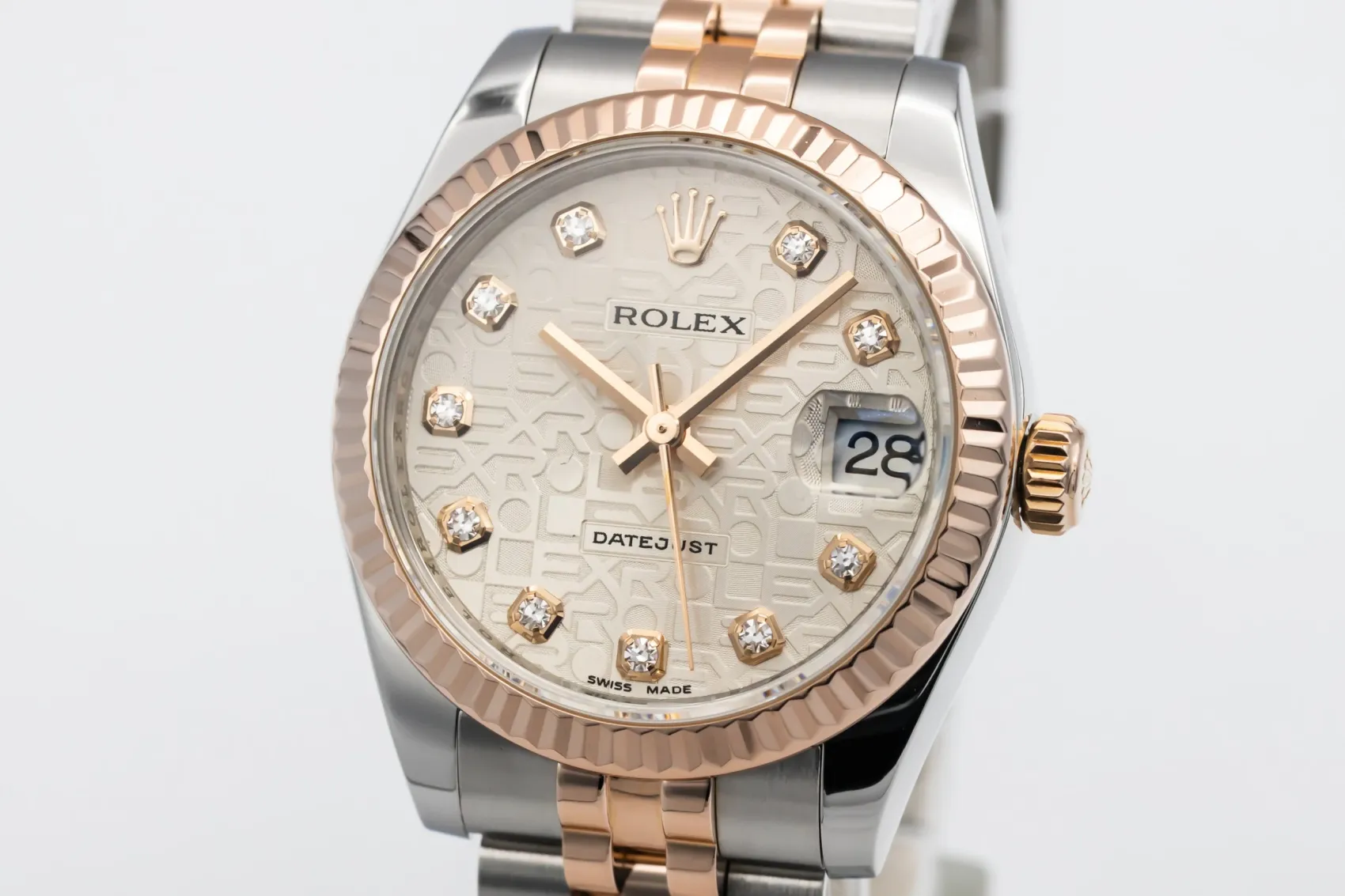 finance this from £227.12 p/m call the shop Read about our Limited Lifetime WarrantyThis 2011 Rolex DateJust 31mm features a silver Jubilee dial which is Rolex’s signature repeating motif, adding depth and texture while catching the light beautifully. With diamond markers that enhance legibility, while the fluted Everose gold bezel frames the dial with classic sophistication. Finished with the iconic Jubilee bracelet.