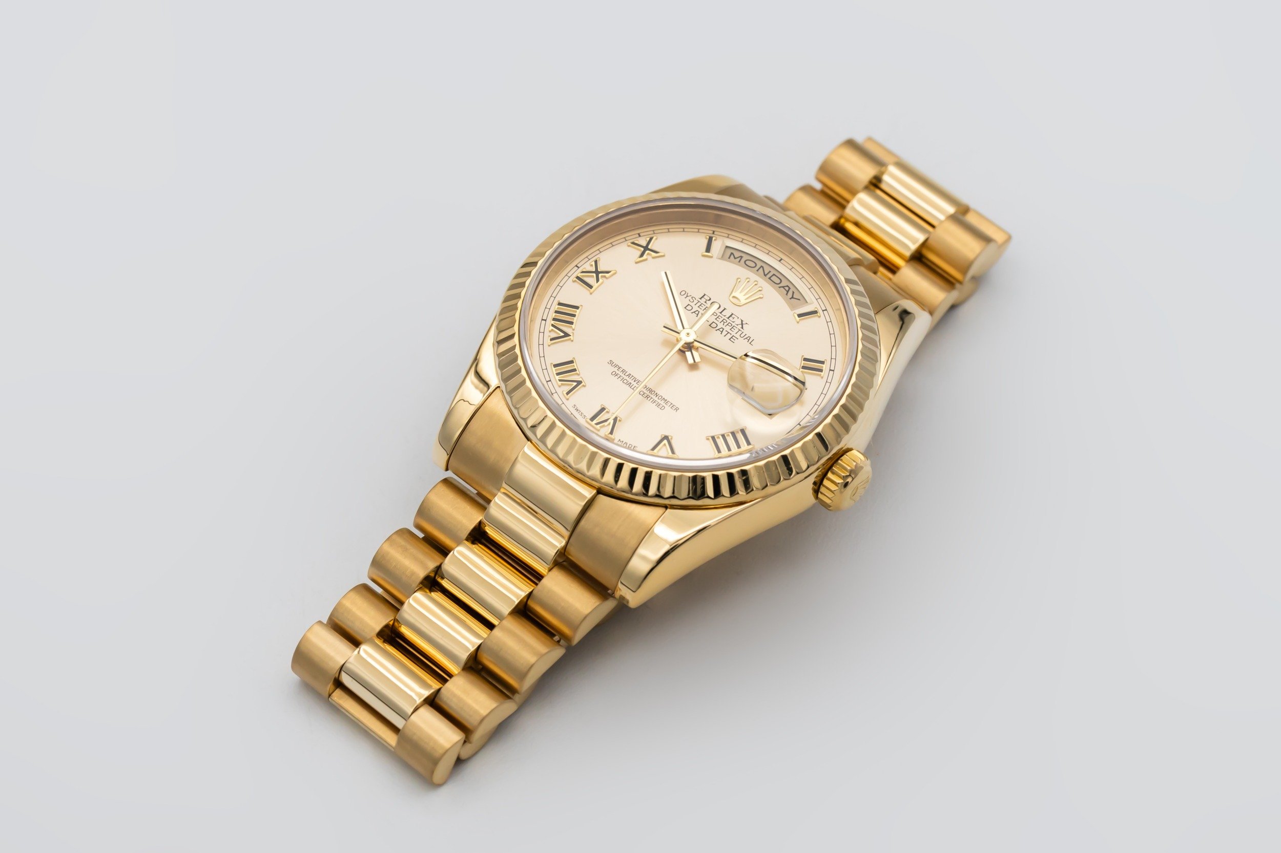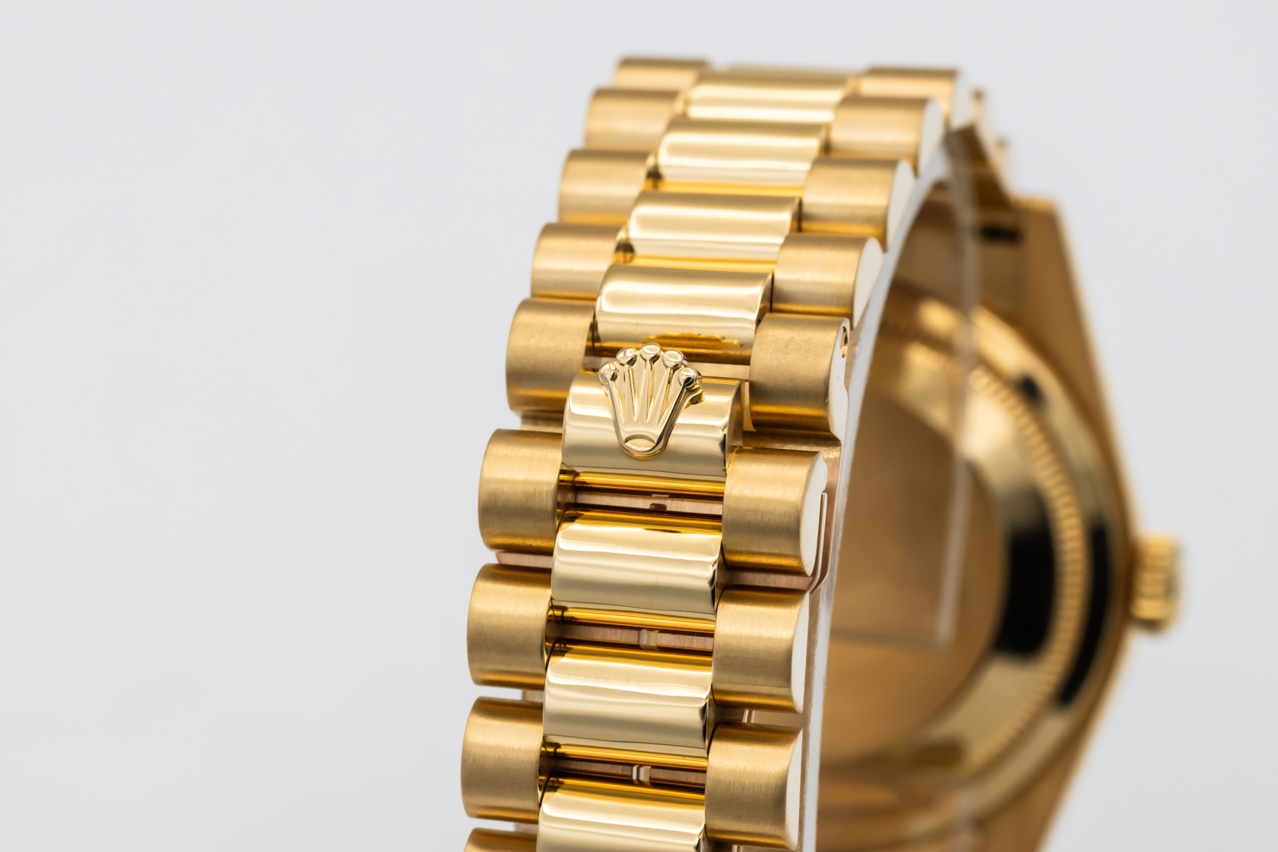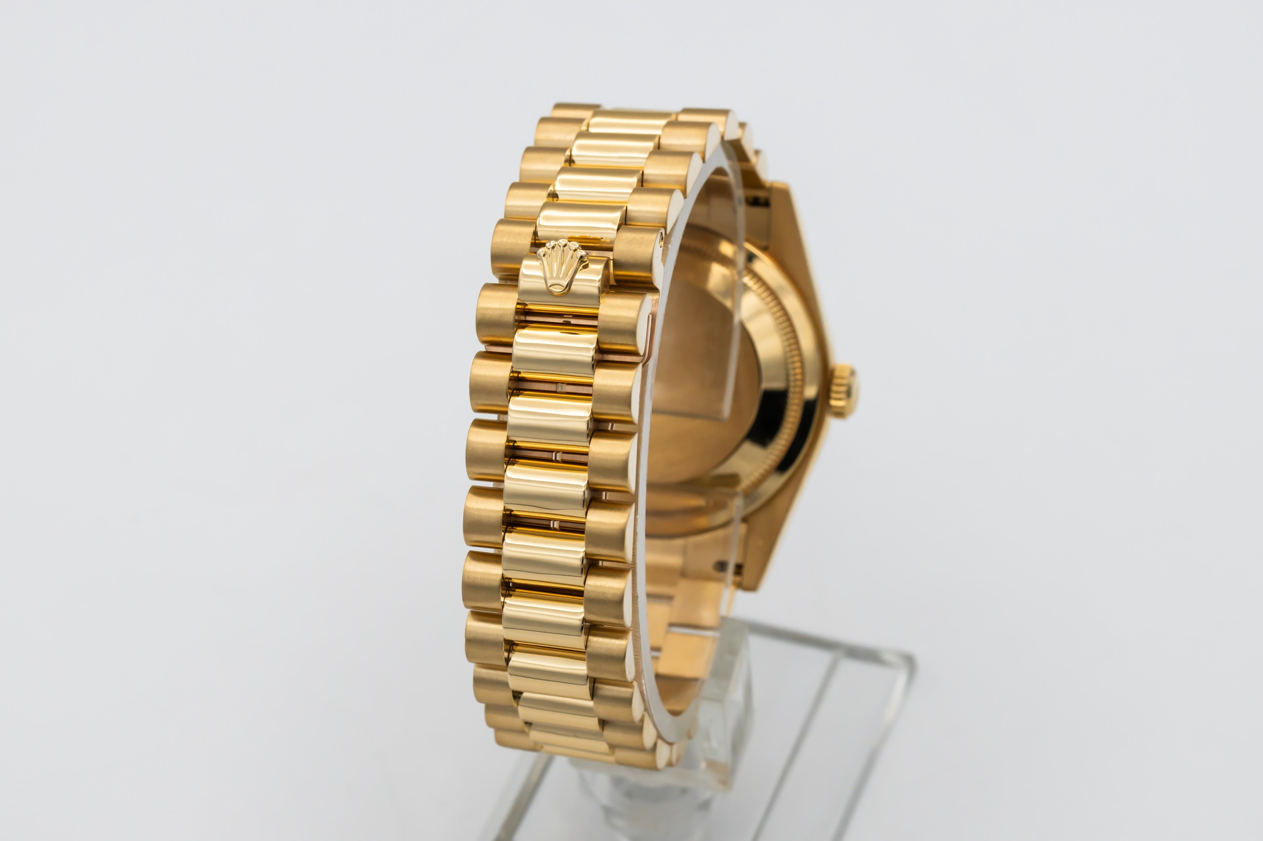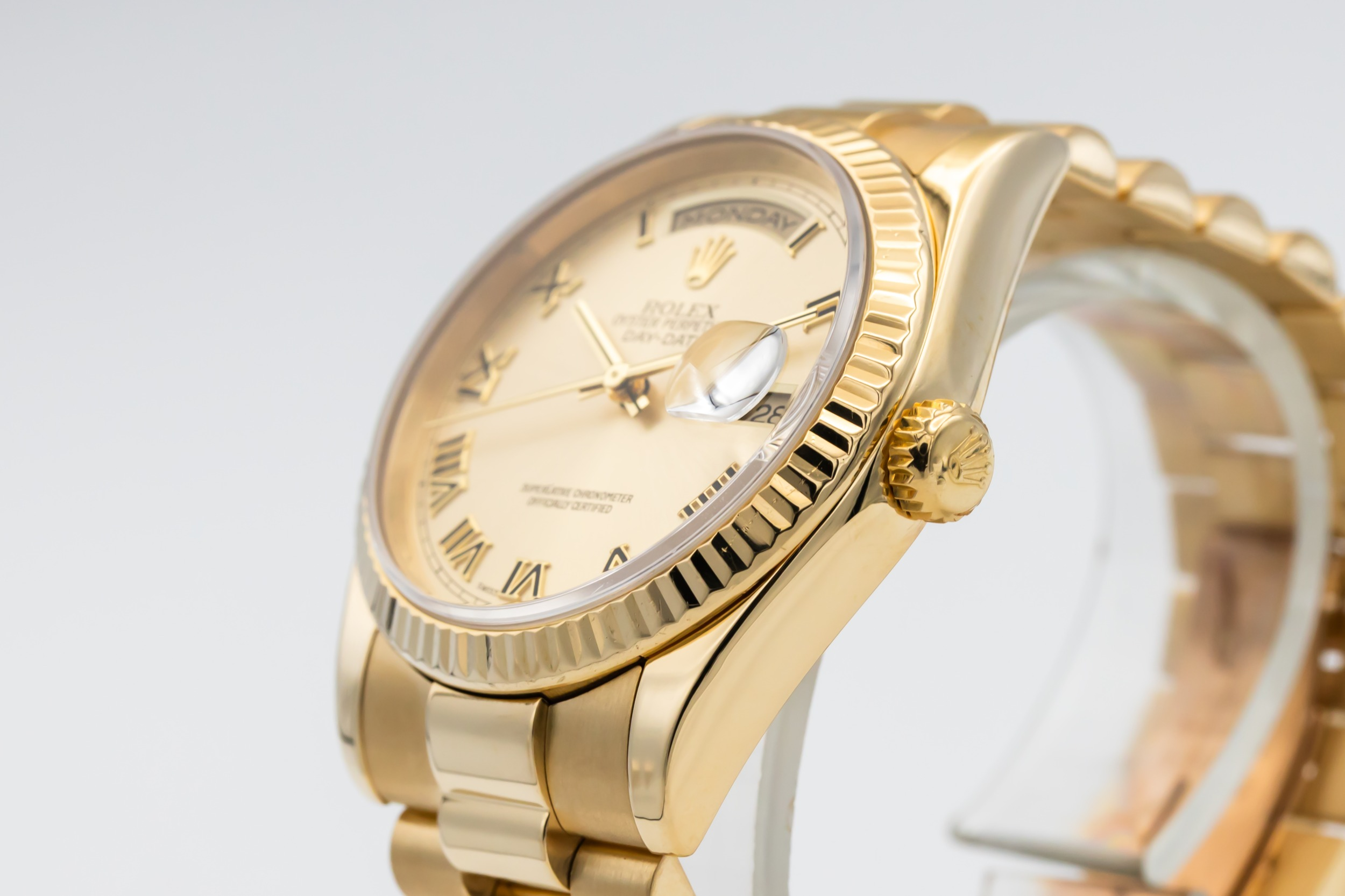 This 2000 Rolex Day-Date 36mm in solid 18ct yellow gold showcases the timeless prestige of the iconic “President” line. This reference, 118238 features the classic fluted bezel, a sundust roman numeral dial with day and date display, and the distinguished Presidential bracelet—renowned for its comfort and unmistakable luxury.