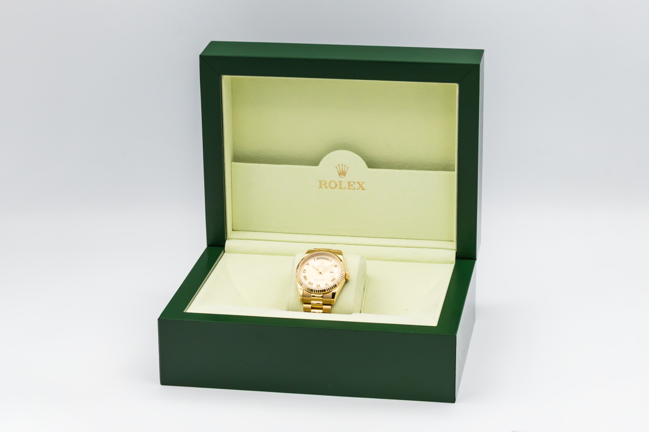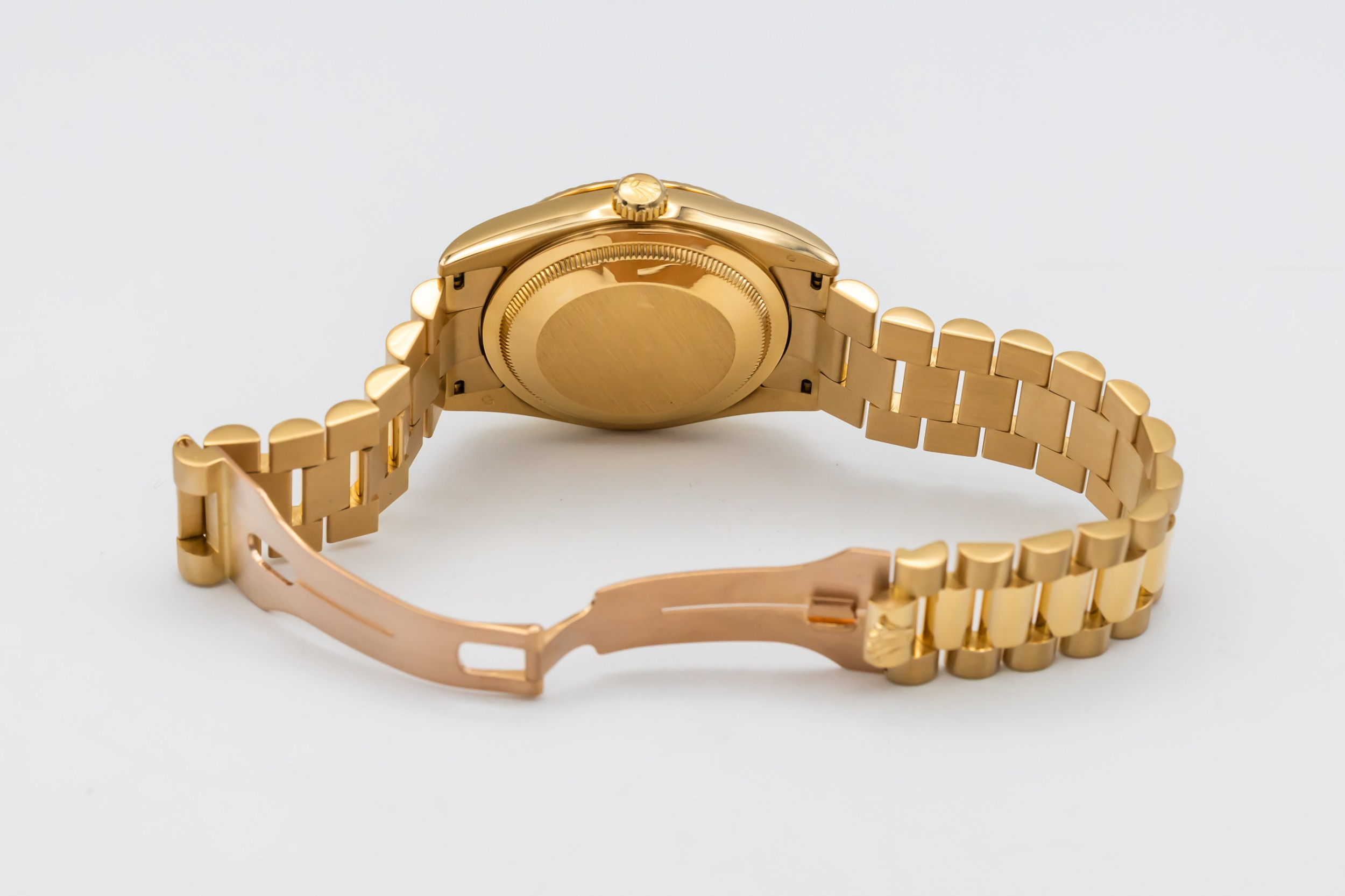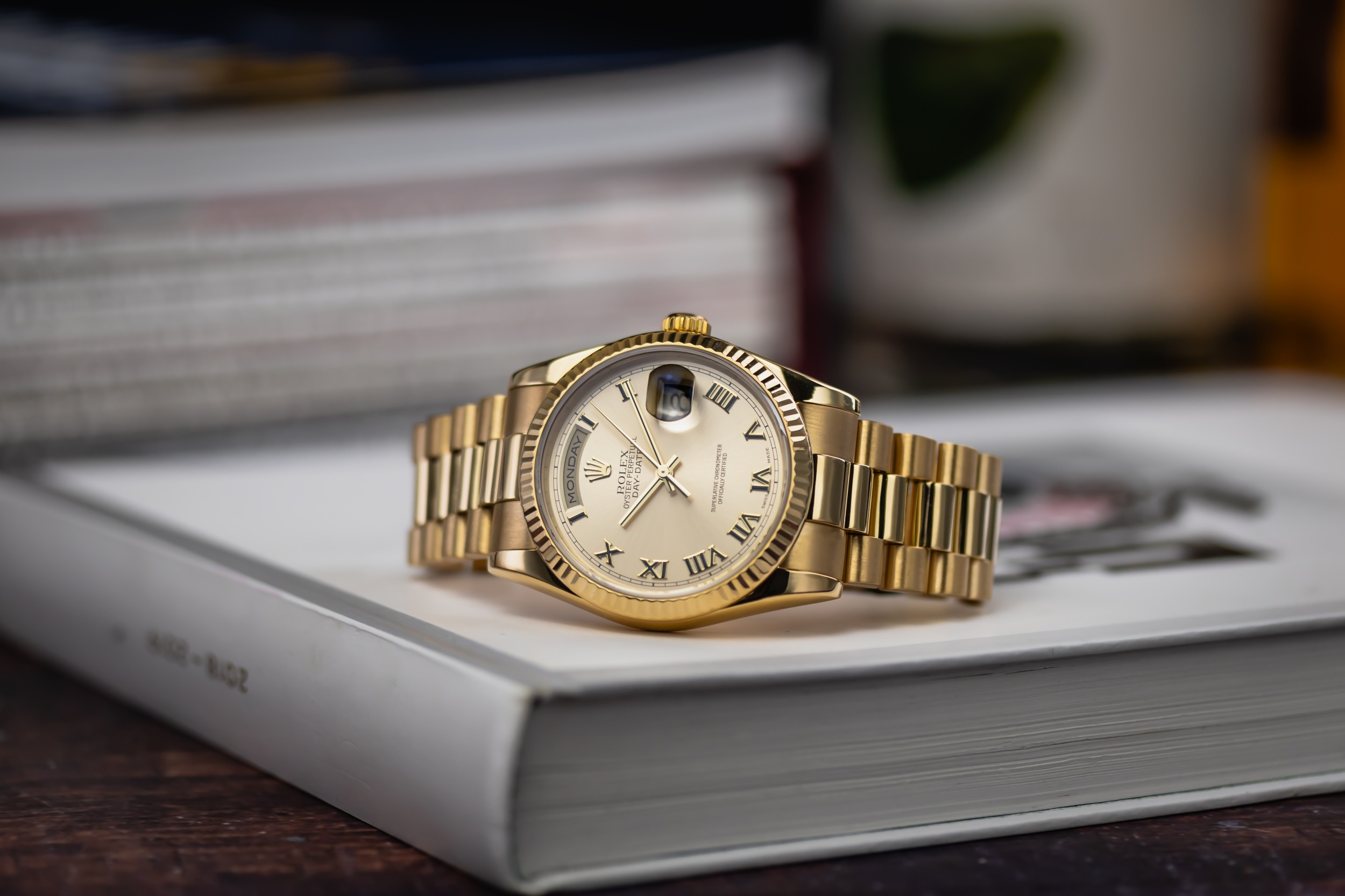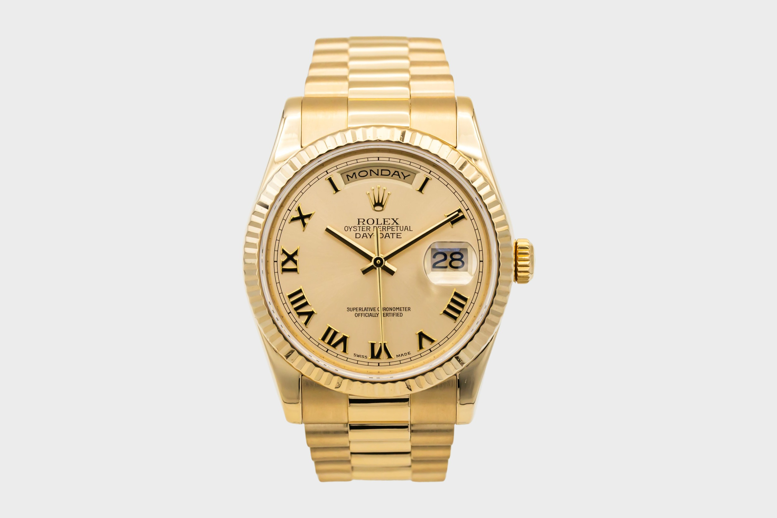 This 2000 Rolex Day-Date 36mm in solid 18ct yellow gold showcases the timeless prestige of the iconic “President” line. This reference, 118238 features the classic fluted bezel, a sundust roman numeral dial with day and date display, and the distinguished Presidential bracelet—renowned for its comfort and unmistakable luxury.