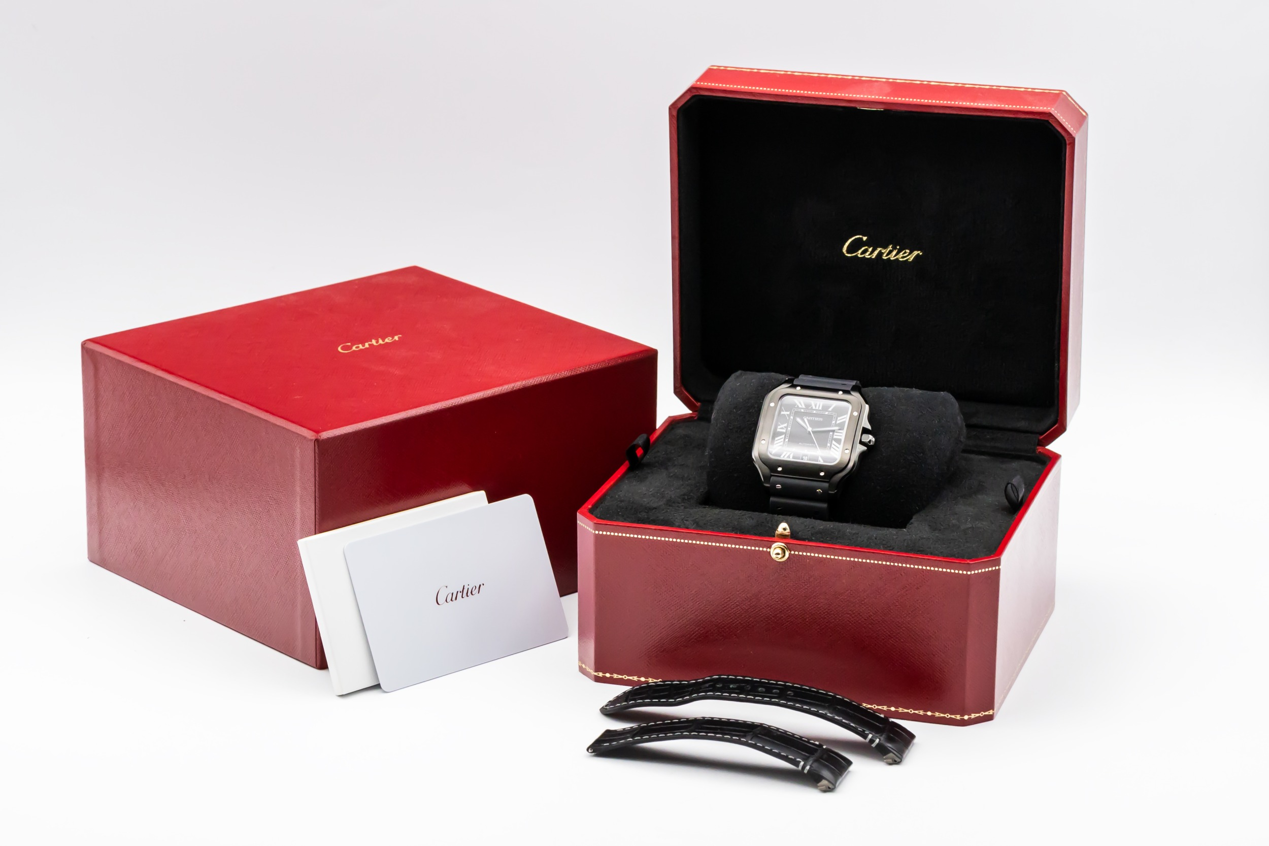 Originating in 1904 when Cartier created one of the first purpose-built wristwatches for aviation pioneer Alberto Santos-Dumont, the Santos has since become one of the Maison’s most iconic designs. Over the decades, the collection has evolved through a variety of materials and styles, from classic steel and gold combinations to innovative contemporary treatments like ADLC (Amorphous Diamond-Like Carbon).