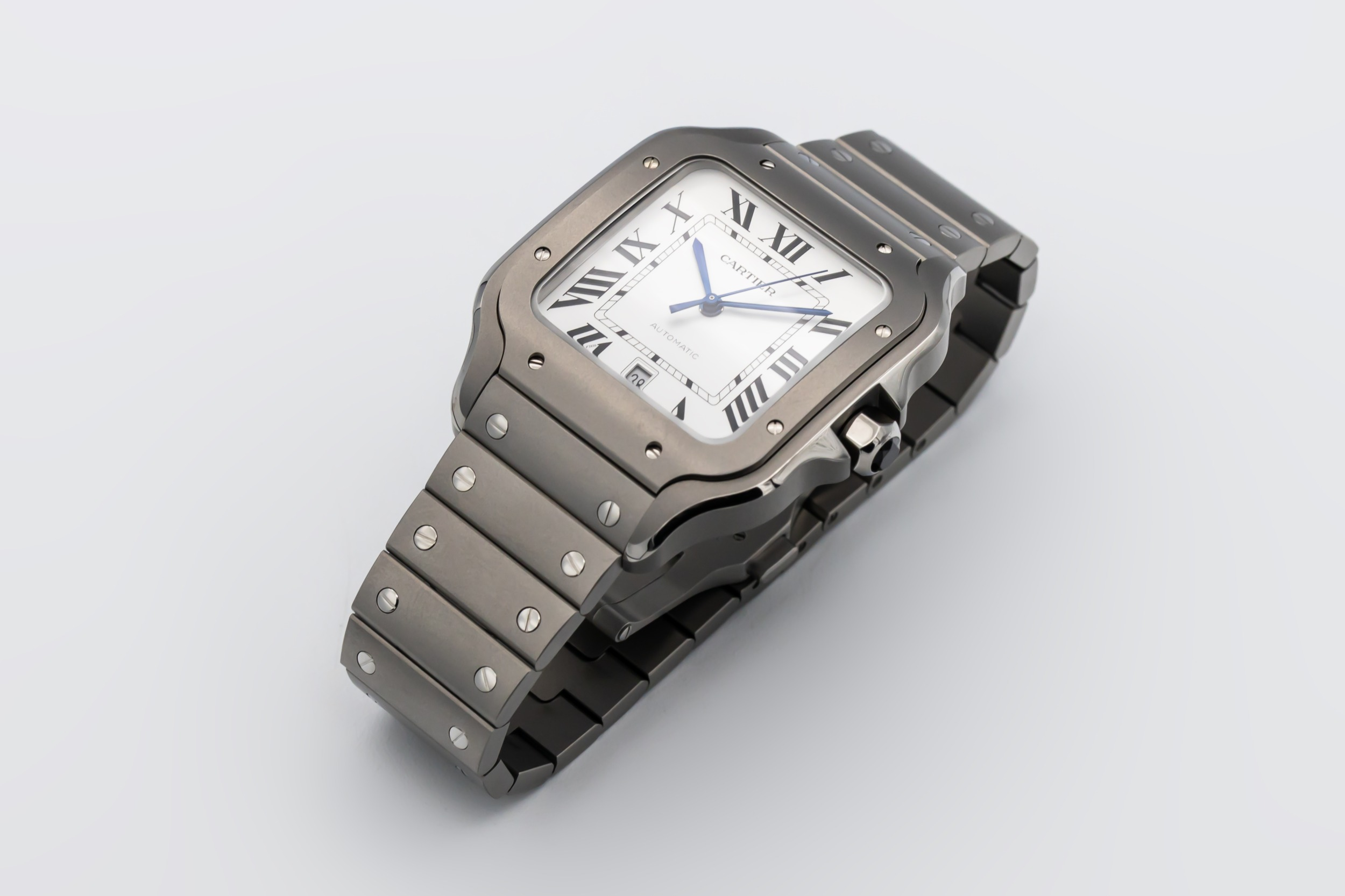 Originally created in 1904 for aviation pioneer Alberto Santos-Dumont, the Santos remains one of the most historically significant wristwatches in Cartier’s repertoire. Over a century later, the Santos de Cartier collection continues to evolve through material innovation and contemporary finishes while preserving the core design language that made it iconic: a square case with exposed screws and a bold yet elegant presence.
