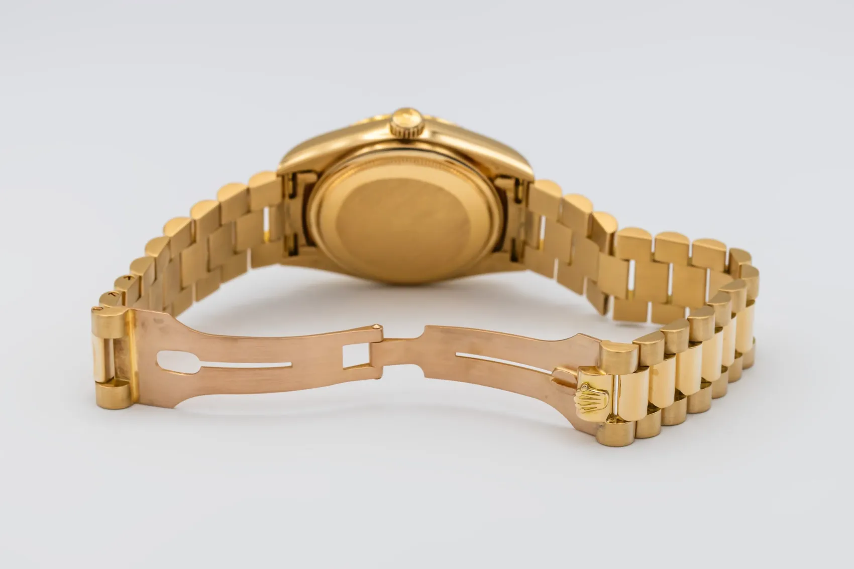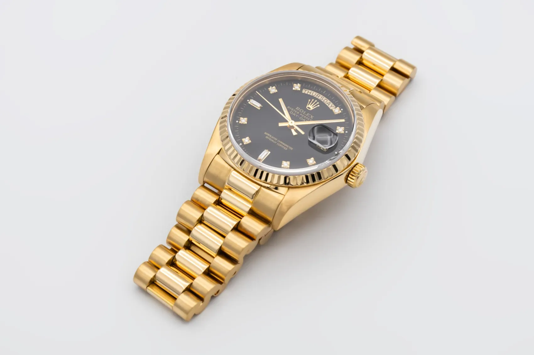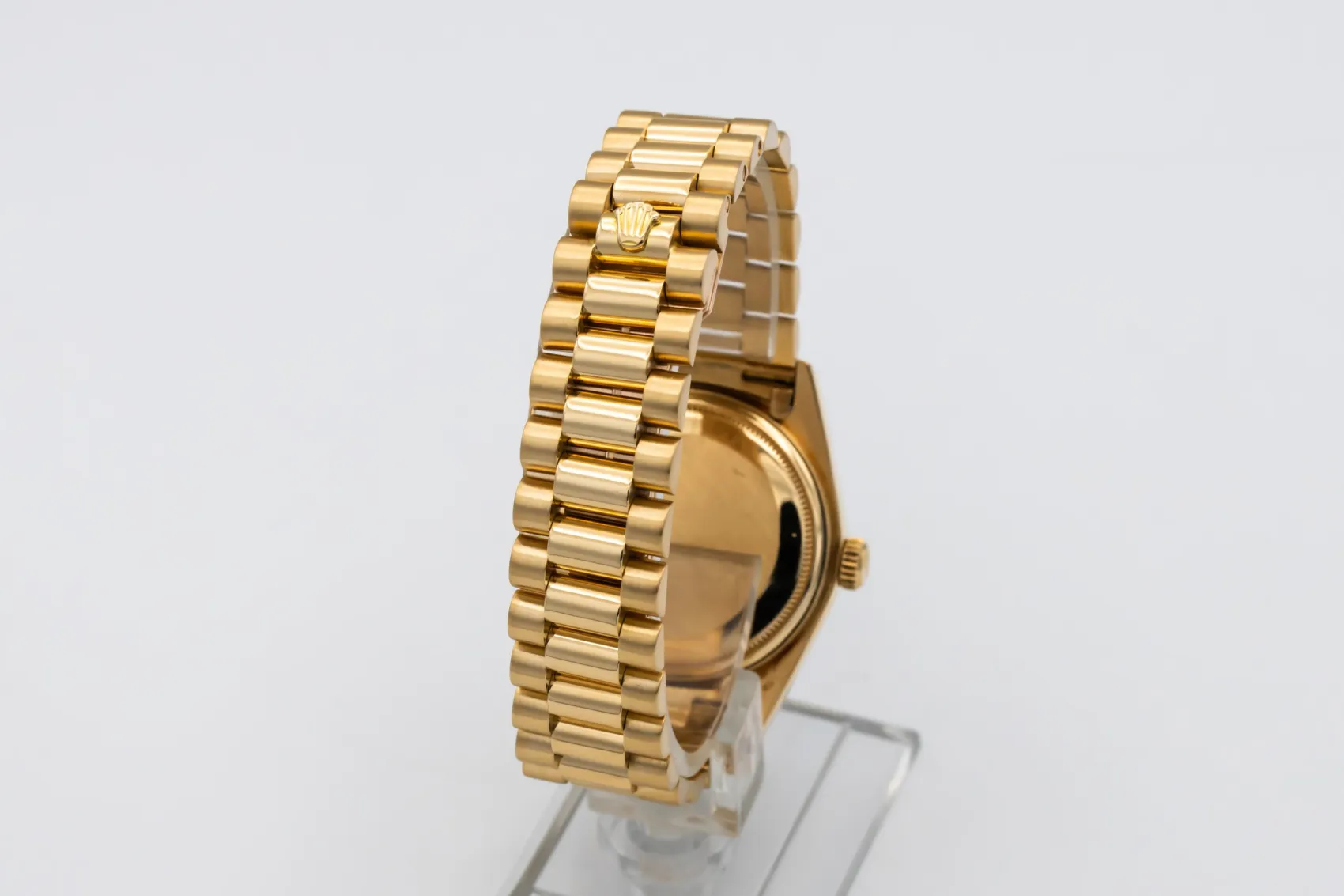 First introduced in 1956, the Day-Date was a landmark creation by Rolex, becoming the world’s first wristwatch to display both the day of the week spelled out in full and the date. Exclusively produced in precious metals, the Day-Date quickly earned the nickname “The President’s Watch,” worn by world leaders and influential figures.