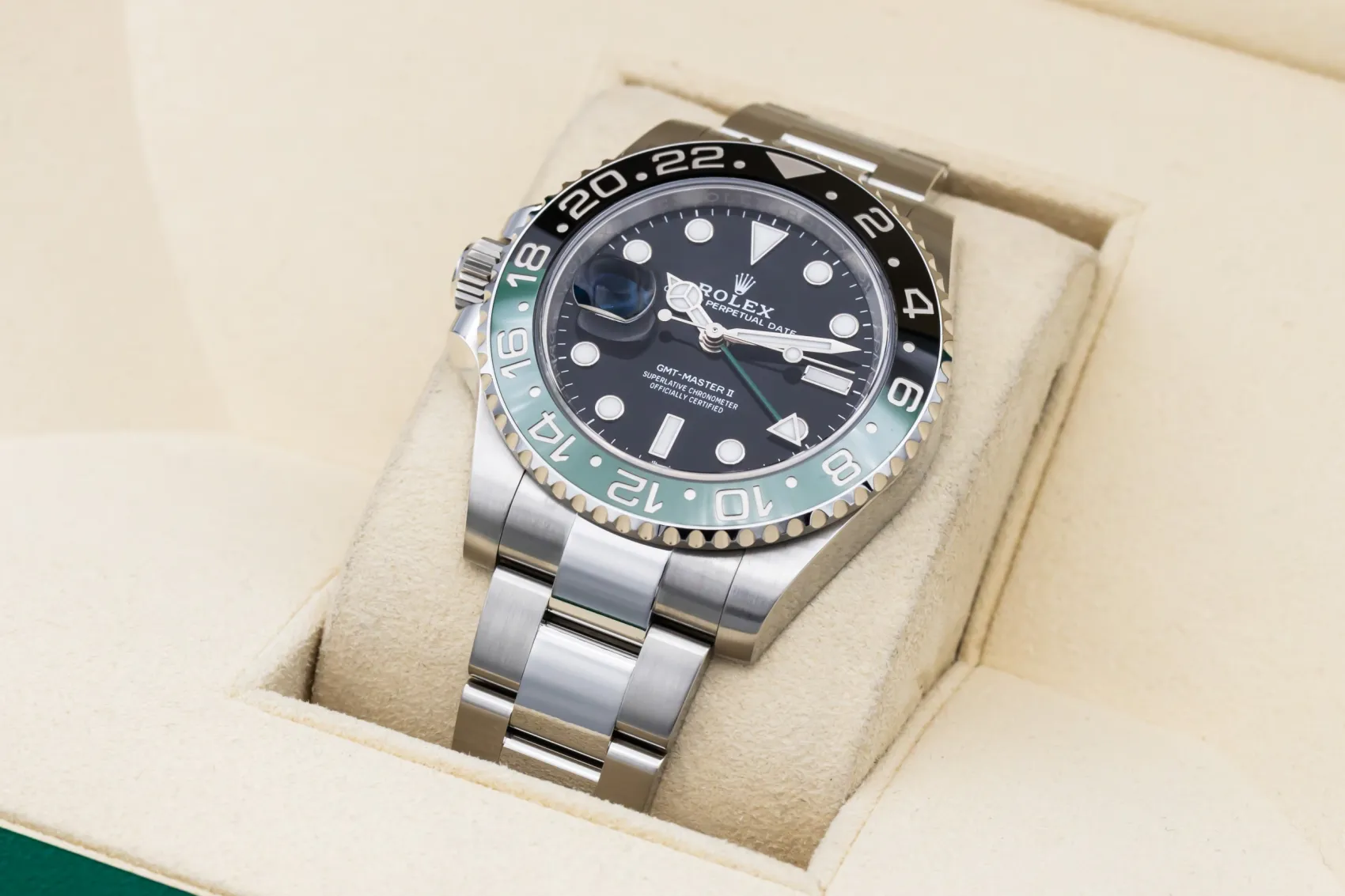 The GMT-Master II has evolved into one of the most recognisable and sought-after collections produced by Rolex. The ‘Sprite’ variant represents a modern evolution of the line, celebrated for its distinctive colourway and contemporary design, while continuing the GMT-Master II’s legacy as a trusted tool watch for global travellers.