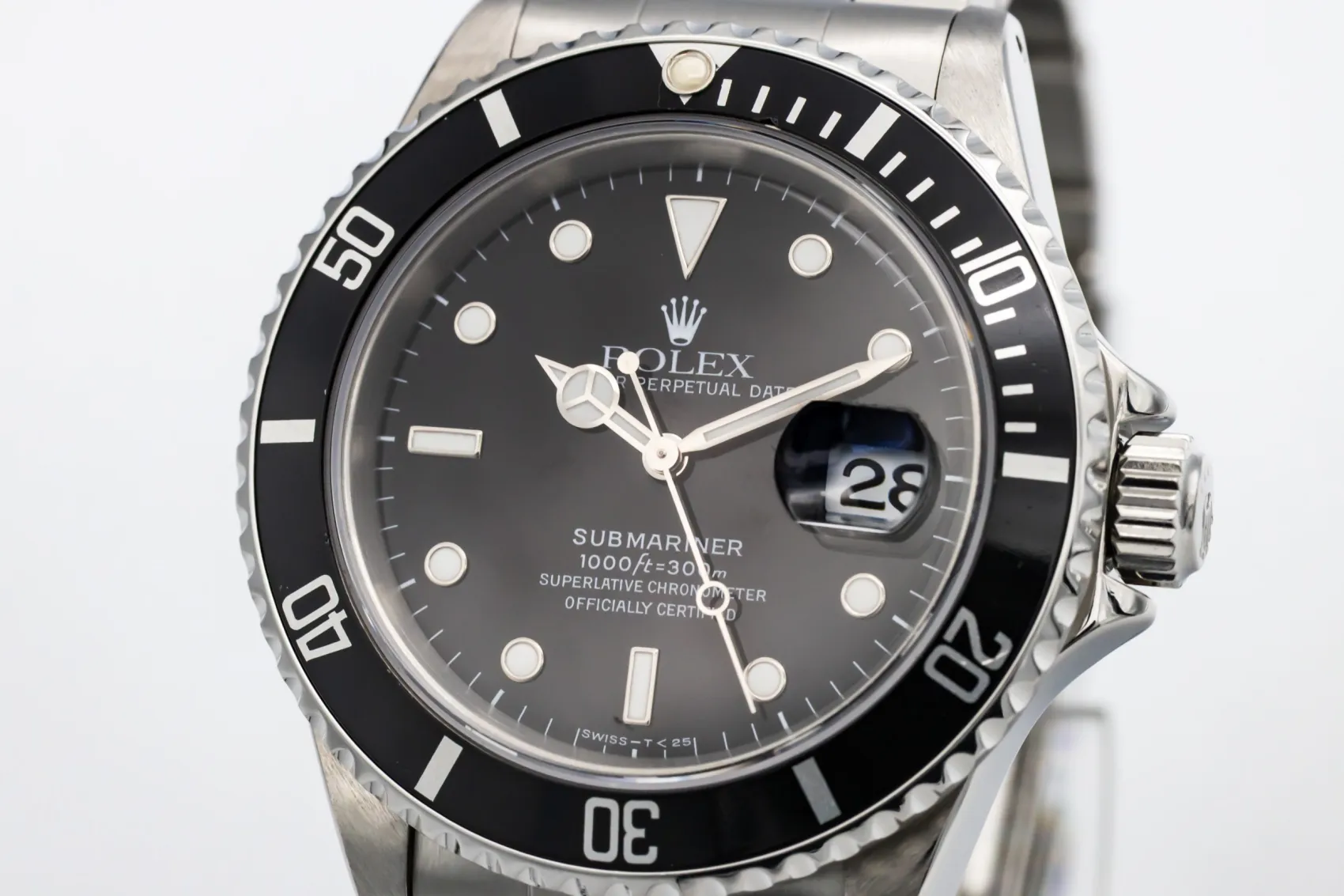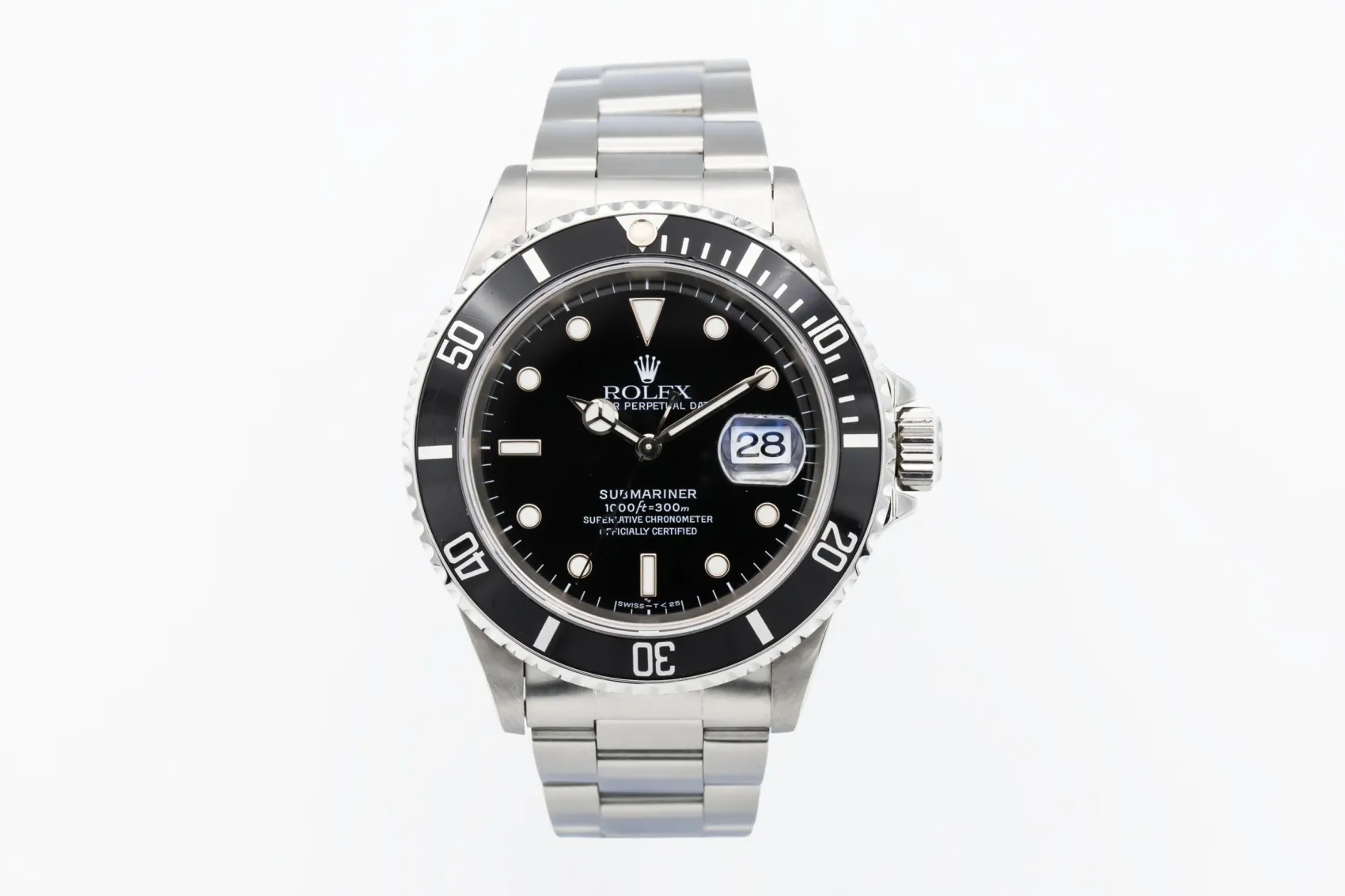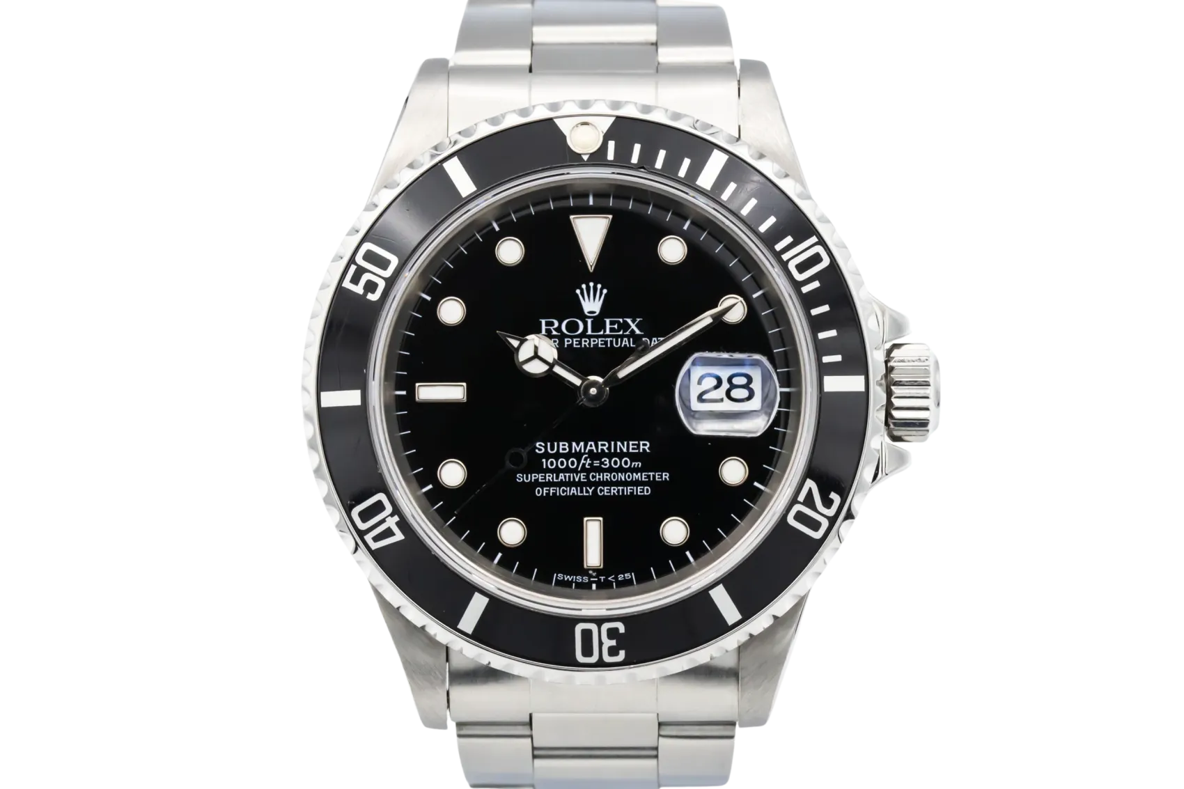 finance this from £117.22 p/m call the shop Read about our Limited Lifetime WarrantyThis 1997 Rolex Submariner Date 40mm is an iconic professional dive watch, The classic black dial features luminous hour markers and Mercedes-style hands, paired with a black aluminium bezel insert for excellent legibility. Finished on a stainless steel Oyster bracelet with a secure folding clasp.