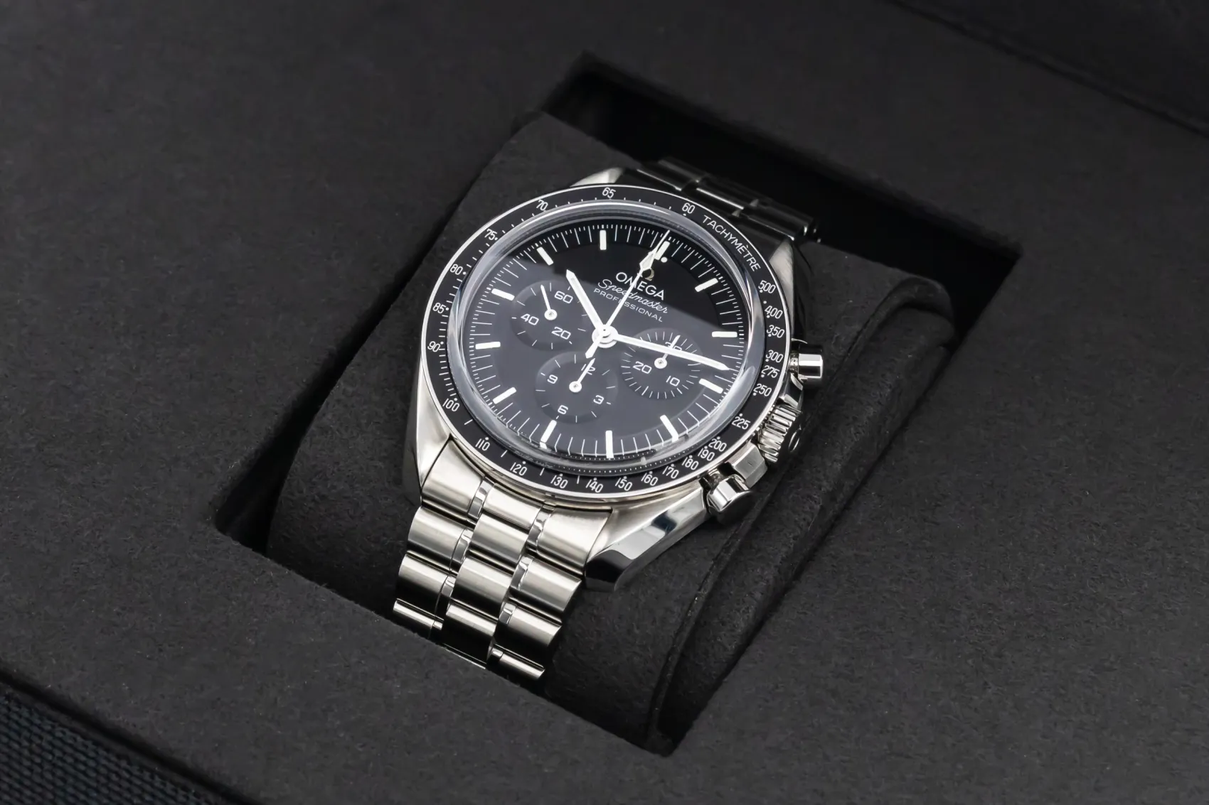 The Speedmaster became one of the most celebrated watches ever produced by OMEGA after being selected by NASA for space missions in the 1960s. Famously worn during the Apollo 11 moon landing in 1969, it earned the nickname “Moonwatch.” The modern Sapphire Sandwich version preserves the legendary design while showcasing the movement through a display back.