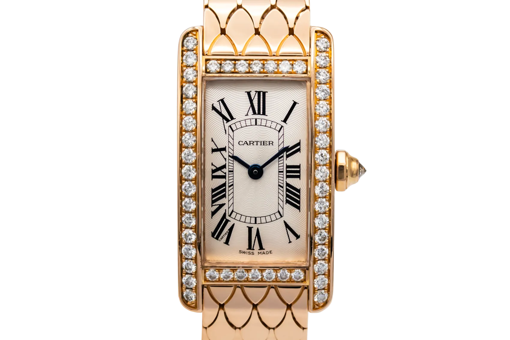 The Tank Américaine later reinterpreted the classic design with a more elongated, curved case, enhancing comfort and elegance on the wrist. Diamond-set variations elevate the model into the realm of high jewellery, making them especially sought after among collectors who appreciate timeless design paired with precious metal craftsmanship.