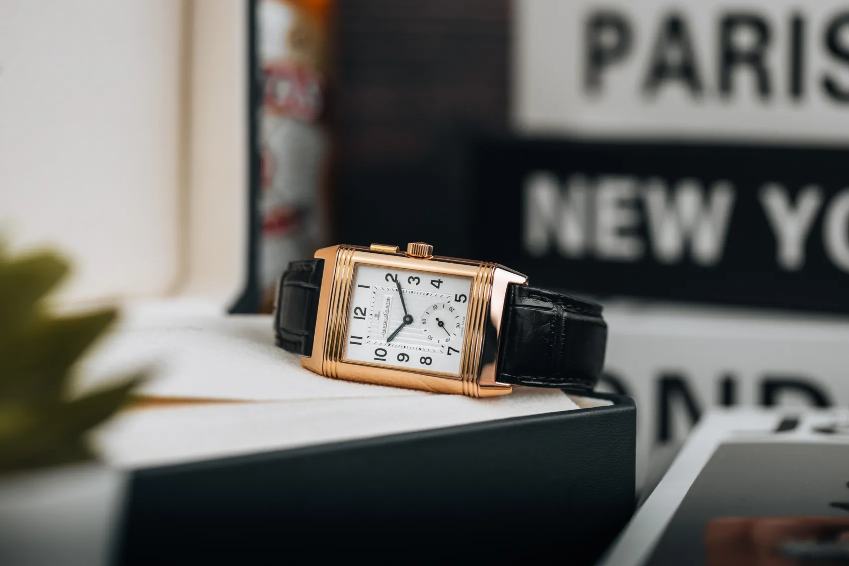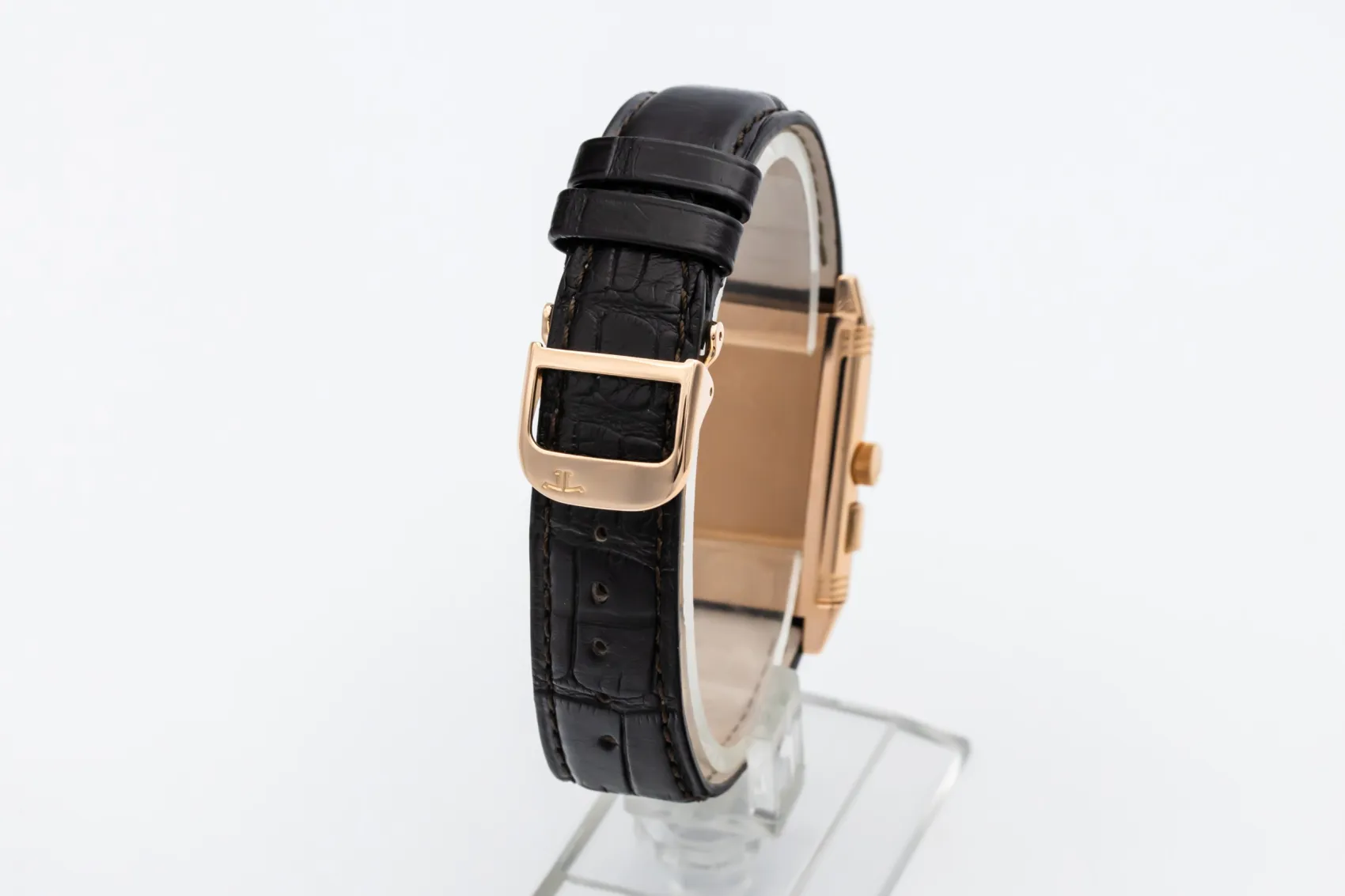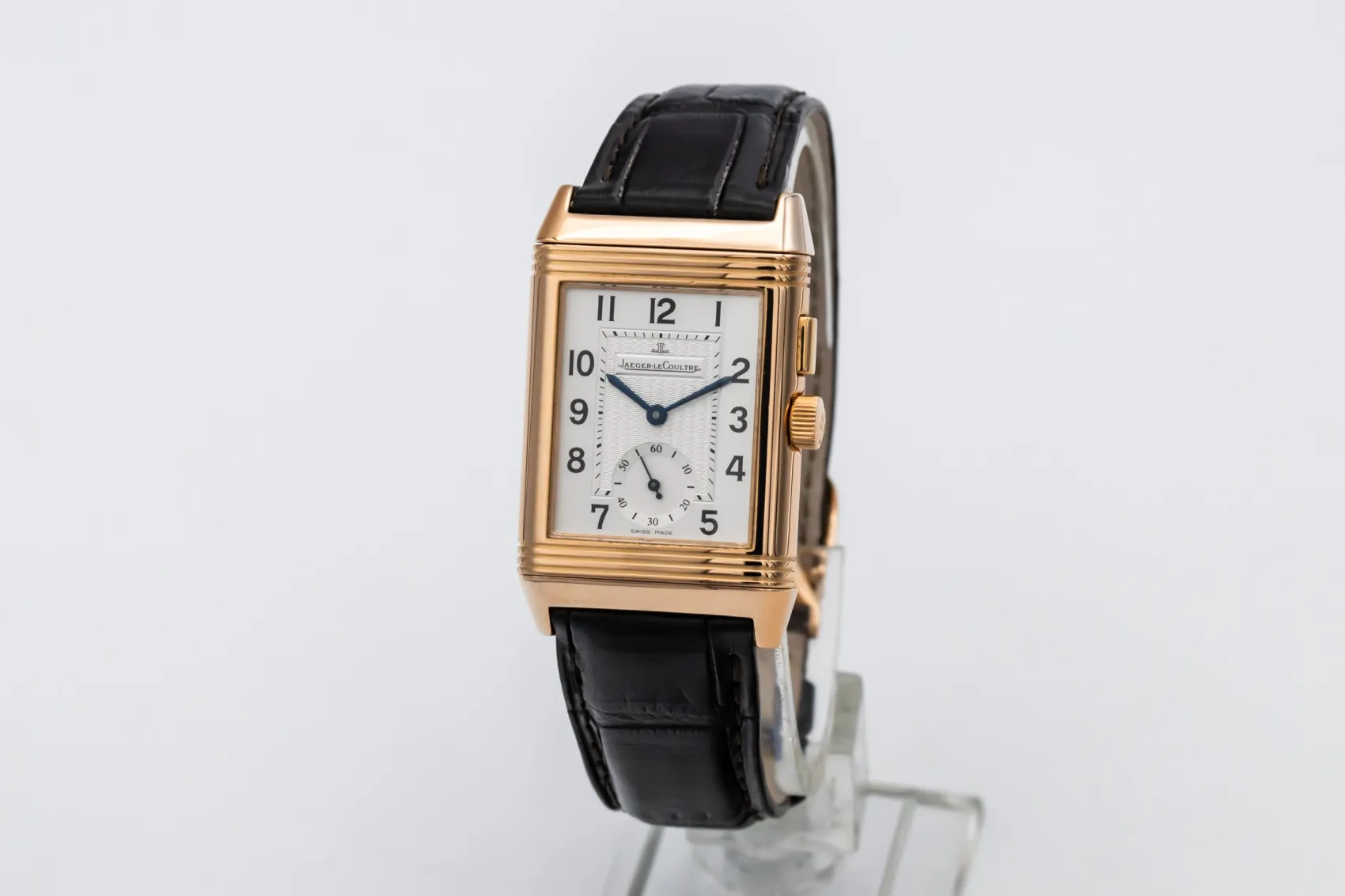 finance this from £211.03 p/m call the shop Read about our Limited Lifetime WarrantyThis 2005 Jaeger-LeCoultre Reverso Duoface 26mm is a refined and versatile luxury timepiece crafted in 18ct Rose Gold. The iconic rectangular reversible case reveals two distinct dials, offering dual time functionality in a slim and elegant profile. Finished on a classic black leather strap with a 18ct rose gold deployant clasp.