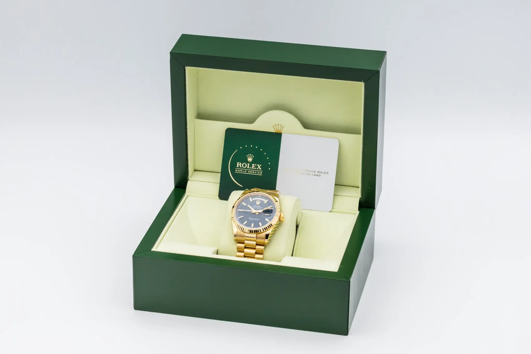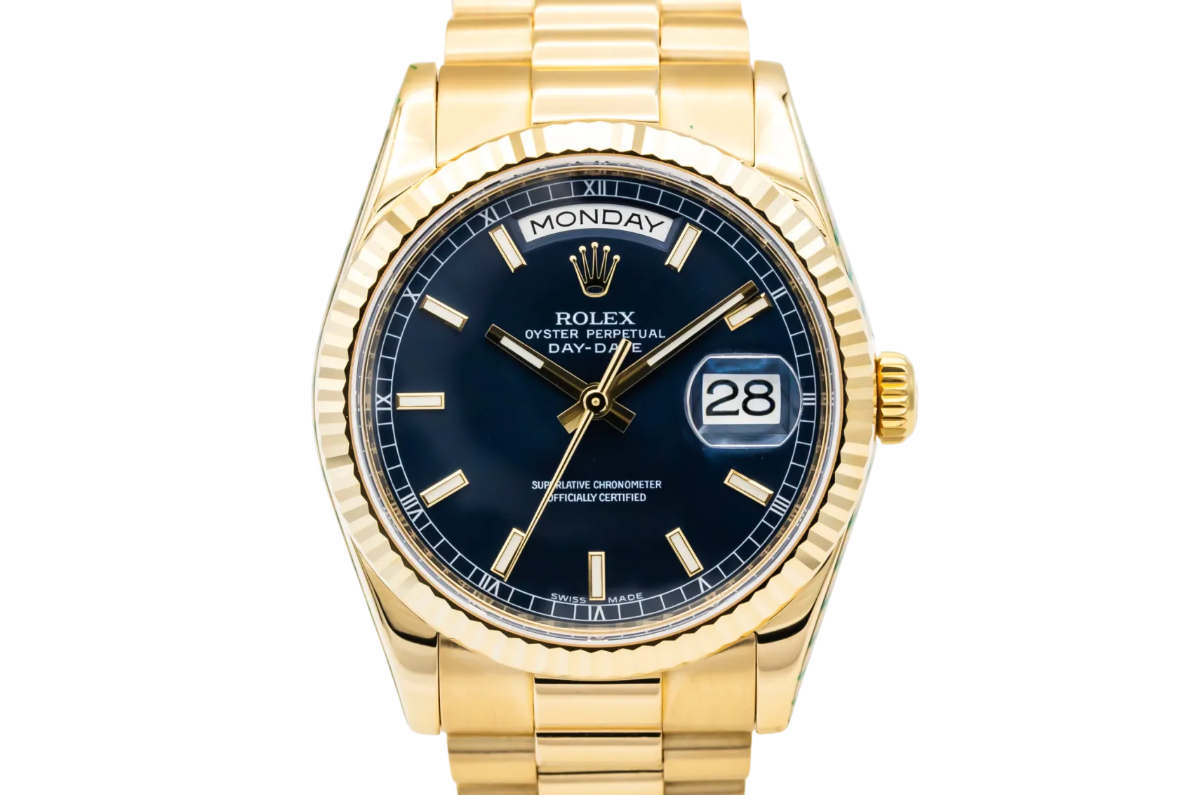 First introduced in 1956, the Day-Date was a groundbreaking creation by Rolex, becoming the world’s first wristwatch to display both the day of the week spelled out in full and the date. Exclusively produced in precious metals, the Day-Date quickly earned the nickname “The President’s Watch,” worn by world leaders and influential figures.