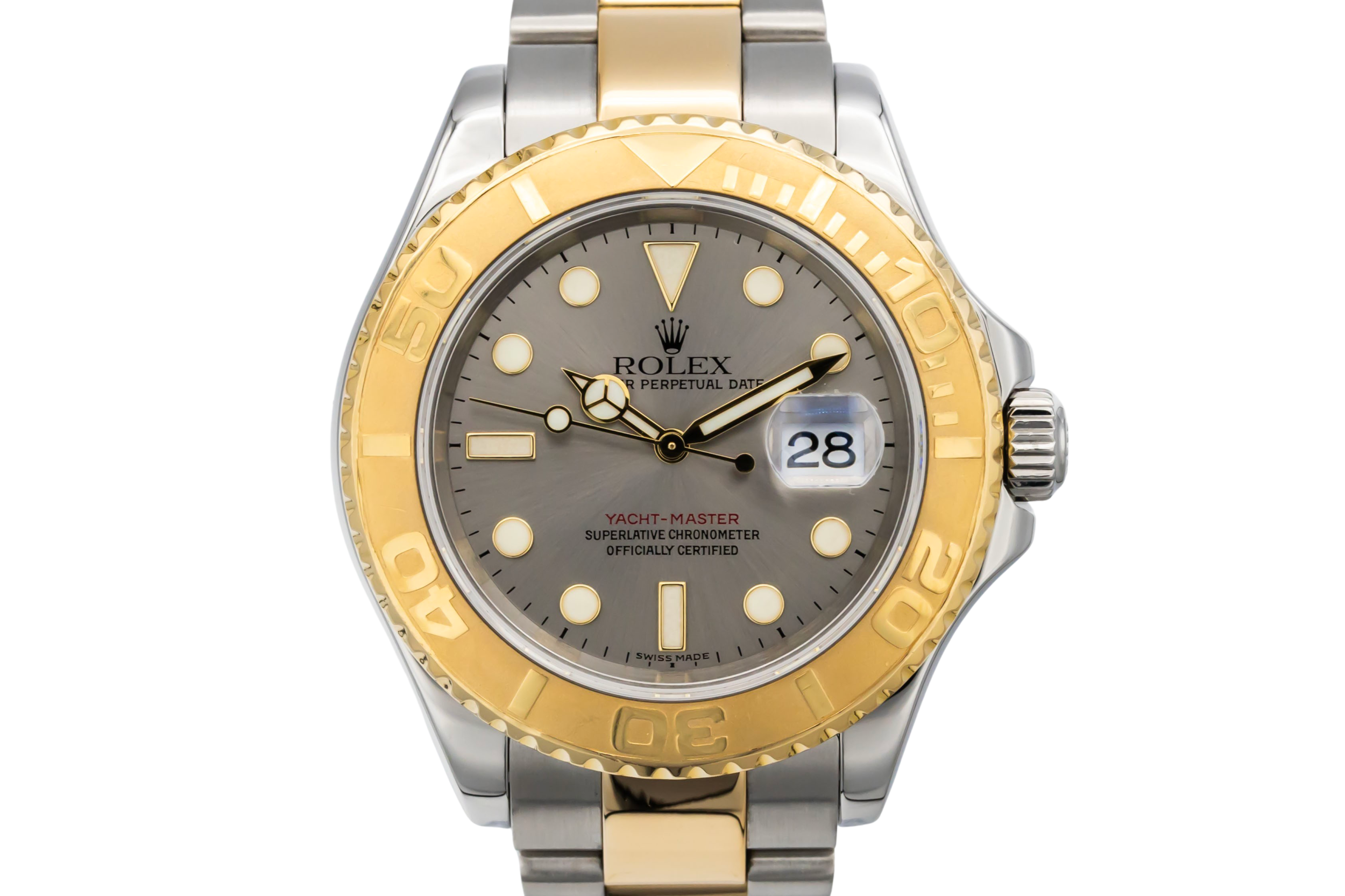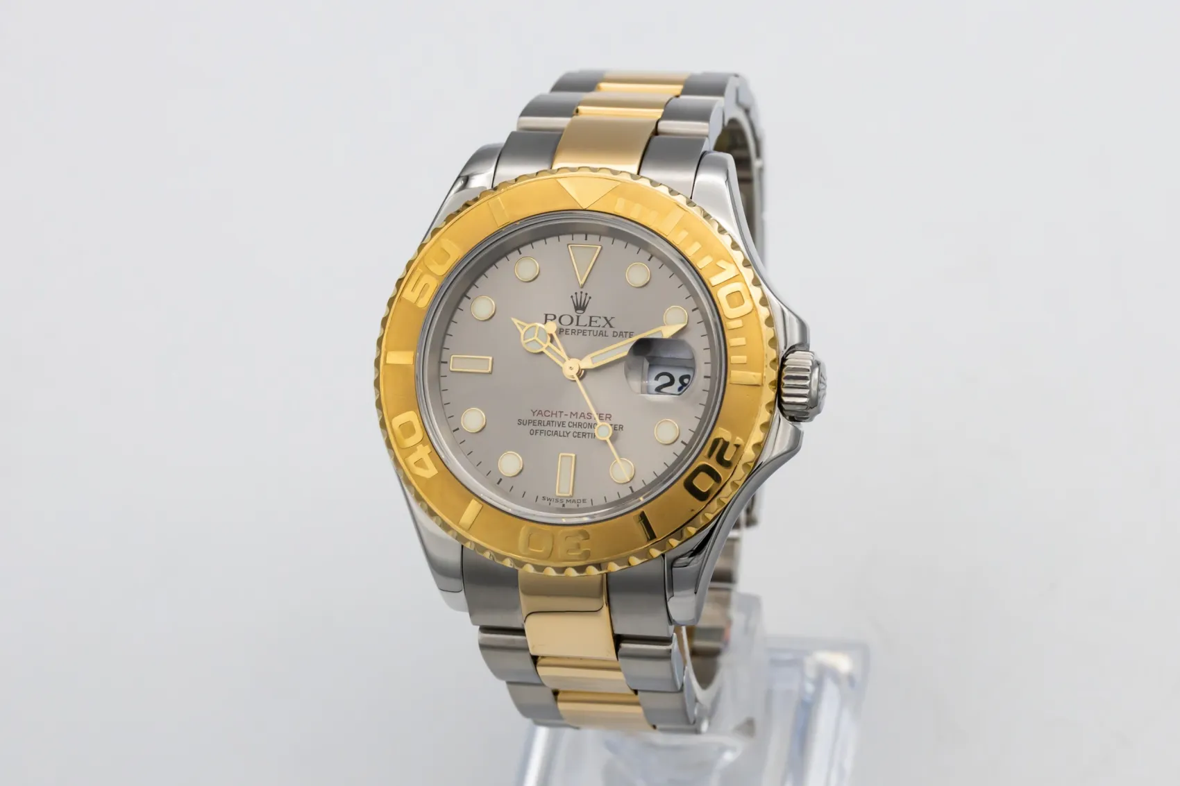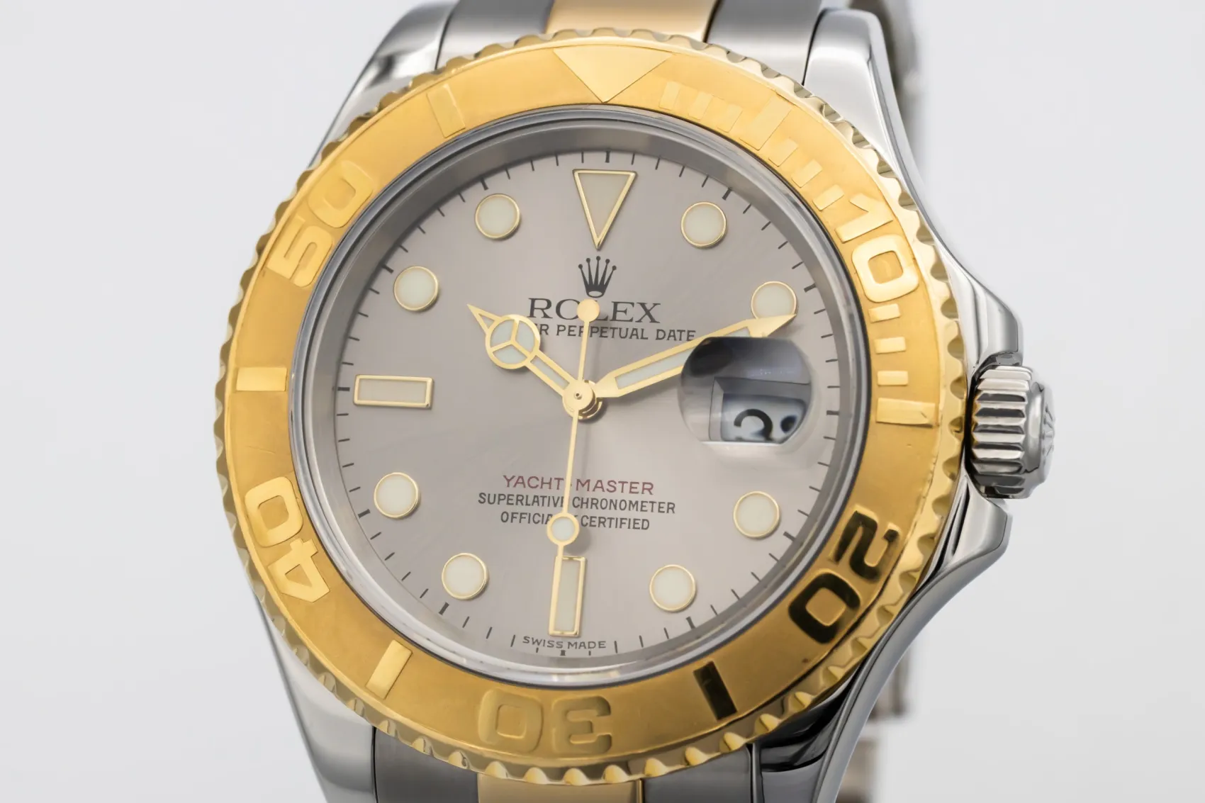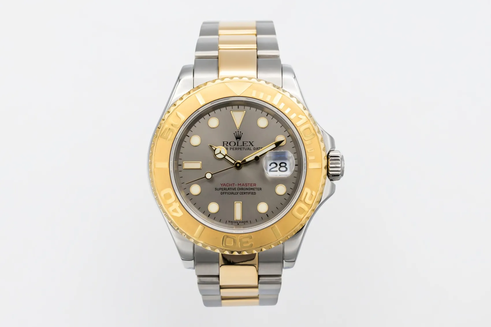 finance this from £200.98 p/m call the shop Read about our Limited Lifetime WarrantyThis 2006 Rolex Yacht-Master 40mm is a refined luxury sports watch crafted in stainless steel and 18ct yellow gold. The classic grey dial is paired with luminous hour markers and hands for excellent legibility, framed by the distinctive bidirectional yellow gold bezel with raised polished numerals. Finished on a steel and yellow gold Oyster bracelet with a secure Oysterlock clasp.