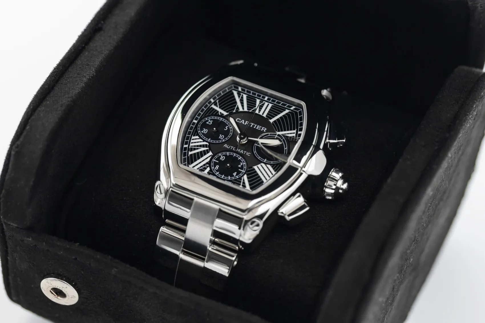 The Roadster collection was introduced in the early 2000s by Cartier as a modern interpretation of the maison’s design language, inspired by classic vintage sports cars. Characterised by its curved case, integrated bracelet, and distinctive date magnifier, the Roadster stood apart from Cartier’s traditional dress watches.