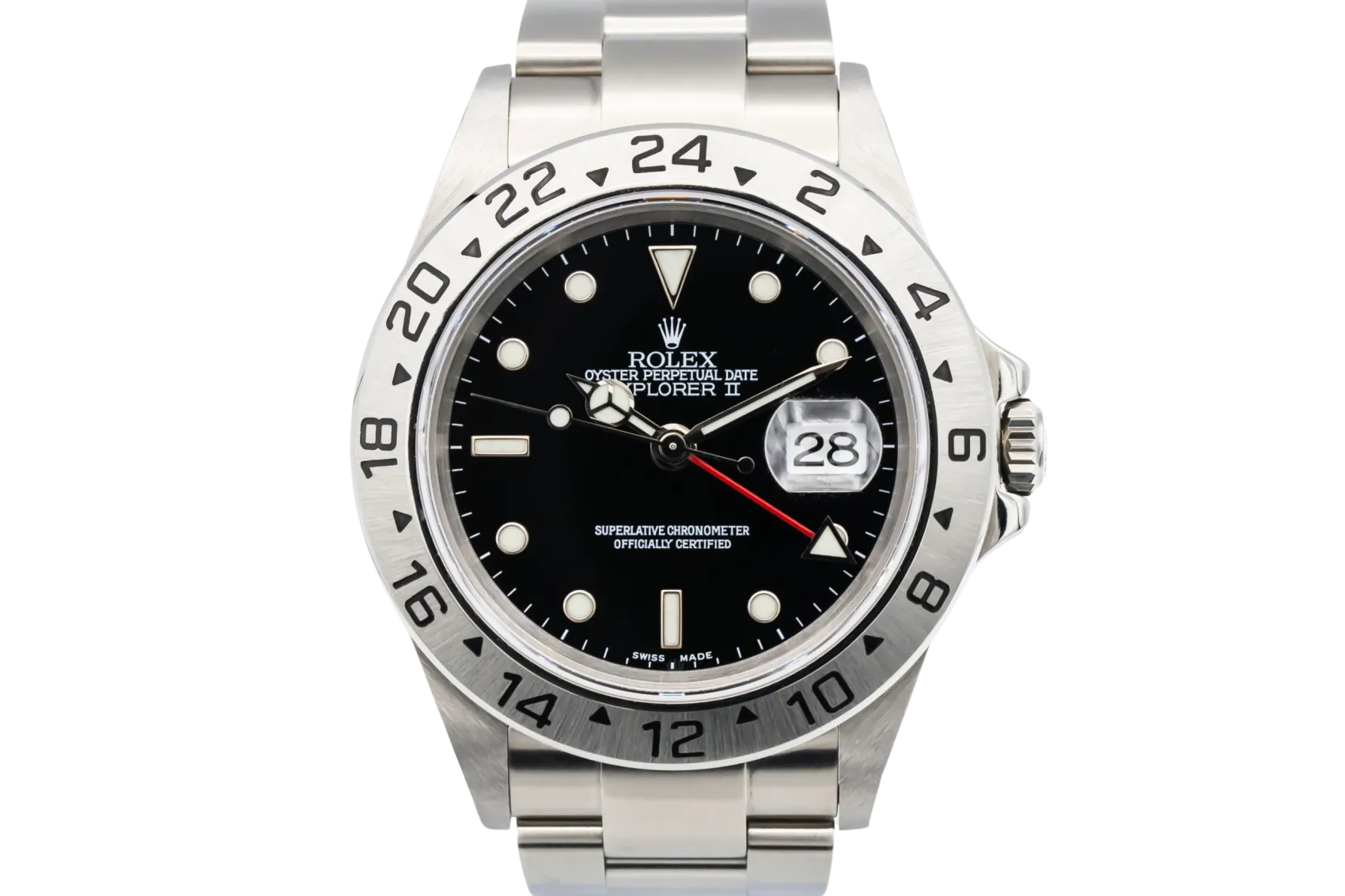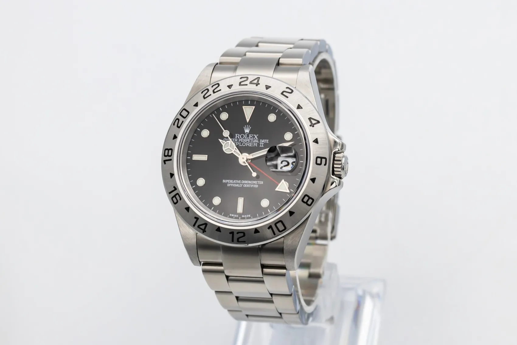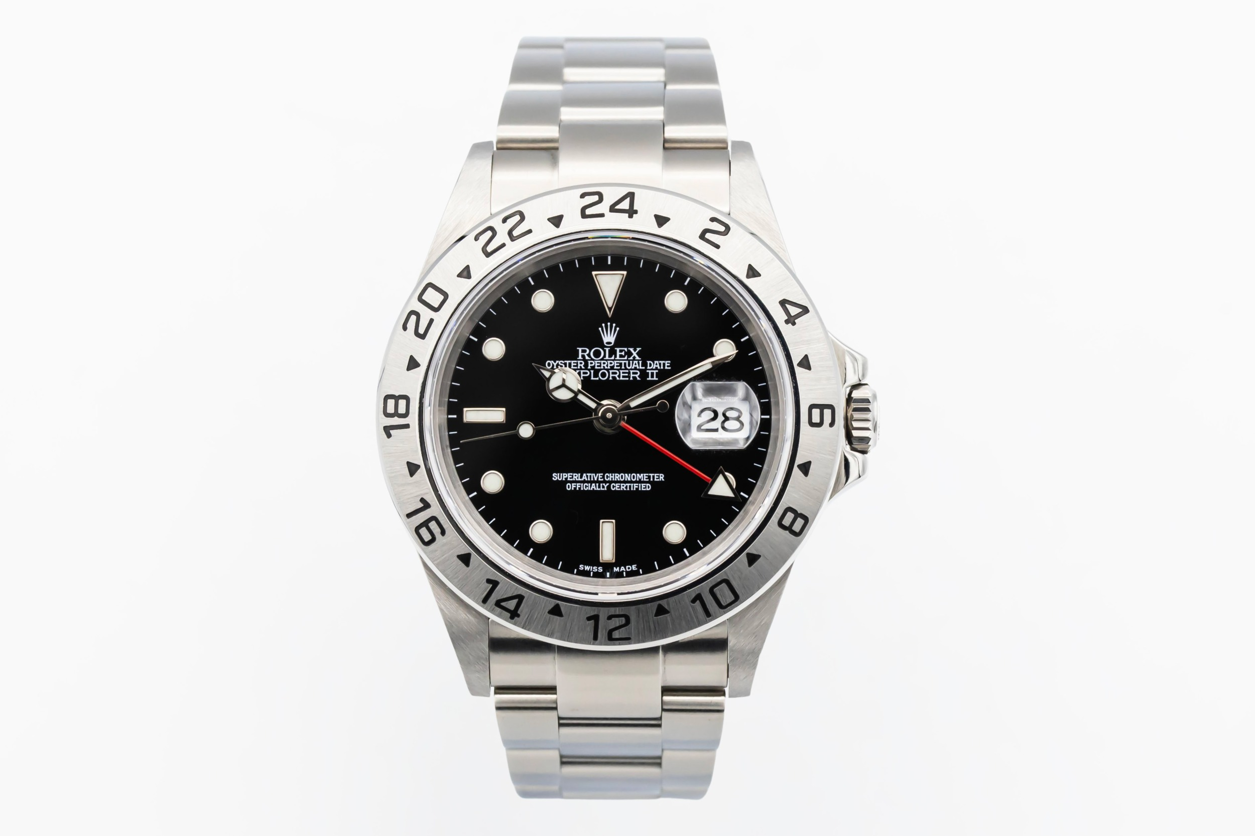 First introduced in 1971, the Explorer II was developed for speleologists, polar explorers, and adventurers operating in environments where day and night are difficult to distinguish. Produced by Rolex, the Explorer II built upon the success of the original Explorer with the addition of a fixed 24-hour bezel and GMT-style hand.