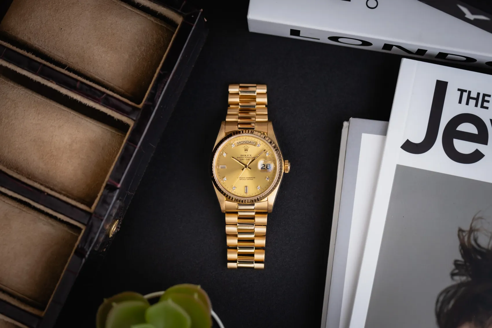 Exclusively produced in precious metals, the Day-Date quickly earned the nickname “The President’s Watch,” worn by world leaders and cultural icons. The reference 18038 represents a defining vintage era of the collection, admired for its classic proportions, quickset date function, and enduring collectability.