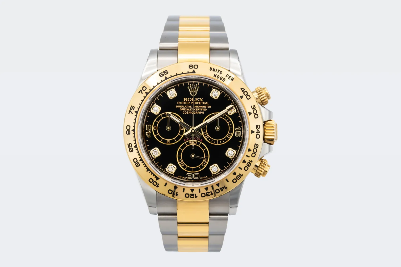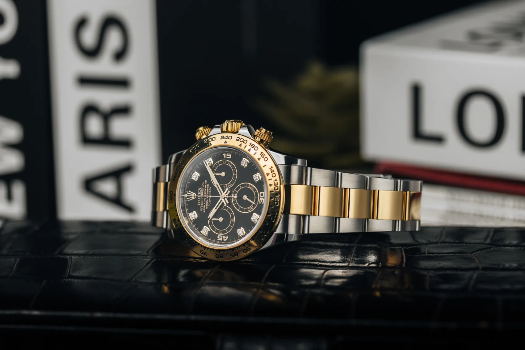The two-tone Daytona blends motorsport heritage with precious-metal refinement, while diamond dial variants add an extra layer of exclusivity for collectors seeking standout appeal within the Daytona lineage.