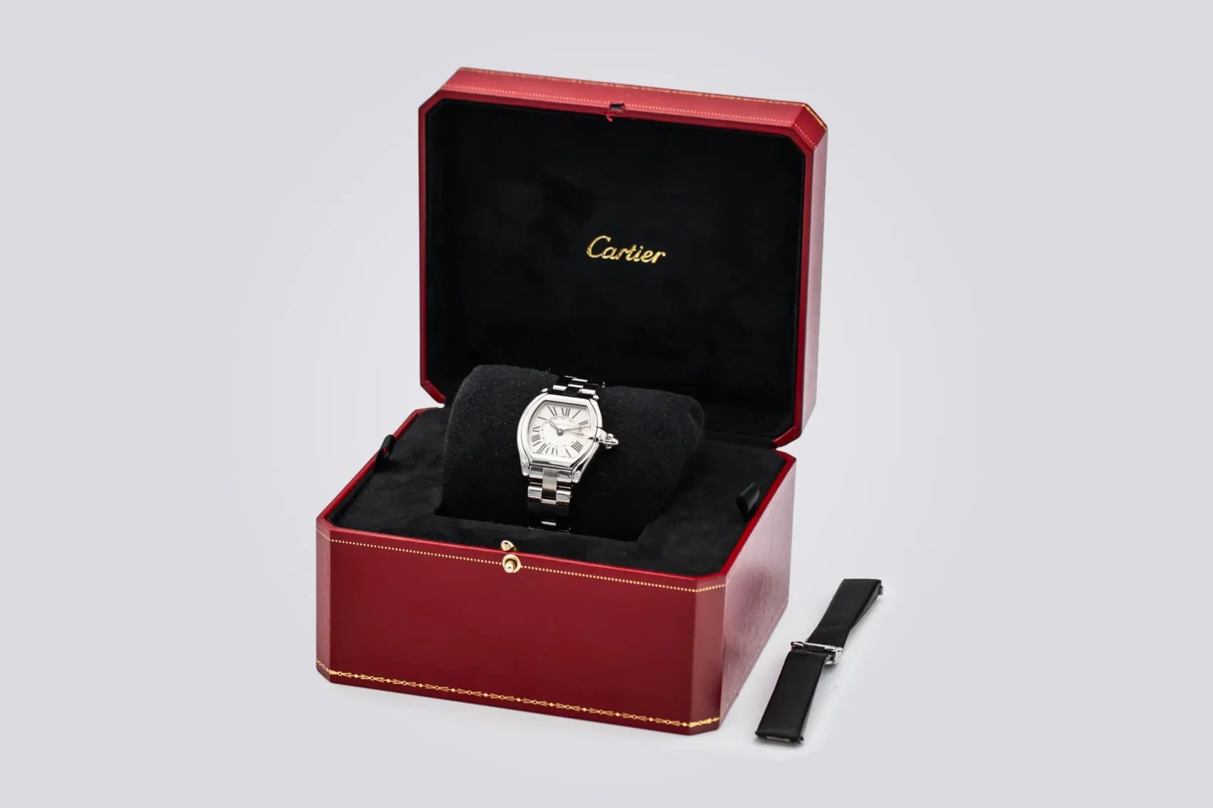 The Roadster collection was introduced in the early 2000s by Cartier as a modern interpretation of the maison’s design language, inspired by classic vintage sports cars. Characterised by its curved case, magnified date window, and integrated bracelet, the Roadster stood apart from traditional Cartier dress watches.