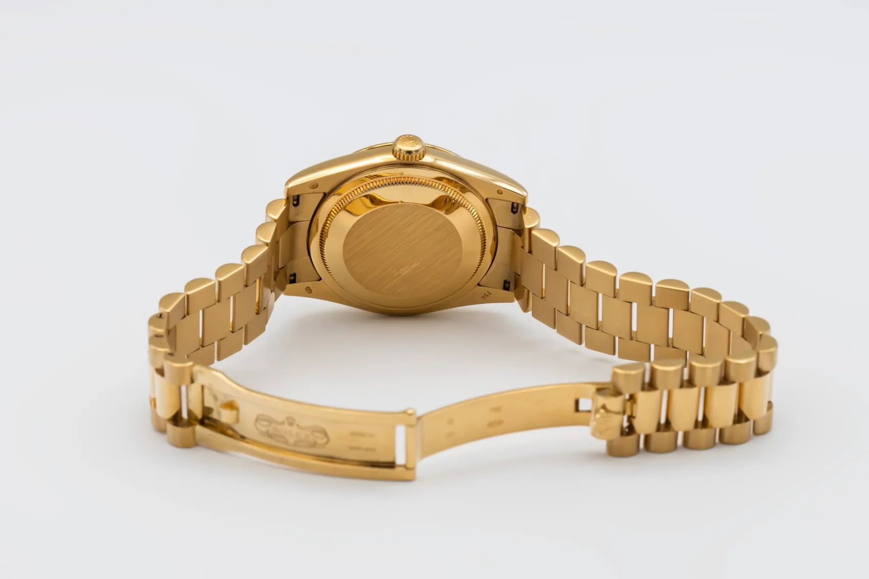 Produced exclusively in precious metals, the model quickly earned the nickname “The President’s Watch,” worn by world leaders and influential figures. The reference 118238 represents a modern-era interpretation of the Day-Date, combining classic proportions with updated movement technology and enduring collectability.