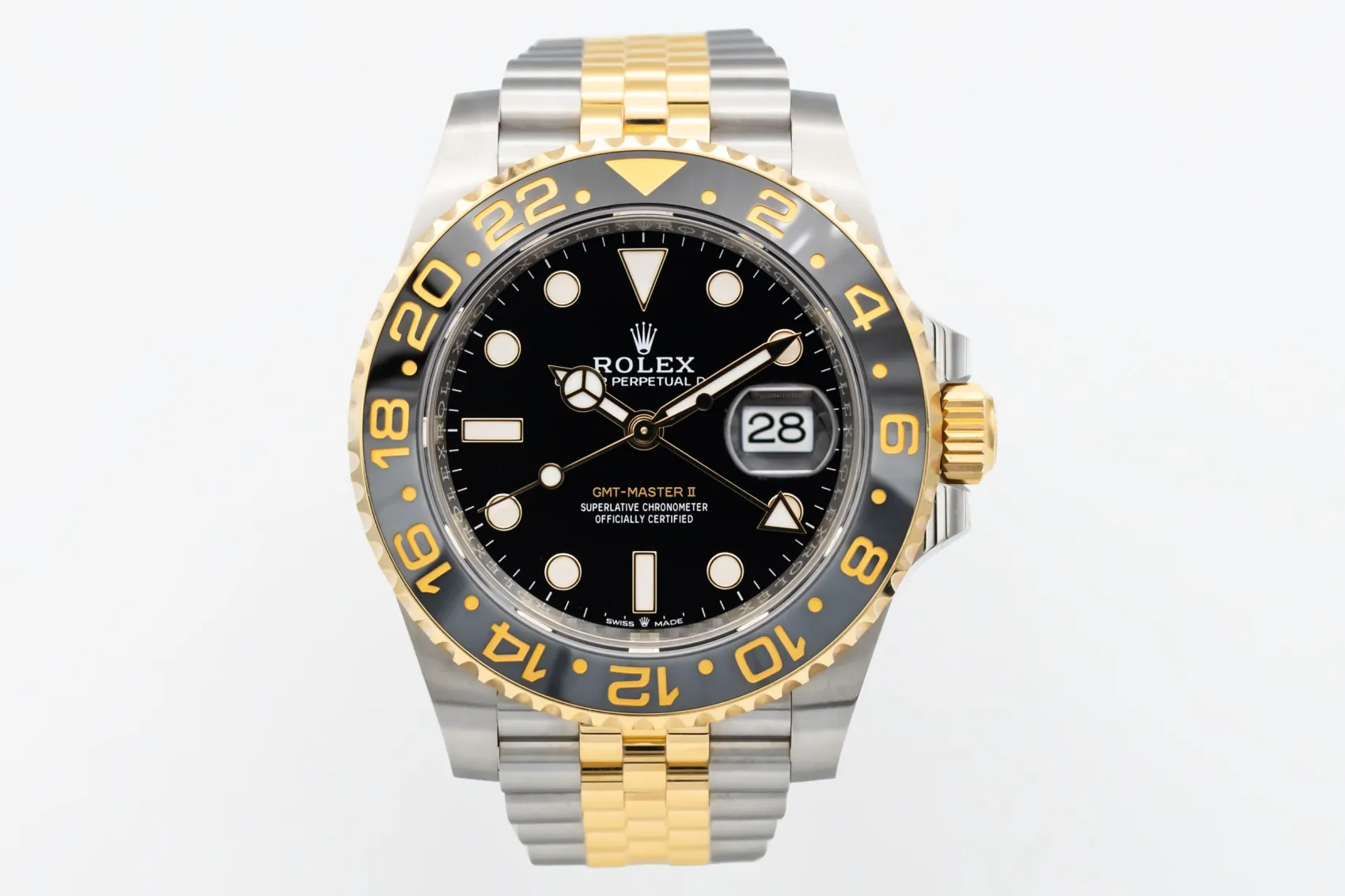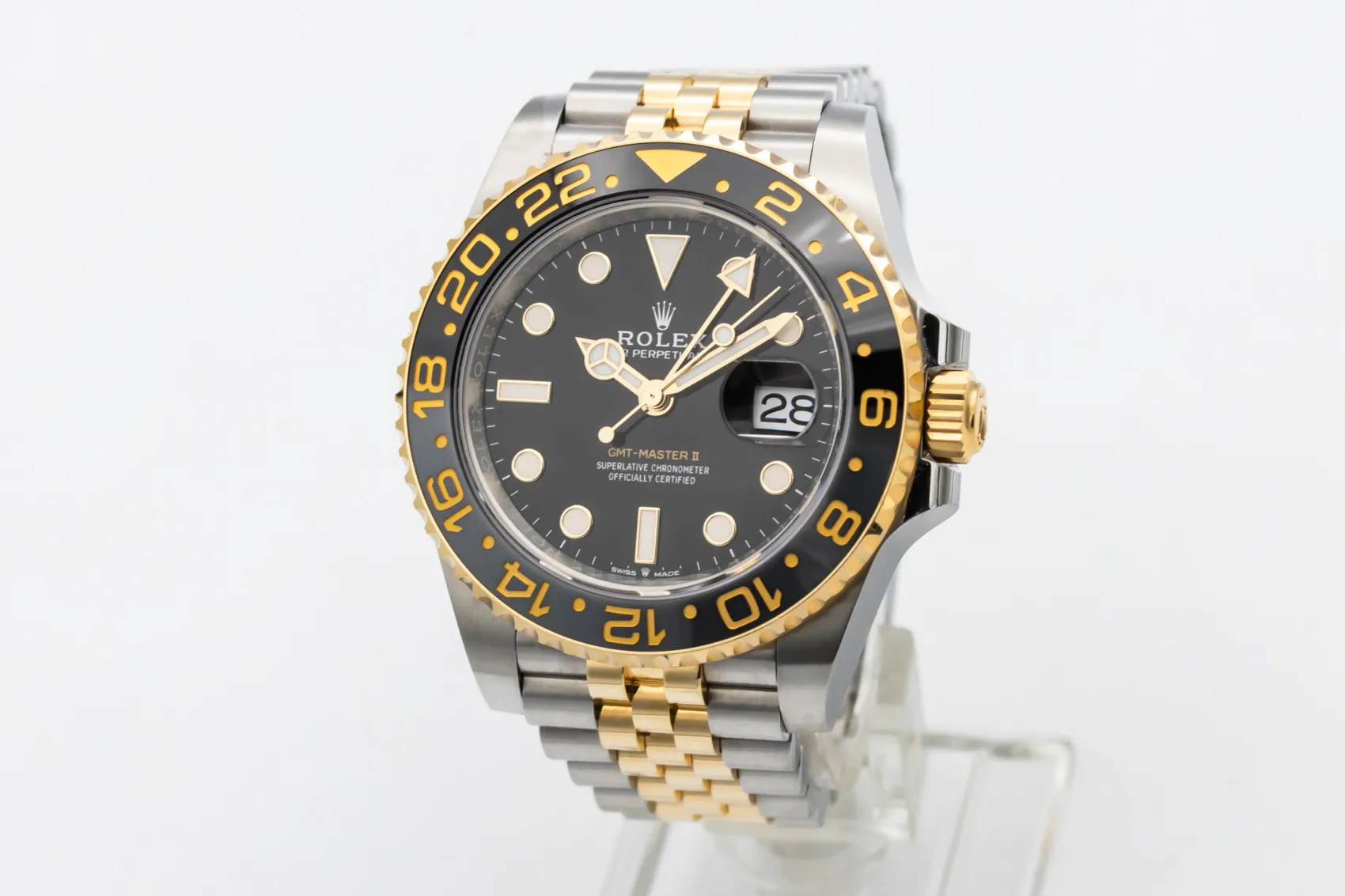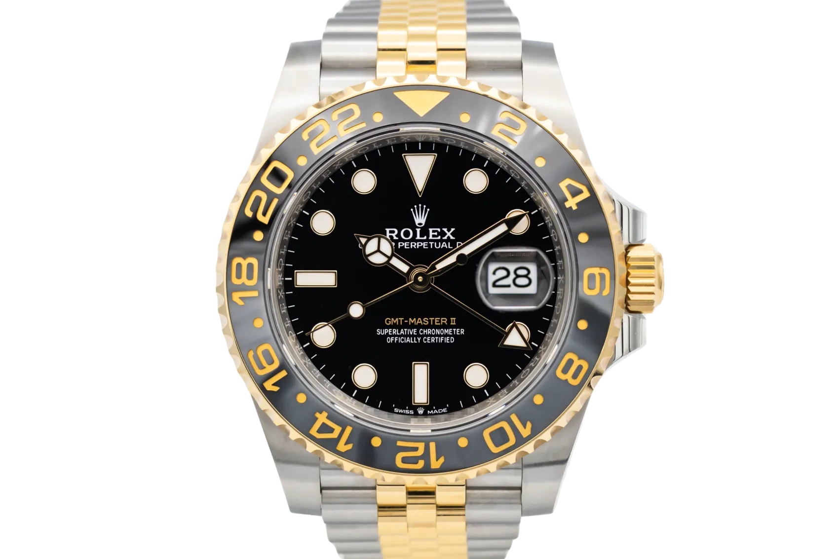 finance this from £351.79 p/m call the shop Read about our Limited Lifetime WarrantyThis 2025 Rolex GMT-Master II “Zombie” is a striking luxury travel watch crafted in stainless steel and 18ct yellow gold. The black and grey Cerachrom bezel creates the distinctive “Zombie” aesthetic, paired with a black dial featuring luminous hour markers, Mercedes hands, and the signature GMT hand for tracking a second time zone. Finished on the steel and yellow gold Jubilee bracelet.