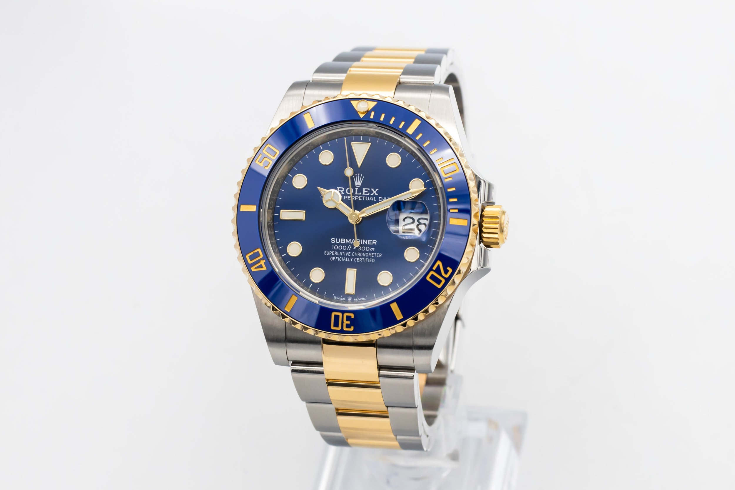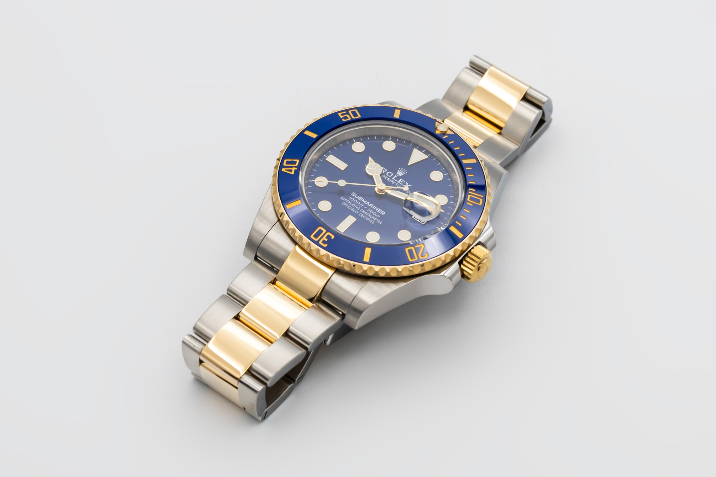 The Submariner, introduced in 1953, is one of Rolex’s most iconic dive watches. The reference 126613LB continues this legacy with updated proportions, improved movement and the classic blue and gold “Bluesy” configuration.