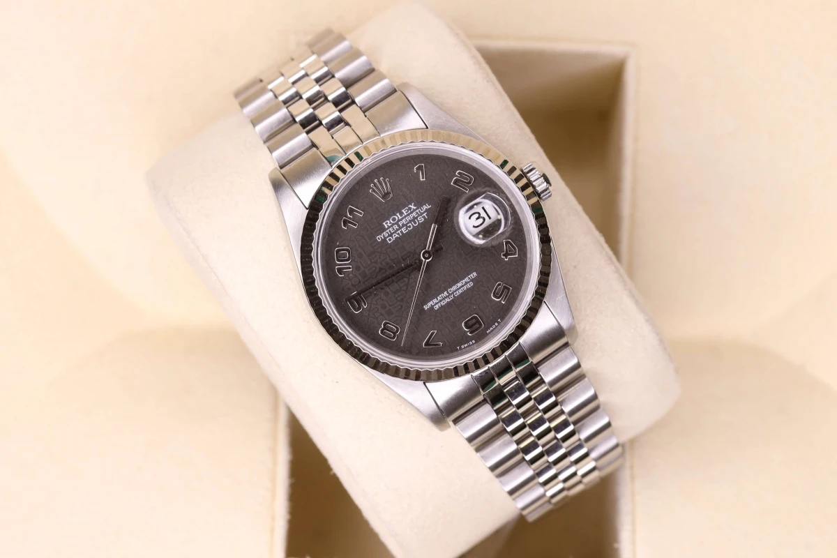 Stainless steel 36mm Rolex Datejust set with black Jubilee numeral dial