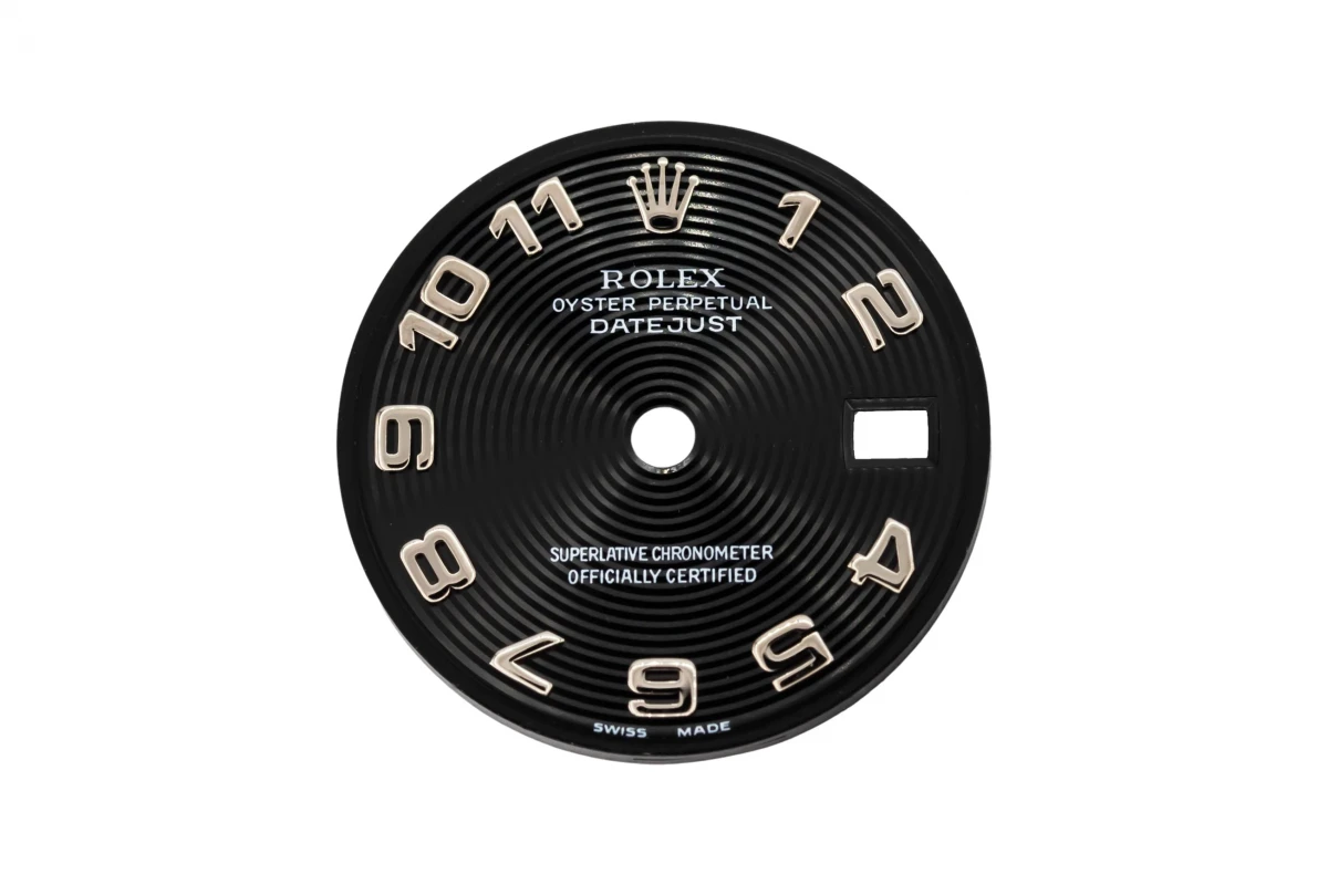 A black 'Concentric' dial with arabic numerals, For a Rolex DateJust 36mm.For models - 116234 and 116200Dial and bezel fitting available in house.