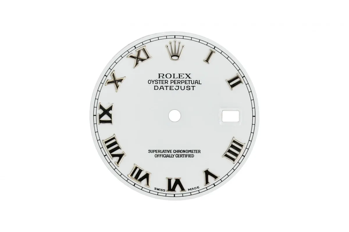 A white dial with white gold roman numeral markers, For a Rolex DateJust 36mm.