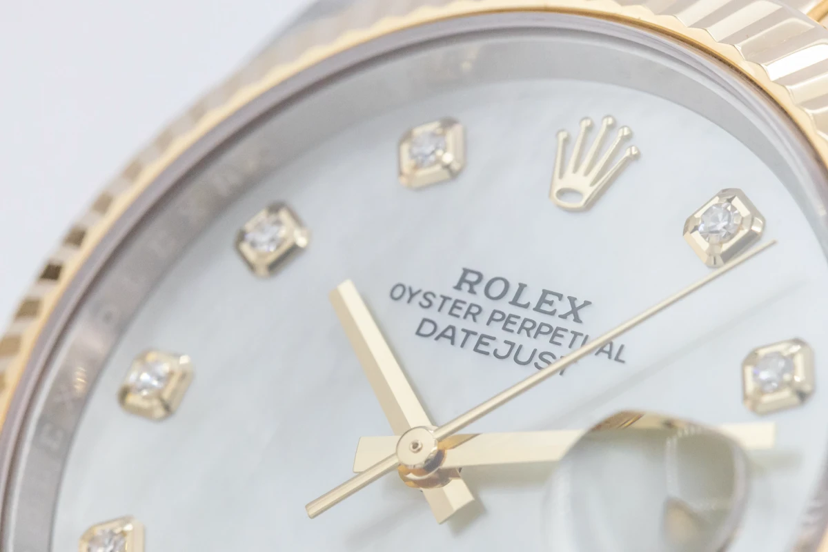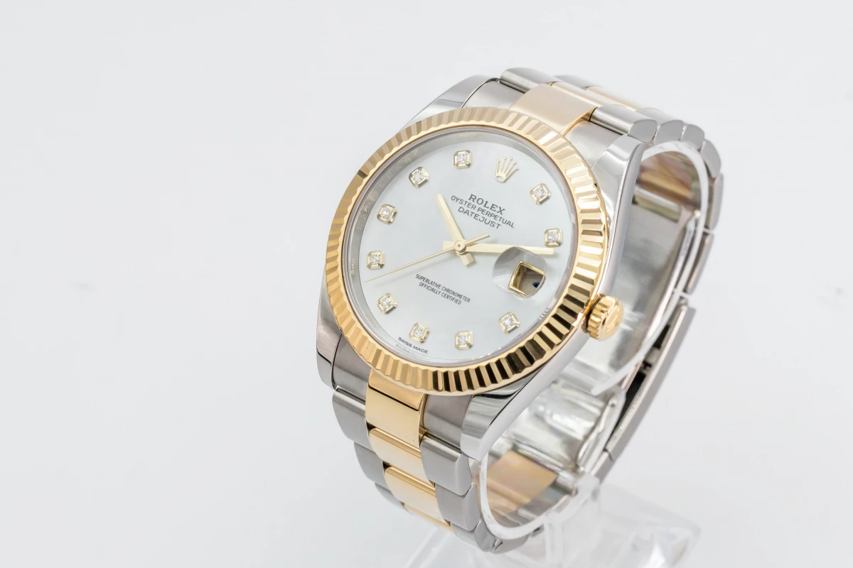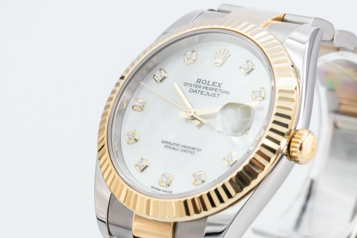 This Rolex DateJust Features A 41mm Mother Of Pearl Diamond Dial, A Stainless Steel And 18ct Yellow Gold Jubilee Bracelet And A 18ct Yellow Gold Fluted Bezel.