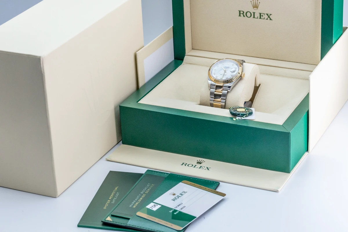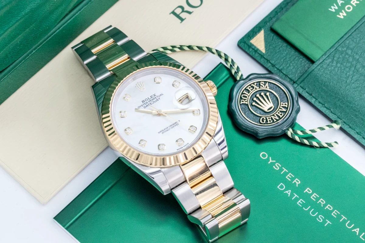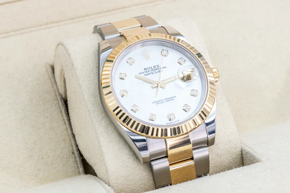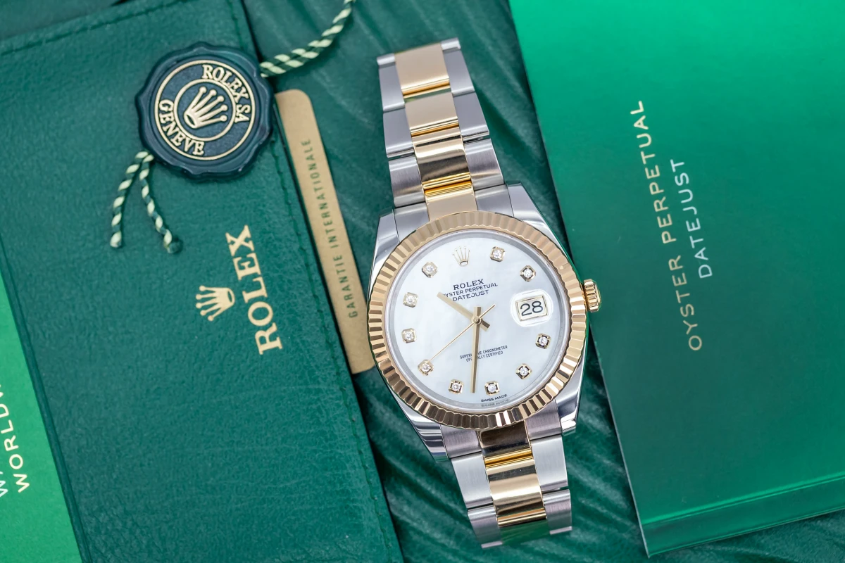 This Rolex DateJust Features A 41mm Mother Of Pearl Diamond Dial, A Stainless Steel And 18ct Yellow Gold Jubilee Bracelet And A 18ct Yellow Gold Fluted Bezel.