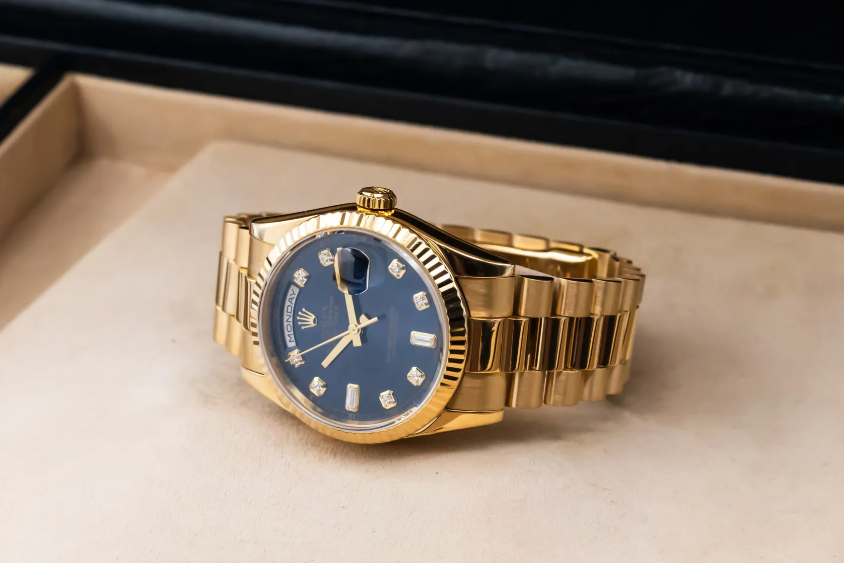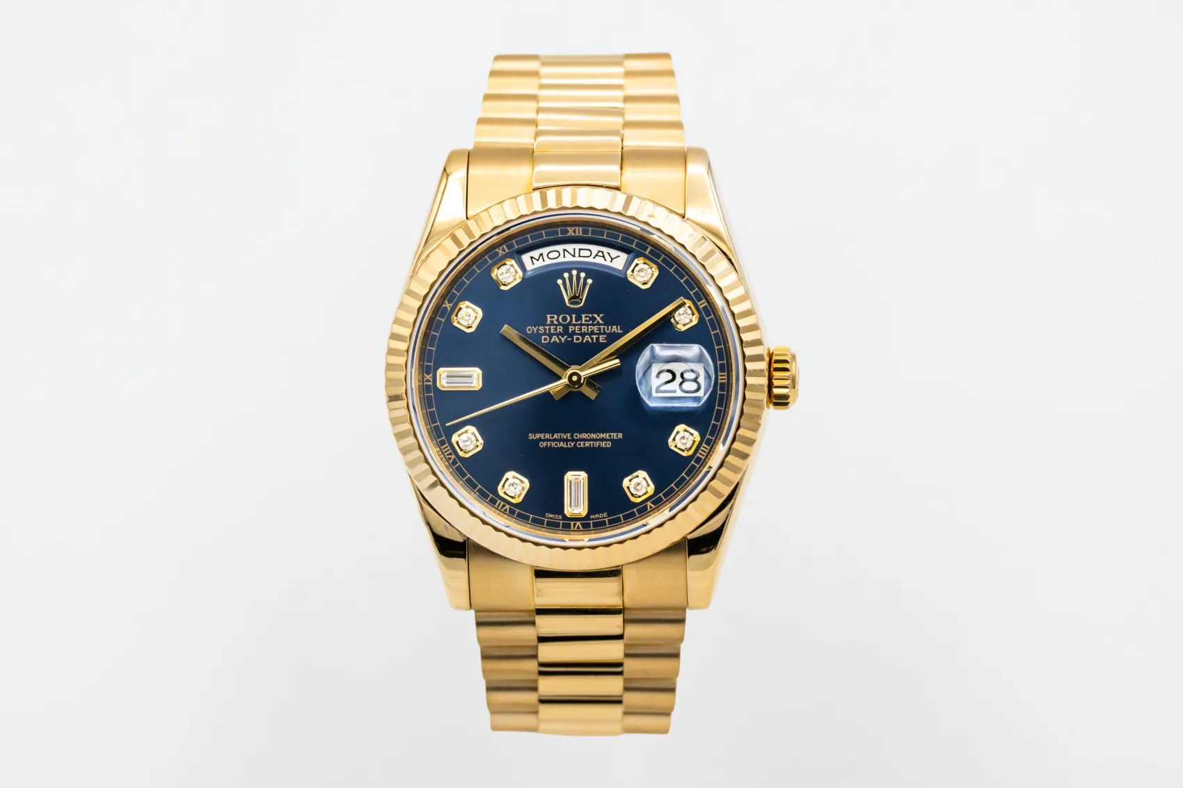 Introduced in 1956, the Rolex Day-Date was the first wristwatch to display both the day and date in full. Known as the “President,” it remains one of Rolex’s most prestigious and recognisable models.