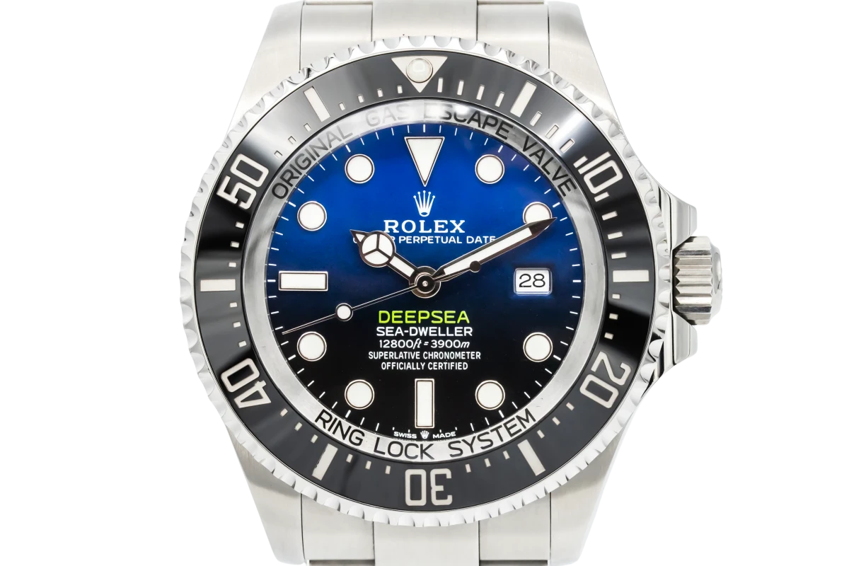 Introduced in 2014, the Rolex Deepsea D-Blue was dedicated to James Cameron's legendary solo dive to the deepest place on earth. The dial's colour gradient from a radiant blue to an unfathomable black is meant to be reminiscent of the diving expedition to the deepest part of the earth, the Challenger Deep in the Mariana Trench.