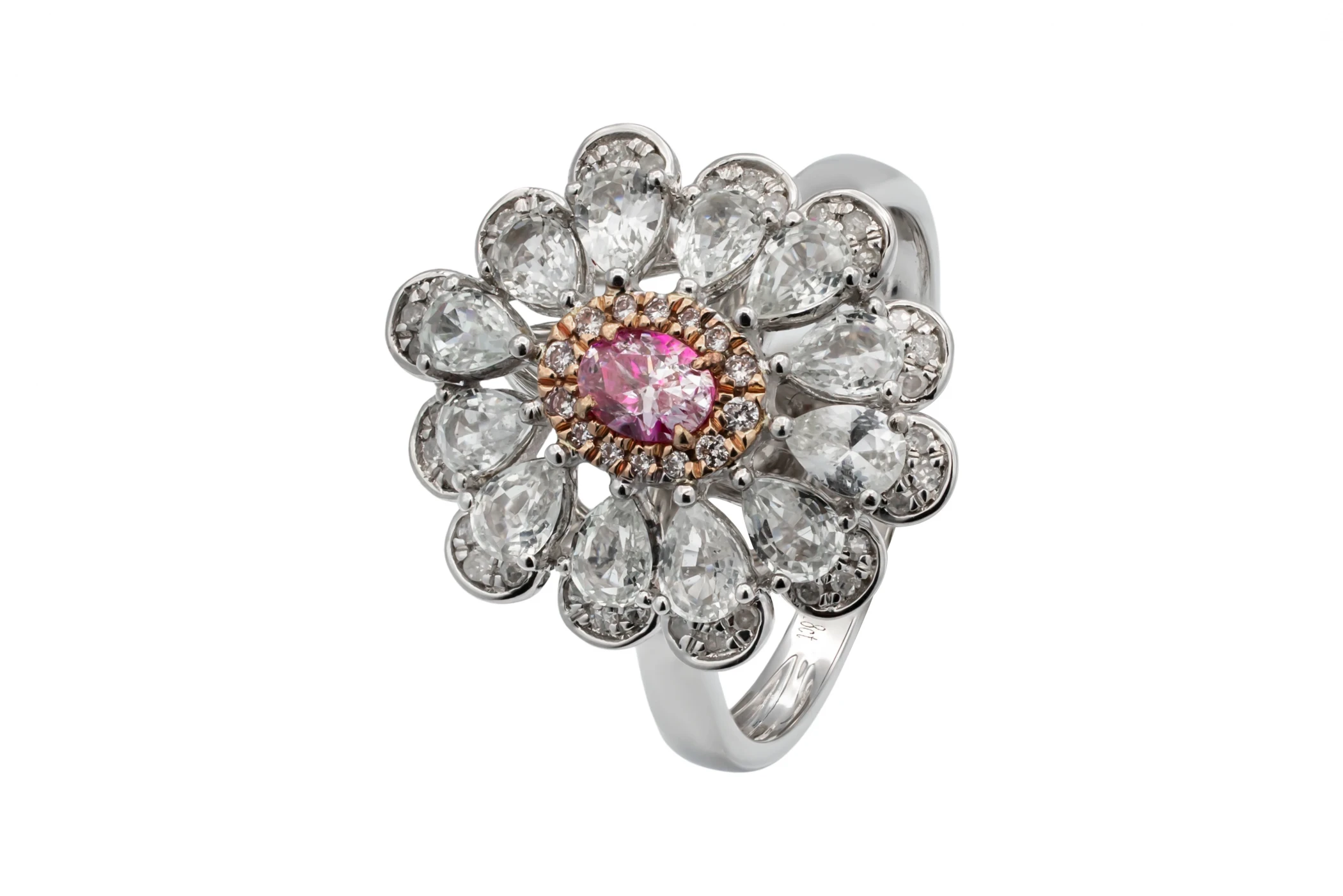 18ct White Gold Rose Cut & Pink Diamond Ring 1.90ct 5.08g