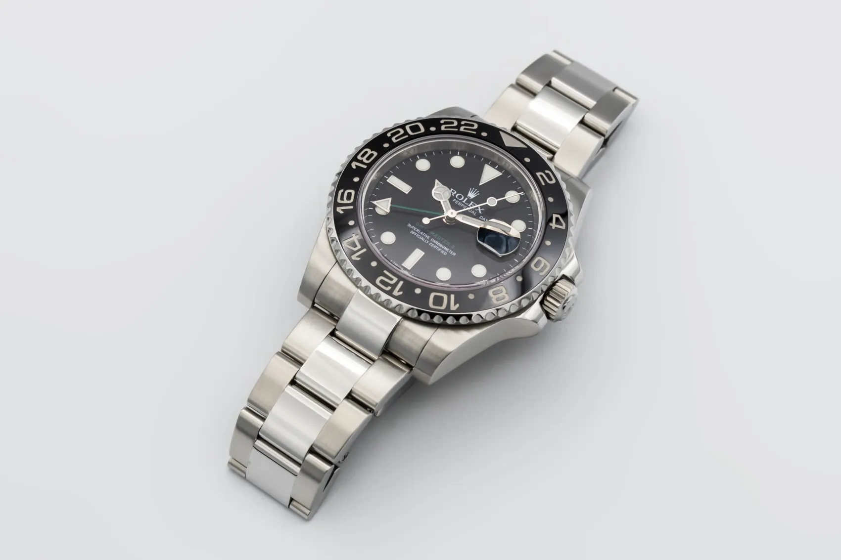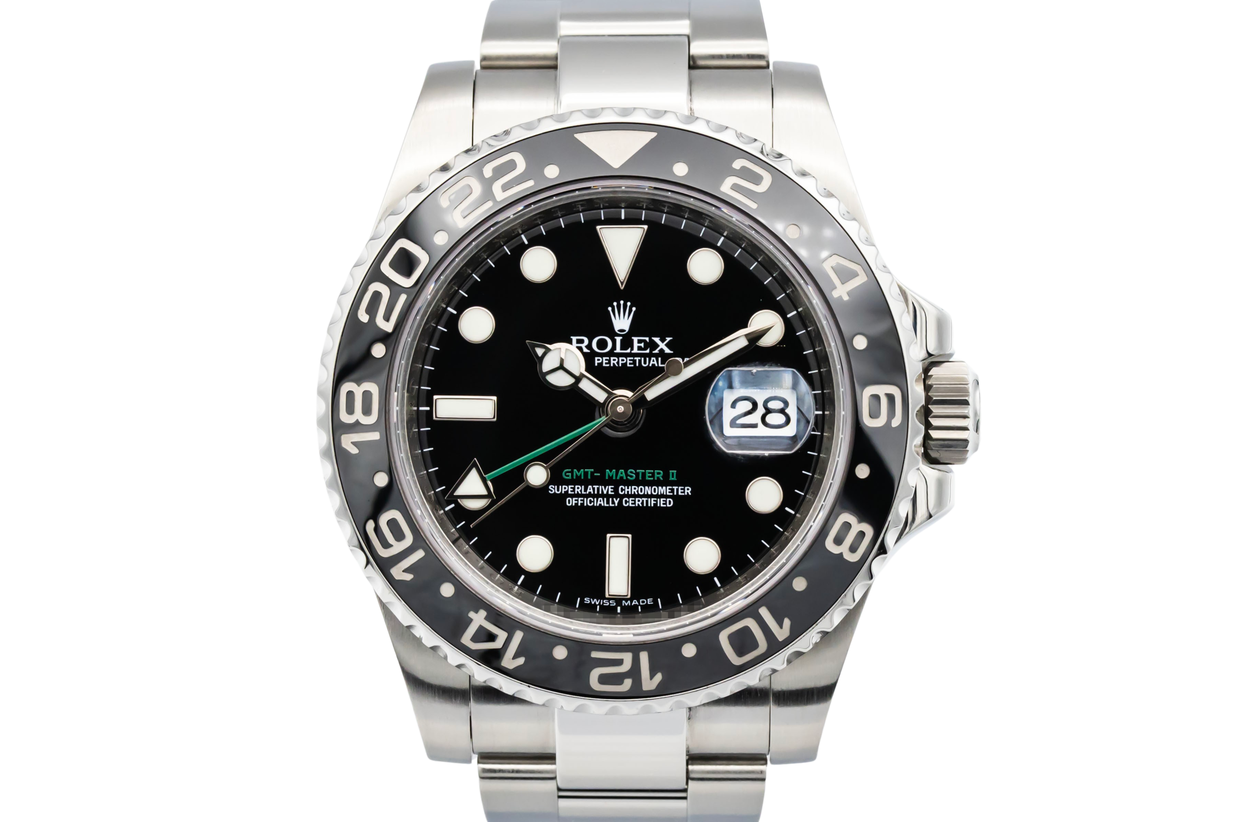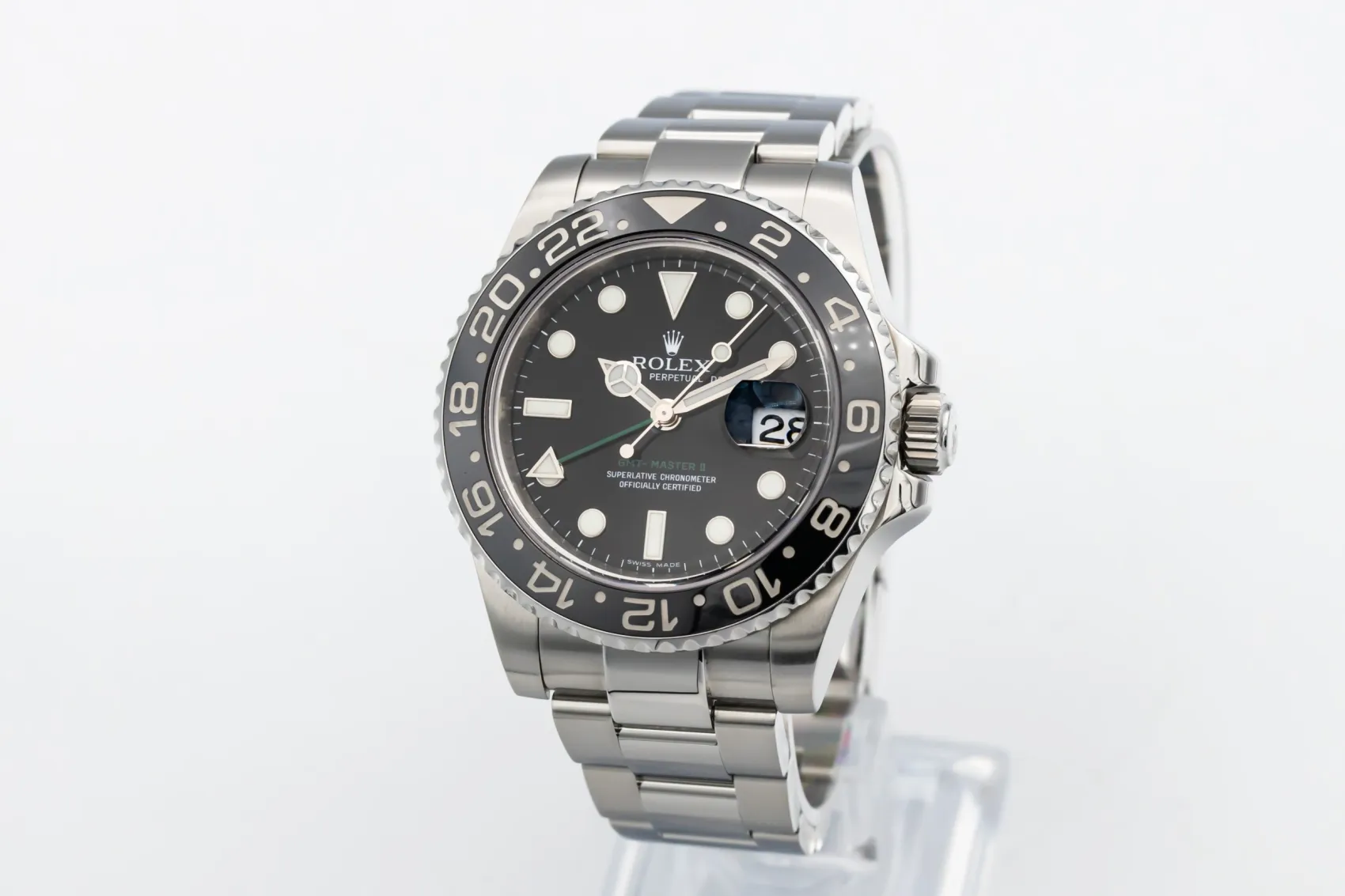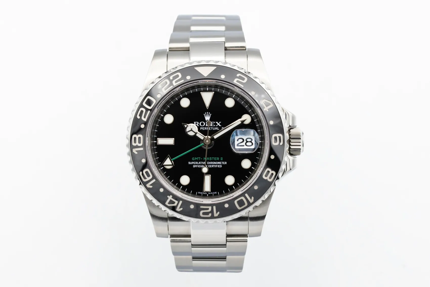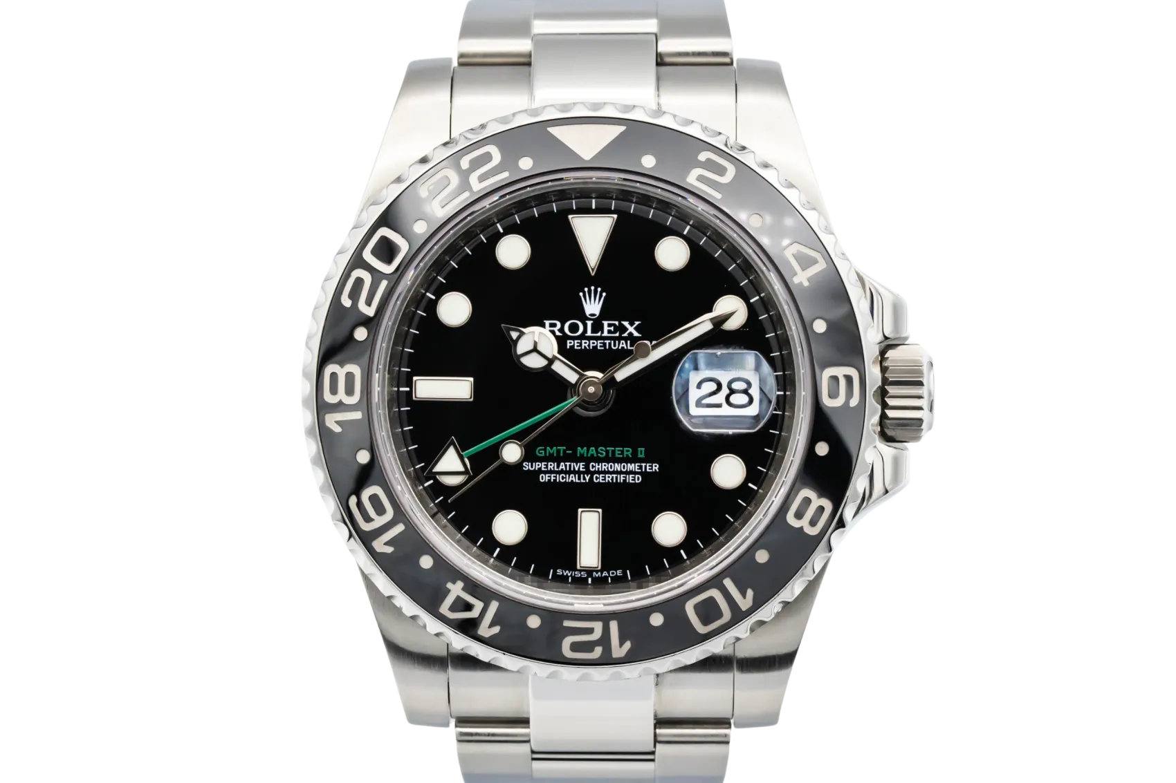 finance this from £148.5 p/m call the shop Read about our Limited Lifetime WarrantyThis 2008 Rolex GMT-Master II 40mm is a robust luxury sports watch crafted entirely in stainless steel. The black dial features luminous hour markers and Mercedes hands for excellent legibility, paired with a black Cerachrom bezel designed for tracking multiple time zones. Finished on the classic stainless steel Oyster bracelet with a solid Oysterlock clasp.