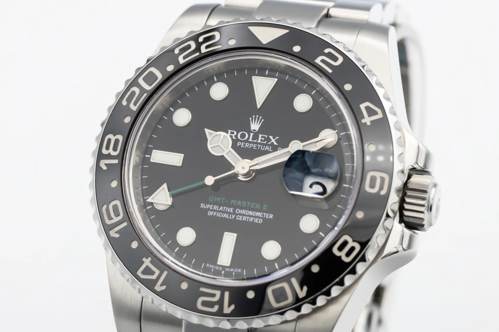 Originally developed for international pilots in the 1950s, the GMT-Master became one of Rolex’s most iconic travel watches. The reference 116710LN introduced the modern ceramic bezel and updated case design, combining durability with Rolex’s dependable automatic movement.