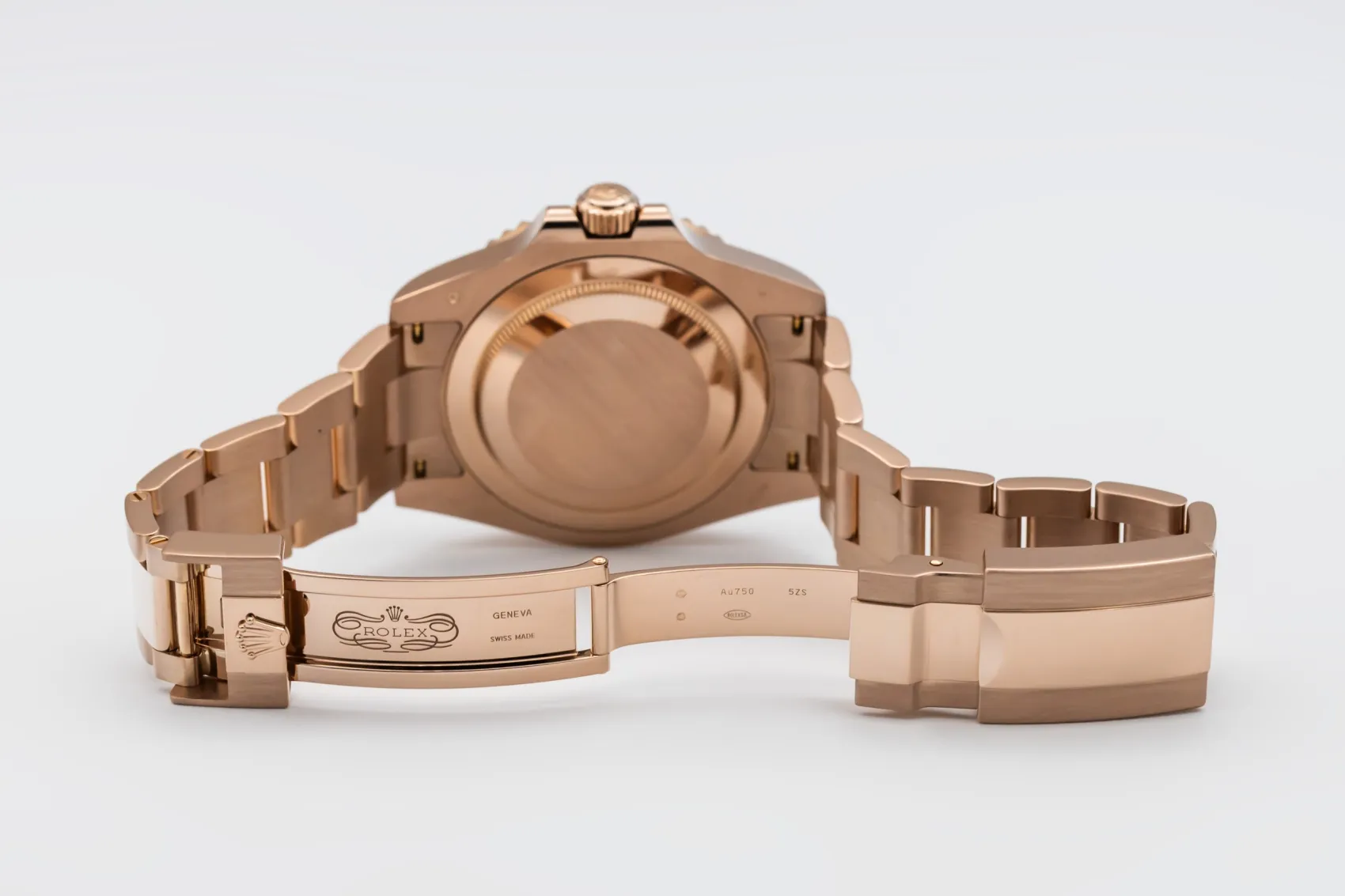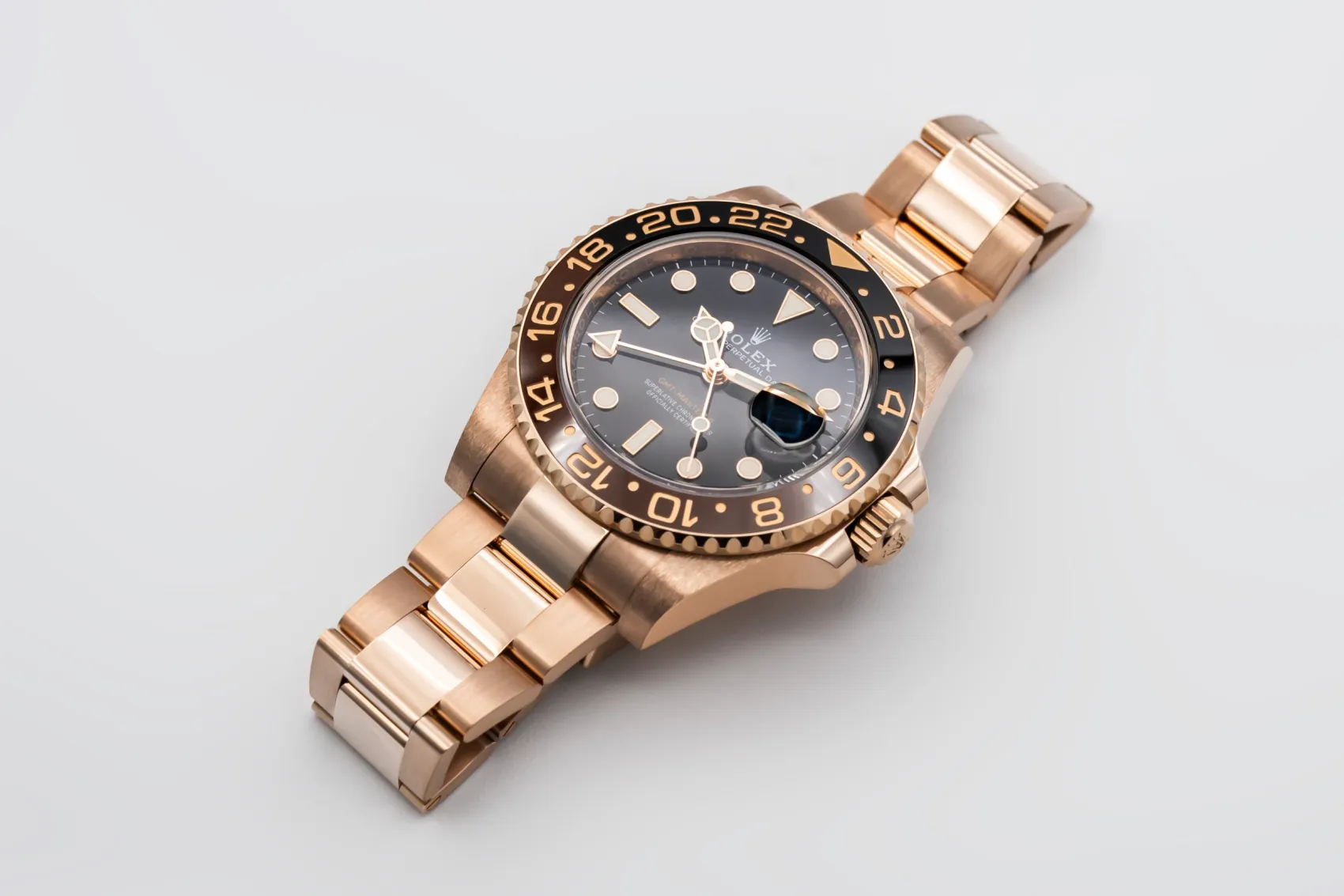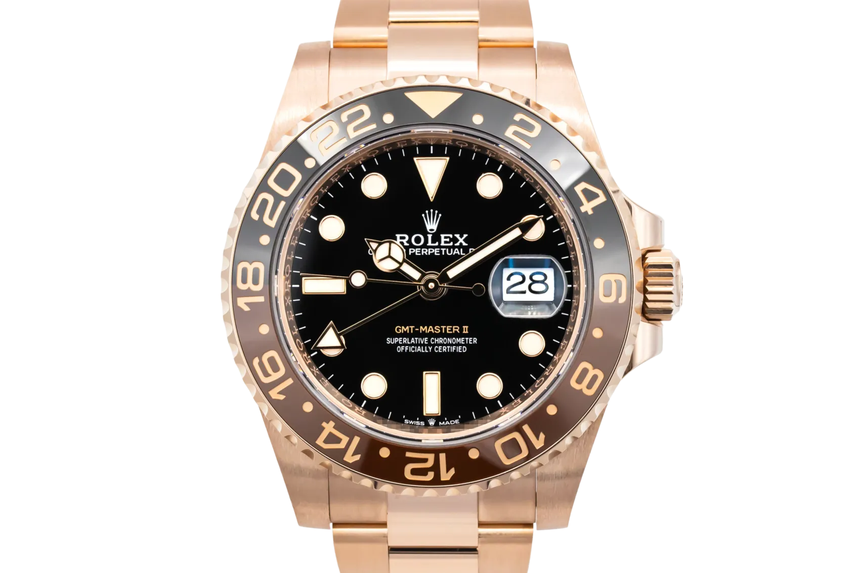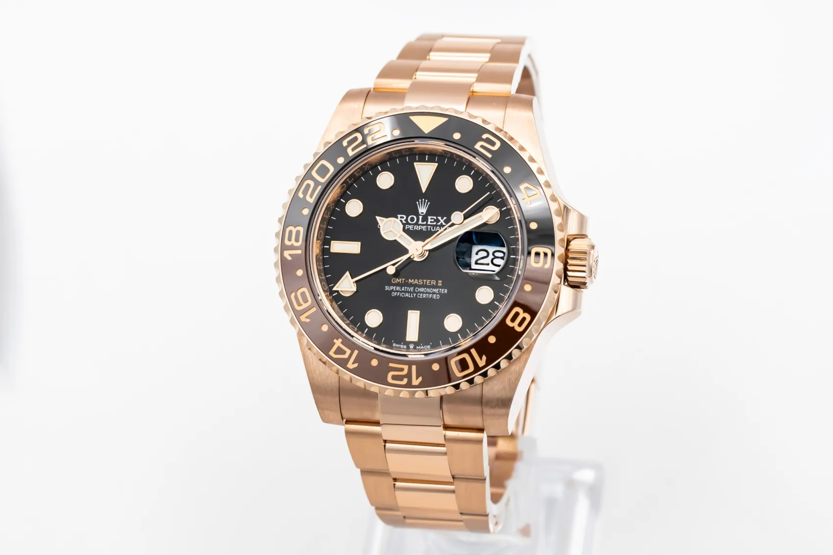 finance this from £422.2 p/m call the shop Read about our Limited Lifetime WarrantyThis 2022 Rolex GMT-Master II 40mm ‘Rootbeer’ is a luxurious timepiece crafted entirely in 18ct Everose gold, featuring a black dial with luminous hour markers, Mercedes hands and a distinctive black and brown ceramic bezel. Finished on the Oyster bracelet.