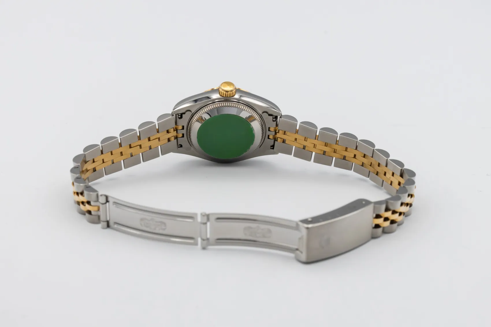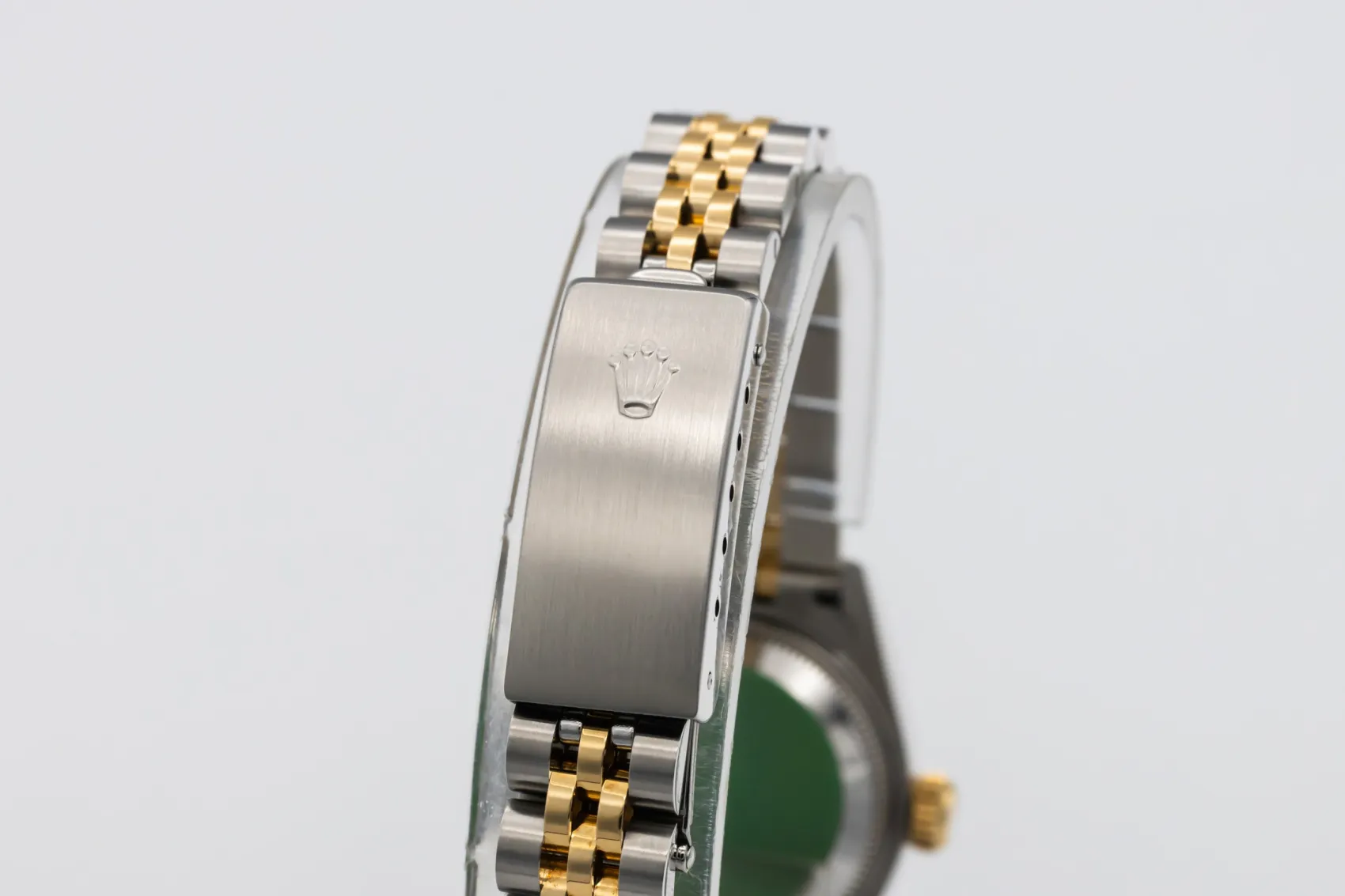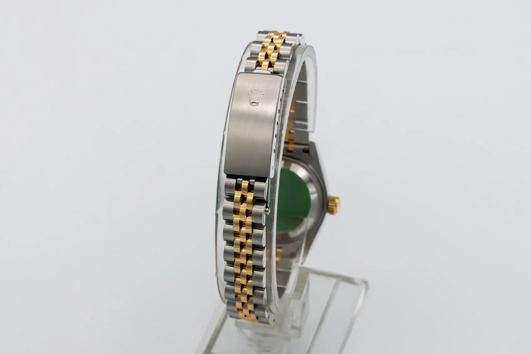 finance this from £65.61 p/m call the shop Read about our Limited Lifetime WarrantyThis 1995 Rolex Lady DateJust 26mm is a classic two-tone timepiece crafted in stainless steel and 18ct yellow gold, featuring a champagne dial with baton hour markers and the signature date display at 3 o’clock. Finished with a fluted yellow gold bezel and Jubilee bracelet.