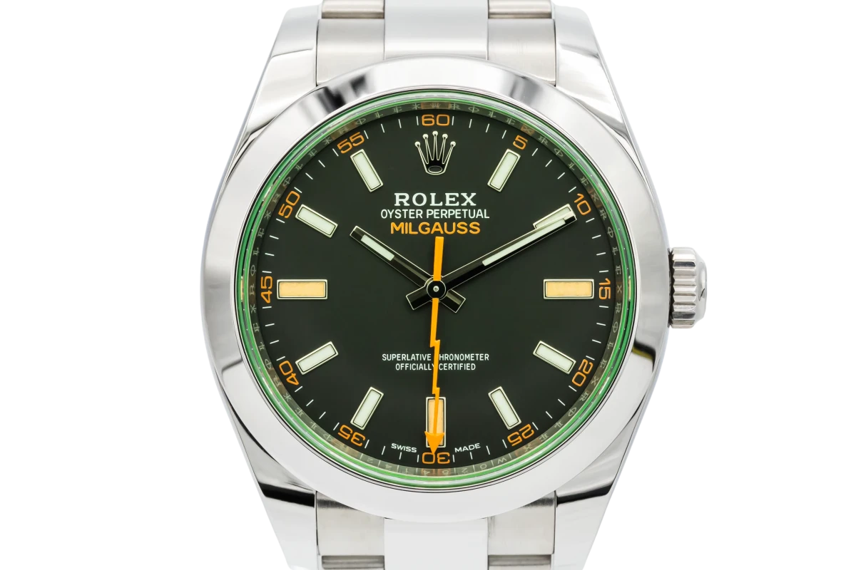 The Milgauss is a pioneering anti-magnetic watch designed to meet the demands of engineers and scientists. Created in 1956, it can withstand magnetic fields of up to 1,000 gauss. Hence its name 'Mille', which is french for one thousands. The first watch of its kind, The milgauss combines aesthetics and scientific heritage.