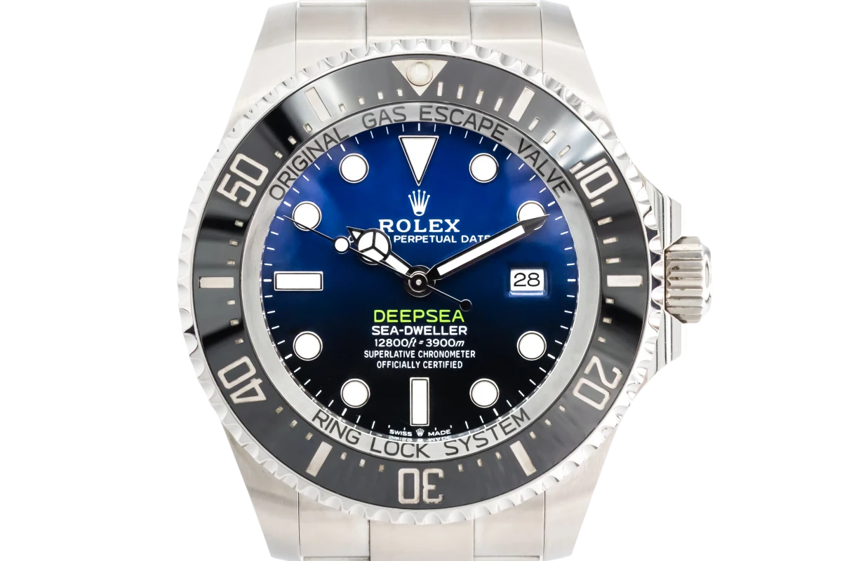 Introduced in 2014, the Rolex Deepsea D-Blue was dedicated to James Cameron's legendary solo dive to the deepest place on earth. The dial's colour gradient from a radiant blue to an unfathomable black is meant to be reminiscent of the diving expedition to the deepest part of the earth, the Challenger Deep in the Mariana Trench.