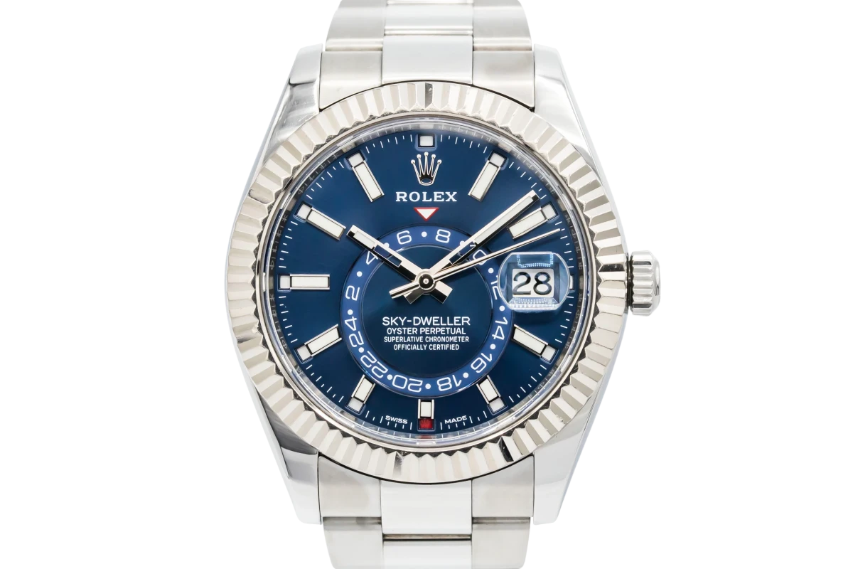 This Rolex timepiece is currently out of stock but explore our full Sky Dweller watch collection for more stunning options.
