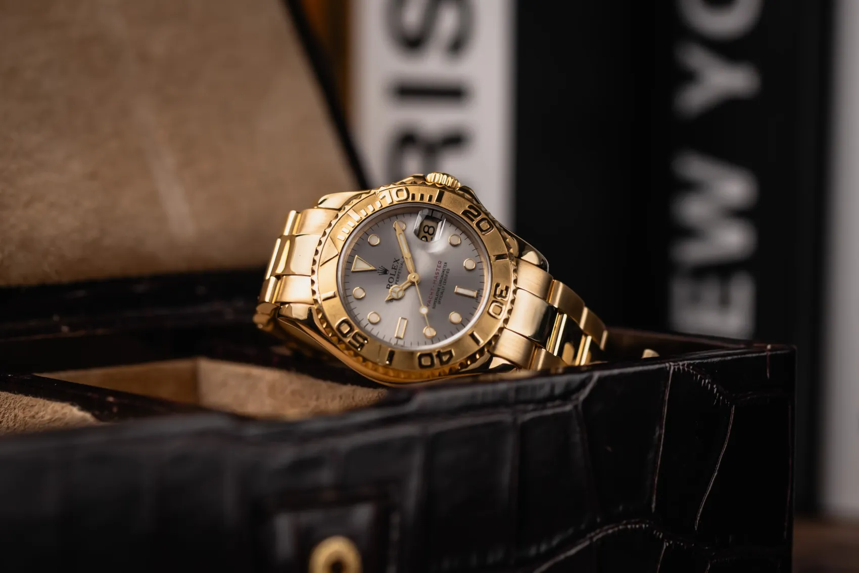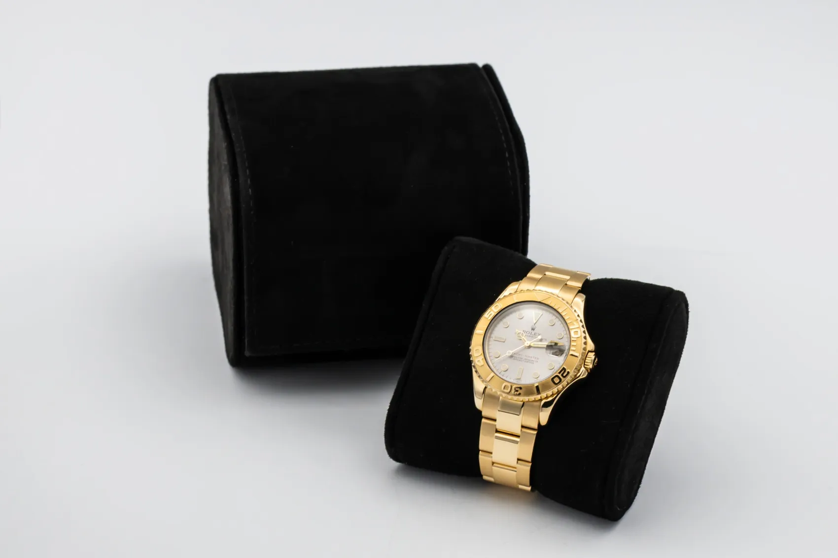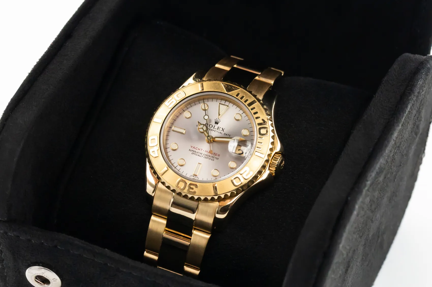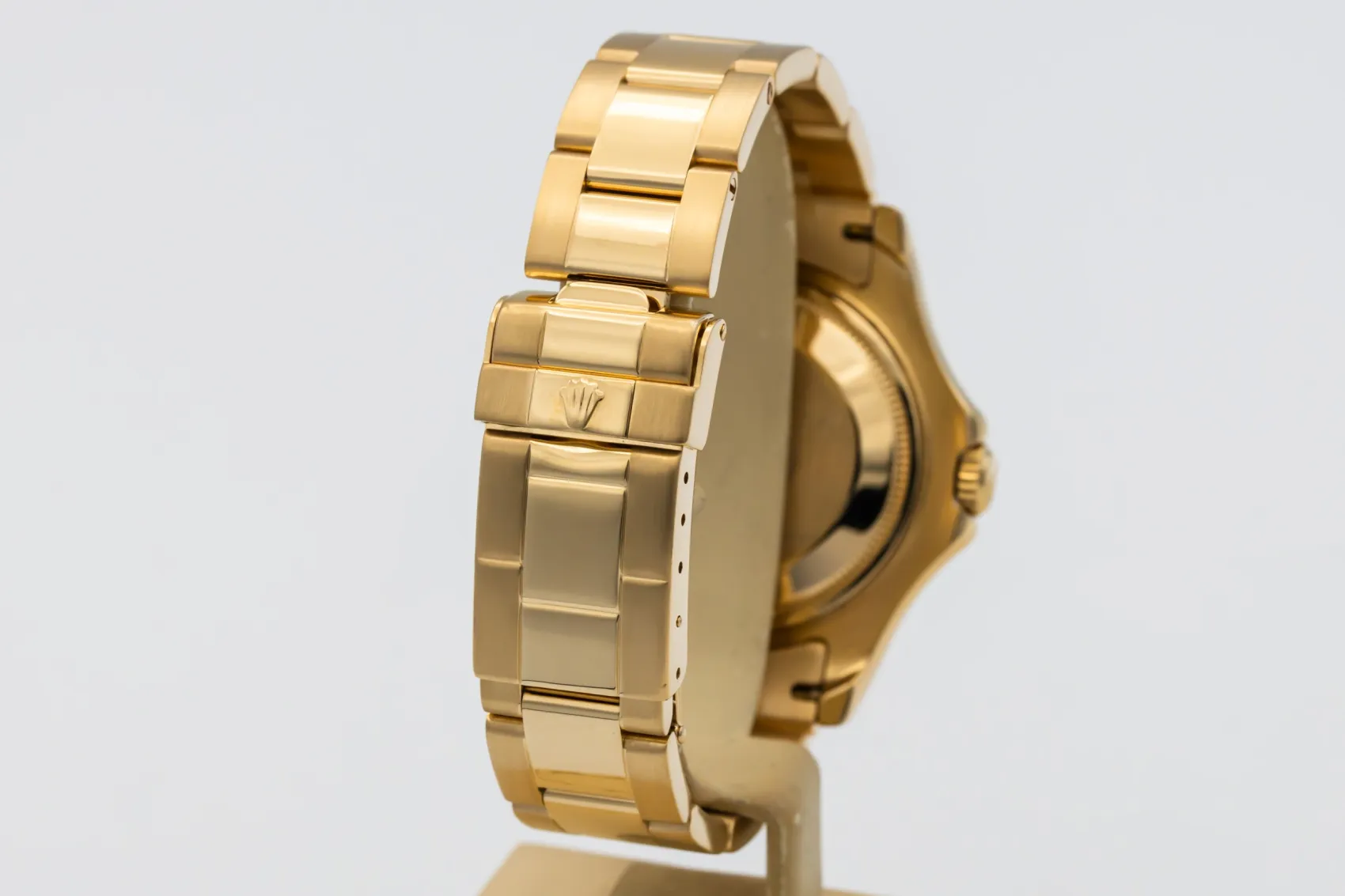 finance this from £211.05 p/m call the shop Read about our Limited Lifetime WarrantyThis 1996 Rolex Yacht-Master 35mm is a luxurious sports watch crafted entirely in 18ct yellow gold. The elegant grey dial features luminous hour markers and Mercedes hands for excellent legibility, complemented by the distinctive yellow gold bidirectional bezel with raised polished numerals. Finished on the solid 18ct yellow gold Oyster bracelet.